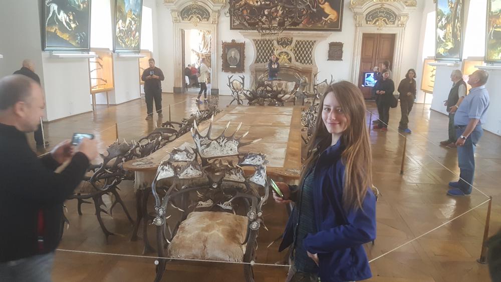 Następnego dnia z rana przejechaliśmy przez granicę do Czech. Zwiedziliśmy zamek Konopište, którego właścicielem był arcyksiążę Franciszek Ferdynand, następca tronu Austrio-Węgier. W środku było wiele ciekawych eksponatów myśliwskich. Podziwialiśmy przepych komnat książęcych. Wieczorem przyjechaliśmy do internatu przy szkole leśnej w Pisku, gdzie ugościli nas kolacją Czesi.