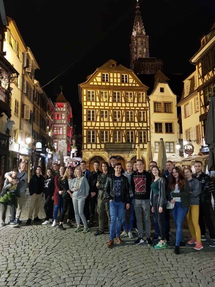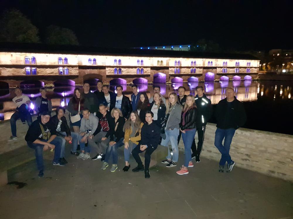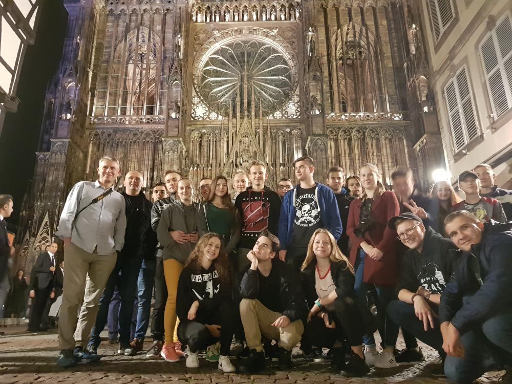 Z Białowieży wyjechaliśmy 23.10.2019 komfortowym autokarem, w którym każdy miał więcej miejsca niż to zazwyczaj bywa na takich wycieczkach. Pierwszym miejscem, jakie odwiedziliśmy było Muzeum Mercedesa „Mercedes Welt” w Stuttgarcie, w którym mogliśmy poznać historię motoryzacji. Zobaczyliśmy m.in. pojazd spalinowy, którym Bertha Benz, jako pierwsza osoba w historii, odbyła podróż automobilem na dystansie około 106 km.Poza podziwianiem pojazdów muzealnych, wszyscy mogliśmy wsiąść i poczuć zapach najnowszych modeli marki Mercedes. Wieczorem tego samego dnia dotarliśmy do hotelu w Strasburgu, zjedliśmy kolację i poszliśmy na wieczorne zwiedzanie Strasburga.