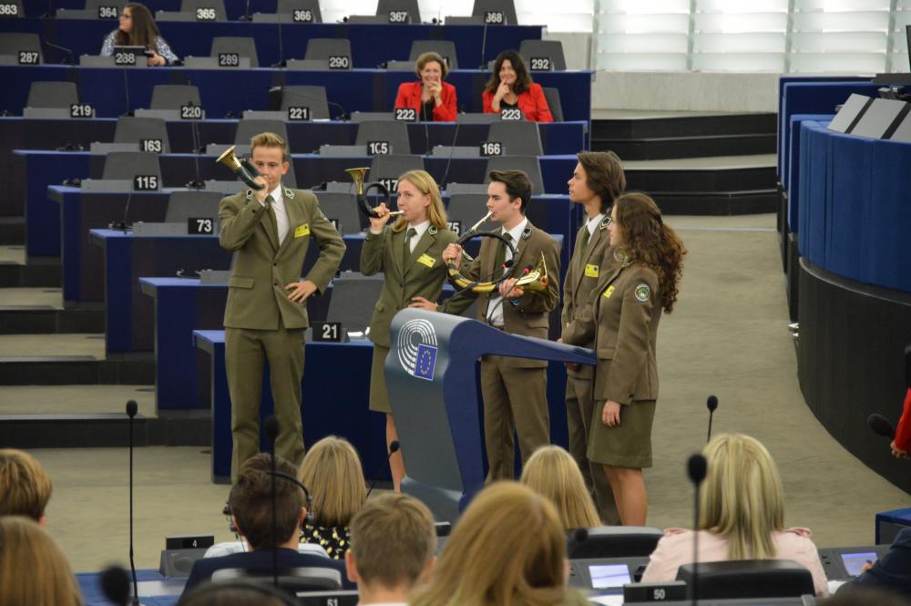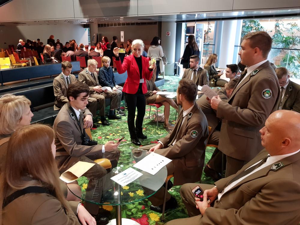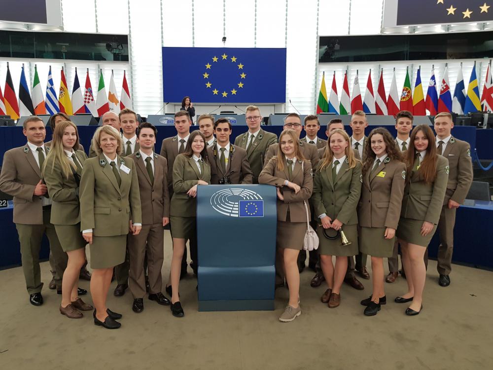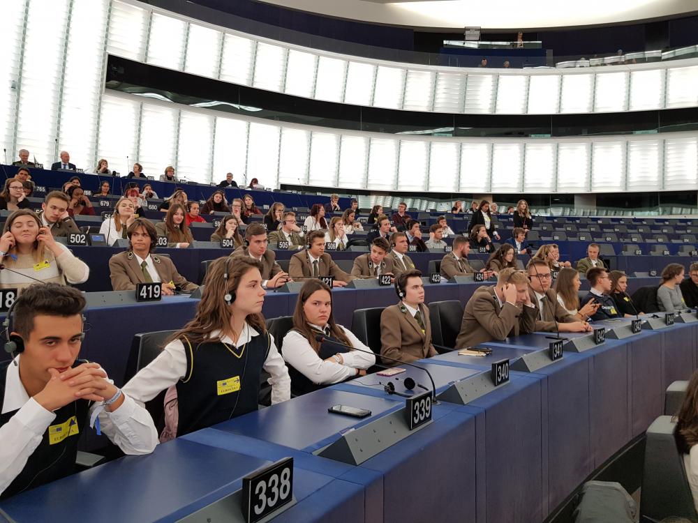 25.10.2019 o godz. 9:00 rozpoczęły się obrady Euroscoli, w których uczestniczyło 20 uczniów i 2 nauczycieli z Technikum Leśnego w Białowieży. Po przejściu przez kontrolę mogliśmy wejść do gmachu Parlamentu Europejskiego. Po przywitaniu młodzież została przydzielona do grup roboczych, w których wraz z rówieśnikami z całej Unii Europejskiej zajmowała się rozwiązywaniem problemów istotnych dla obecnego funkcjonowania UE.Przed rozpoczęciem ciężkiej pracy uczniowie z każdego z 25 krajów mieli jedną minutę, by się przedstawić, podając podstawowe informacje o kraju, regionie i szkole. Nasze technikum zaprezentowało 5 uczniów – 3 osoby zagrały sygnał myśliwski, a dwoje uczniów przeczytało krótką informację o naszej szkole. Po prezentacjach młodzież miała okazję spotkać wiceprzewodniczącego Parlamentu Europejskiego Dimitrisa Papadimoulisai zadać mu niewygodne pytania. Następnym punktem programu była praca uczniów w podkomisjach. Wypracowane propozycje przedstawiciele grup przedstawiali na forum, starając się przekonać do swoich racji pozostałych uczestników debaty. Następnie każdy uczeń mógł wyrazić swoje poparcie bądź dezaprobatę dla zaprezentowanych wniosków przez oddanie głosu,w taki sam sposób, jak czynią to europarlamentarzyści podczas głosowań. Dzień w Europarlamencie był najważniejszym punktem naszego wyjazdu do Strasburga, lecz nie jedynym naszej ośmiodniowej wycieczki.