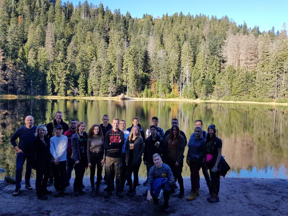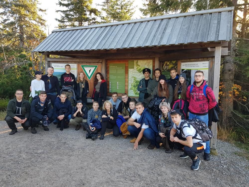 26.10.2019 wcześnie rano tuż po śniadaniu pojechaliśmy do Parku Narodowego Szwarcwaldu, gdzie udaliśmy się na 4-godzinną wycieczkę przez jedną z najdzikszych tras do jeziorka Wildsee otoczonego świerkami i jesiennie przebarwionymi bukami. Tego samego dnia po przyjeździe do schroniska w Monachium i zjedzeniu obfitej kolacji pojechaliśmy metrem do centrum. Tego dnia akurat Bayern pokonał Hertę, więc było głośno i tłoczno na ulicach stolicy Bawarii. Na Marienplatz przy Ratuszu  czekała na nas przewodniczka, która przez 2 godziny opowiadała nam o Bawarii i Monachium, a później znowu metrem wróciliśmy do schroniska.