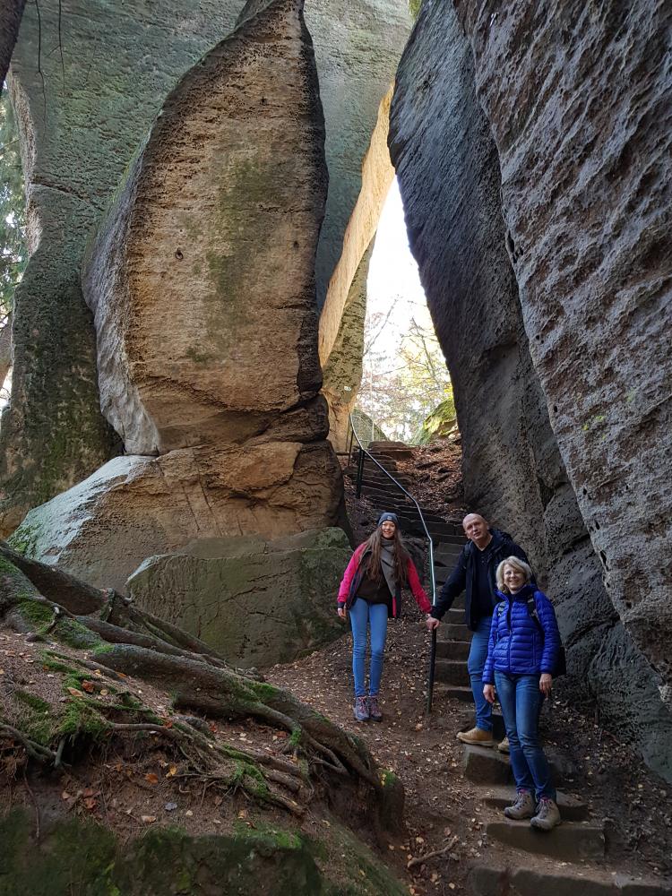 30.10.2019 to był nasz ostatni dzień z atrakcjami. Pojechaliśmy do Prachowskich Skał, gdzie można spacerować w labiryncie jednego z wielu słanych Skalnych Miast w Czechach. Po trzech godzinach zachwycania się formacjami skalnymi pojechaliśmy do Janskich Lazni, gdzie przeszliśmy ścieżką w koronach drzew do wieży z której mogliśmy podziwiać panoramę Karkonoszy. Ci, którym nie chciało się schodzić z wieży, mogli za drobną opłatą udać się na dół zjeżdżalnią. Tam czekał na wszystkich smaczny czeski obiad, ostatni podczas tego wyjazdu na Euroscolę.