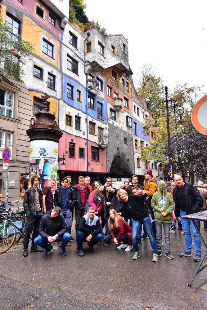 29.10.2019 przed wyjazdem z Wiednia wpadliśmy na kilkanaście minut, by zobaczyć jak wygląda próba połączenia natury i miejskiej architektury w postaci domu Hudertwasserhaus. Po  zrobieniu pamiątkowych zdjęć pojechaliśmy do Pragi, w której wszyscy mieli kilka godzin na samodzielne zwiedzanie miasta i skosztowanie czeskiej kuchni.
