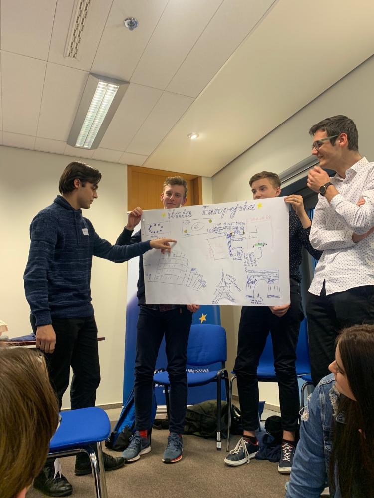 10 grudnia 2019 r. trójka uczniów naszej szkoły: Aleksandra Świć, Michał Borkowski i Jakub Daniłowicz z opiekunem Sławomirem Przygodzkim wzięła udział w warsztatach dla młodszych ambasadorów Parlamentu Europejskiego w ramach program EPAS. Warsztaty odbywały się w Warszawie w Biurze Parlamentu Europejskiego w Polsce.