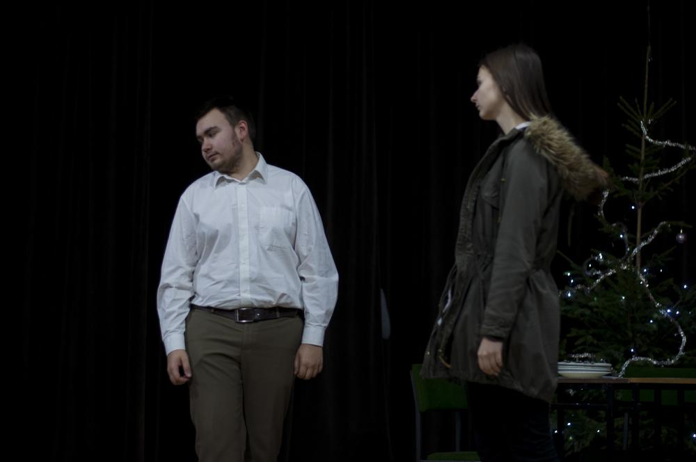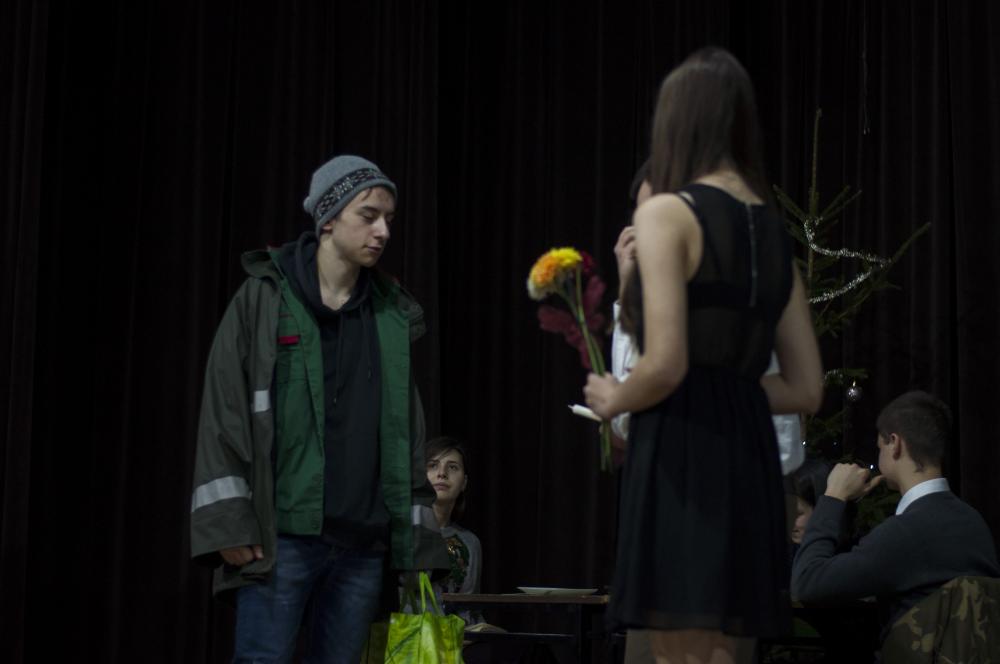 Spotkanie rozpoczęło się częścią artystyczną. Na początku wystąpił chór przygotowany przez p. Wojciecha Szymanowskiego i p. Marty Wołoncewicz, który zaśpiewał tradycyjne kolędy i pastorałki wprowadzając wszystkich w świąteczny nastrój.. Po koncercie kolęd rozpoczęło się przedstawienie teatralne Wigilijny gość, które pokazało, że warto mieć otwarte serce dla drugiego człowieka, zwłaszcza tego, który jest w potrzebie, bo skupiając się na własnych interesach, można przegapić to, co najważniejsze. W spektaklu przygotowanym pod kierunkiem p. Marty Wołoncewicz wzięli udział: Agnieszka Bergałowska (3 b), Weronika Biełaga (3 b), Julia Brewka (4 b), Kamila Kazberuk (2a), Wioletta Olechwirowicz (2 a), Kinga Staniszewska (1 a), Aleksandra Świć (3 b), Michał Borkowski (3 b), Filip Jędrzejczak (2 a), Rafał Klim (4 b), Franciszek Kośmicki (2 a), Wojciech Kowalski (1 a), Łukasz Staniszek (2 a) oraz Piotr Sulima (2 a). Nad przygotowaniem pięknej dekoracji czuwała p. Beata Kostecka.