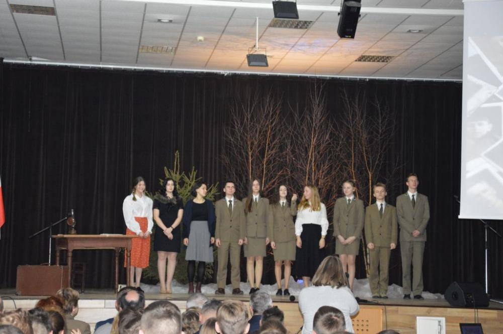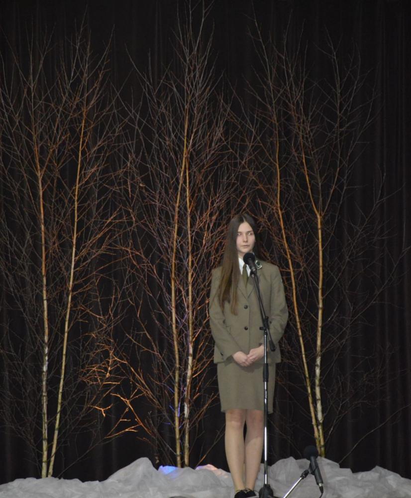 „Przyszli w noc śnieżną i mroźną…” − program artystyczny w wykonaniu uczniów Technikum Leśnego w Białowieży. Program przygotowała pani Marta Wołoncewicz.