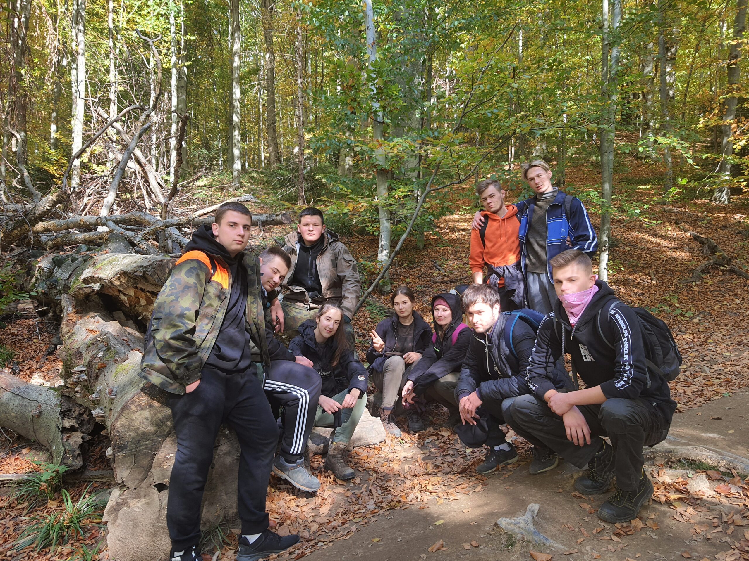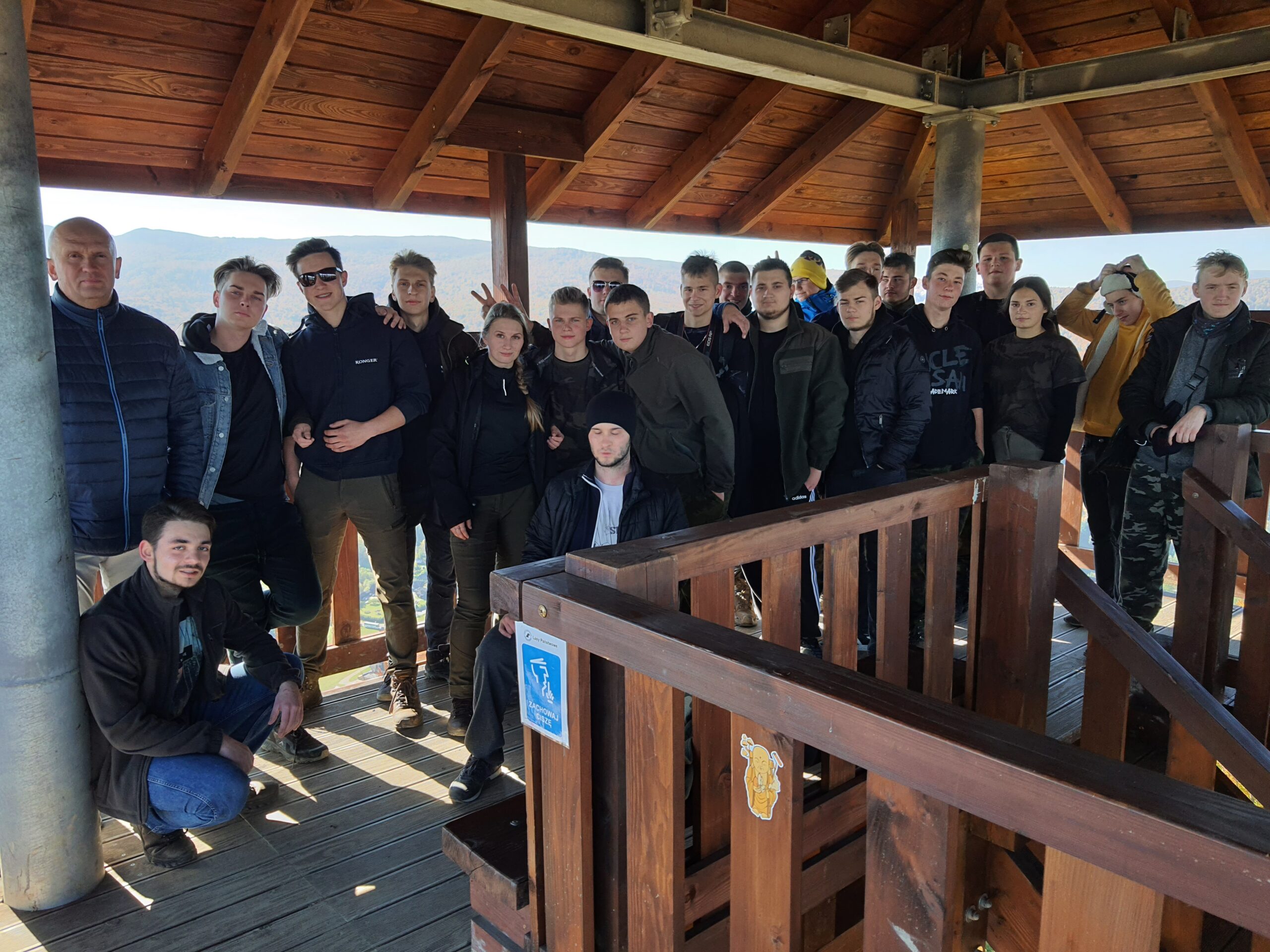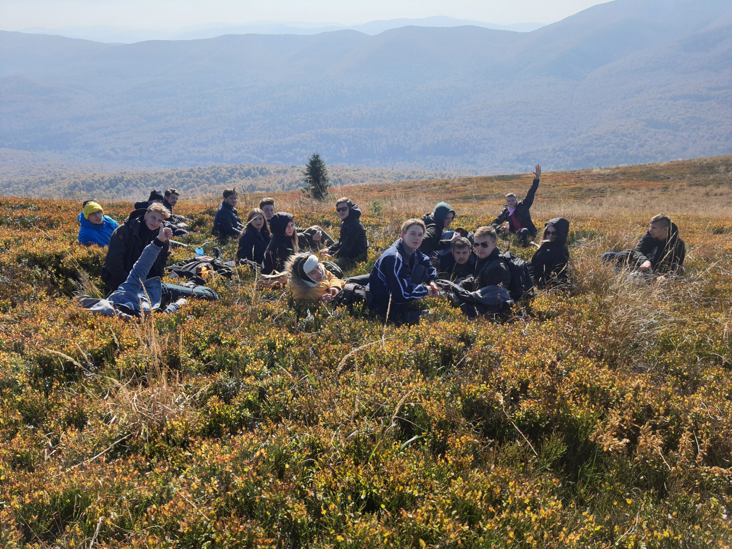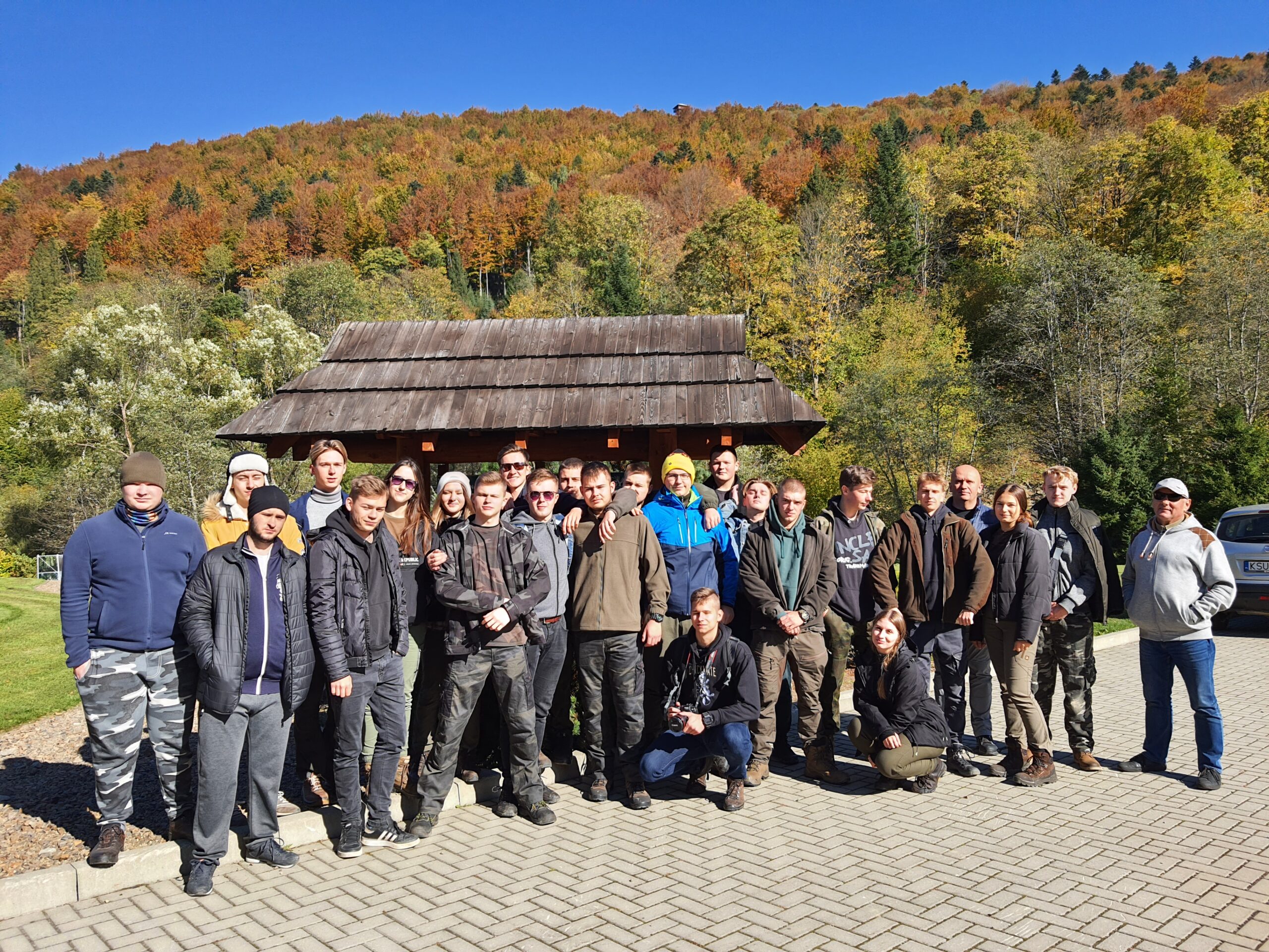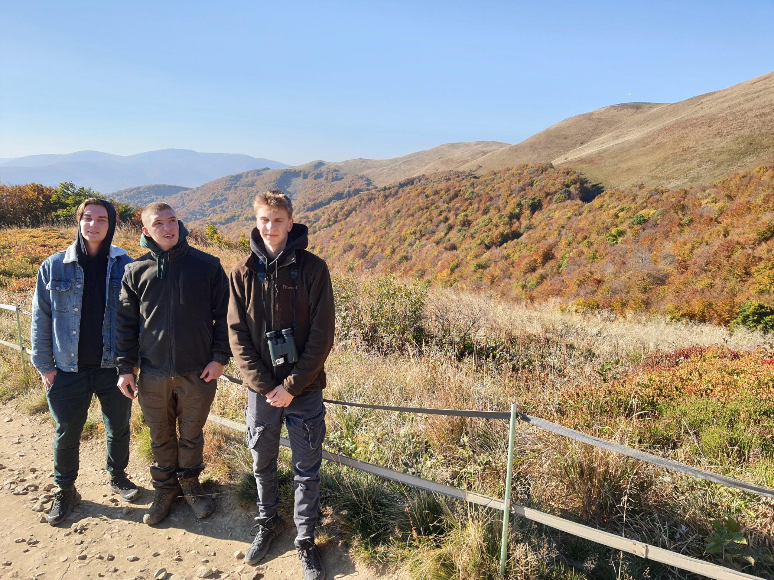 W dniach 6-10 października 2021 r. klasa 3a oraz klasa 4a wyjechały na wycieczkę w Bieszczady wraz z opiekunami: profesorem Sławomirem Przygodzkim i profesorem Adamem Masajło. Zatrzymaliśmy się w Internacie Zespołu Szkół Leśnych w Lesku, dzięki czemu mieliśmy możliwość wymienienia się spostrzeżeniami o naszych szkołach z rówieśnikami z Leska, integrowaliśmy się. Nasz pierwszy dzień składał się głównie z podróży i integracji, natomiast drugi dzień zaczęliśmy od zwiedzania Sanoka, gdzie między innymi byliśmy w Muzeum Historycznym. Przewodnik oprowadził nas po zbiorze ikon oraz po wystawie prac Zdzisława Beksińskiego. Podczas czasu wolnego podziwialiśmy uroki miasta i otaczającej go przyrody, a w przerwie mogliśmy zjeść obiad na rynku. Po powrocie indywidualnie zwiedziliśmy okolicę. Kolejnego dnia zobaczyliśmy jak wygląda proces wypalania węgla drzewnego w retortach, skąd pojechaliśmy do Nadleśnictwa Stuposiany, gdzie rozmawialiśmy z leśniczym o żubrach w Bieszczadach. Następnie wspięliśmy się na wieżę widokową na Jeleniowatym, największą budowlę tego typu w Bieszczadach, skąd po posiłku wybraliśmy się na długą wspinaczkę na najwyższy szczyt Bieszczad- Tarnicę (1 346 m n.p.m.). Kolejny dzień przeznaczyliśmy Połoninie Caryńskiej (1297 m n.p.m.) oraz Zaporze nad Soliną. Dzień zakończyliśmy wspólną kolacją w restauracji. Chętne osoby mogły pójść na basen w Lesku. Ostatniego dnia, w drodze do Białowieży, udało się nam zwiedzić Zamość. Wycieczka pozwoliła nam lepiej poznać siebie i swoje bariery, dała możliwość bliższego poznania swoich koleżanek i kolegów z klasy, zbliżyła nas do siebie.