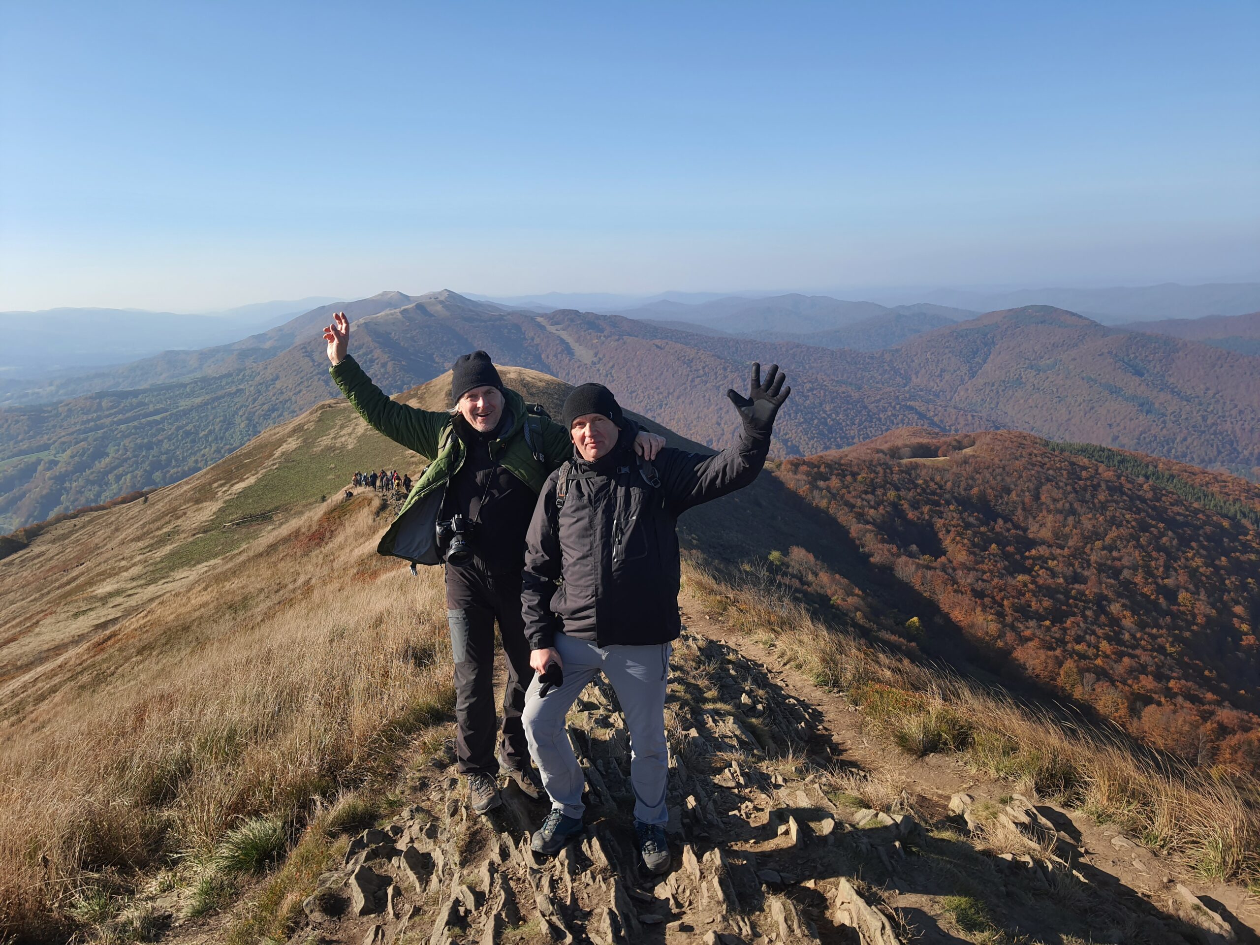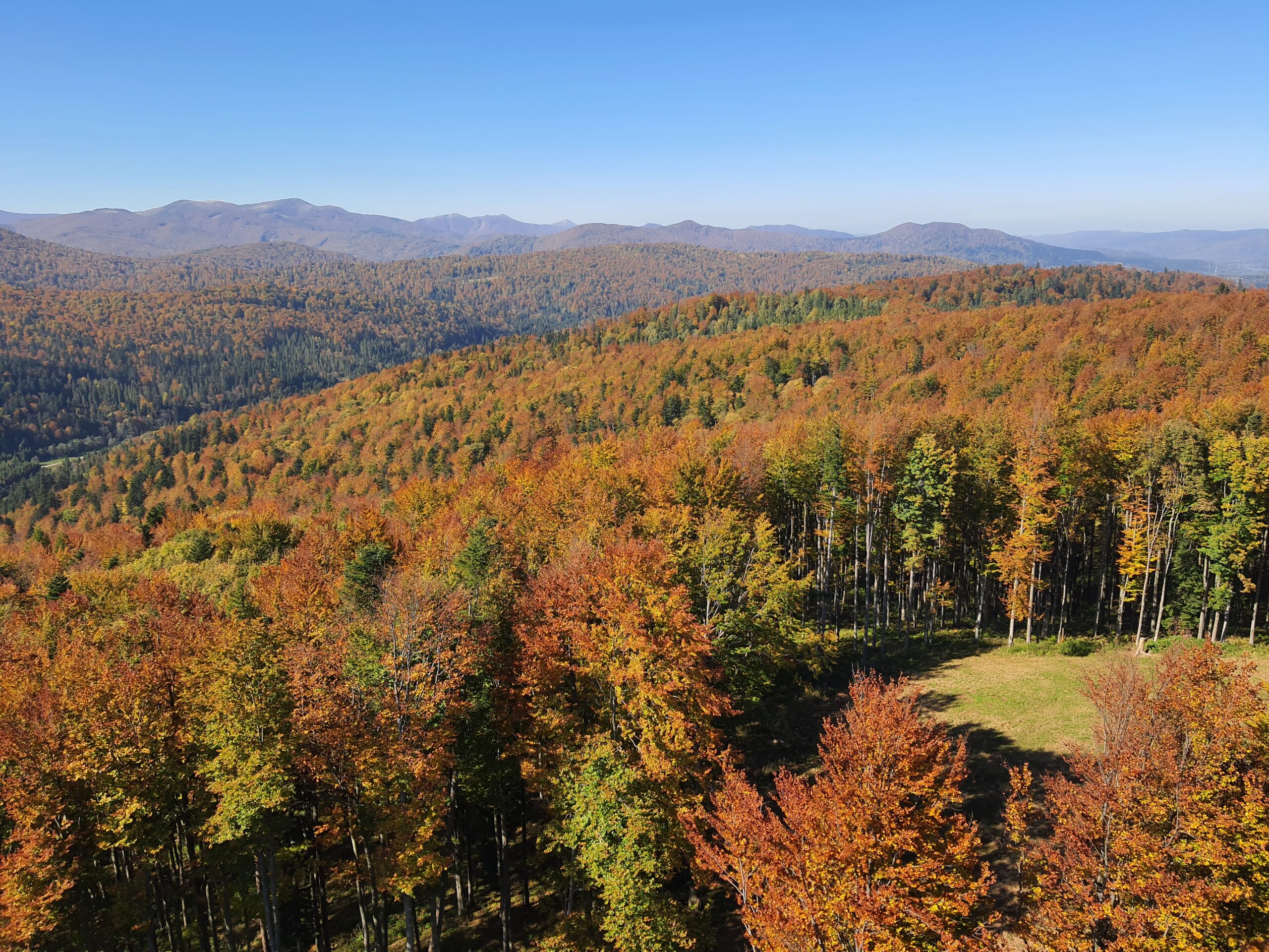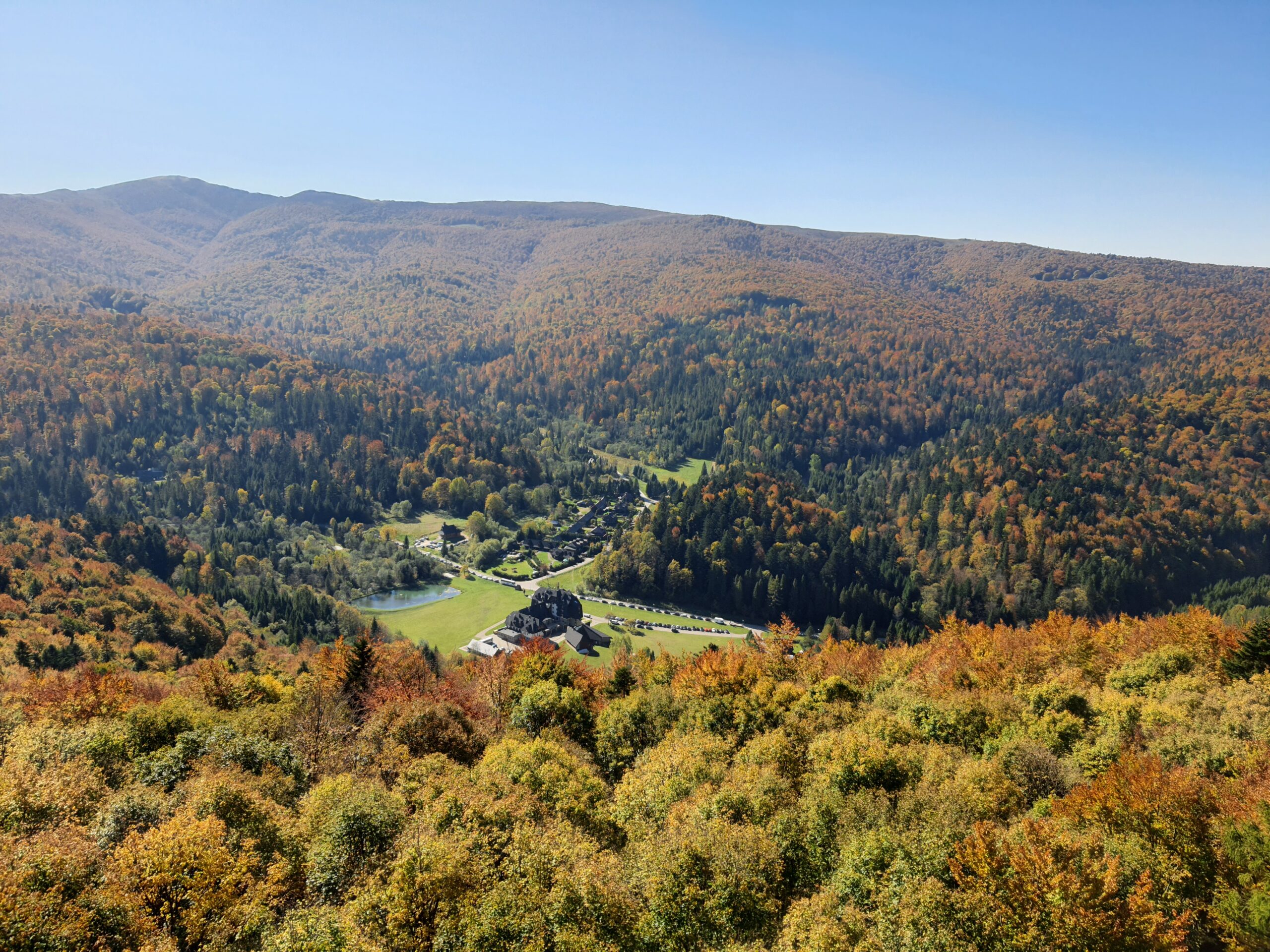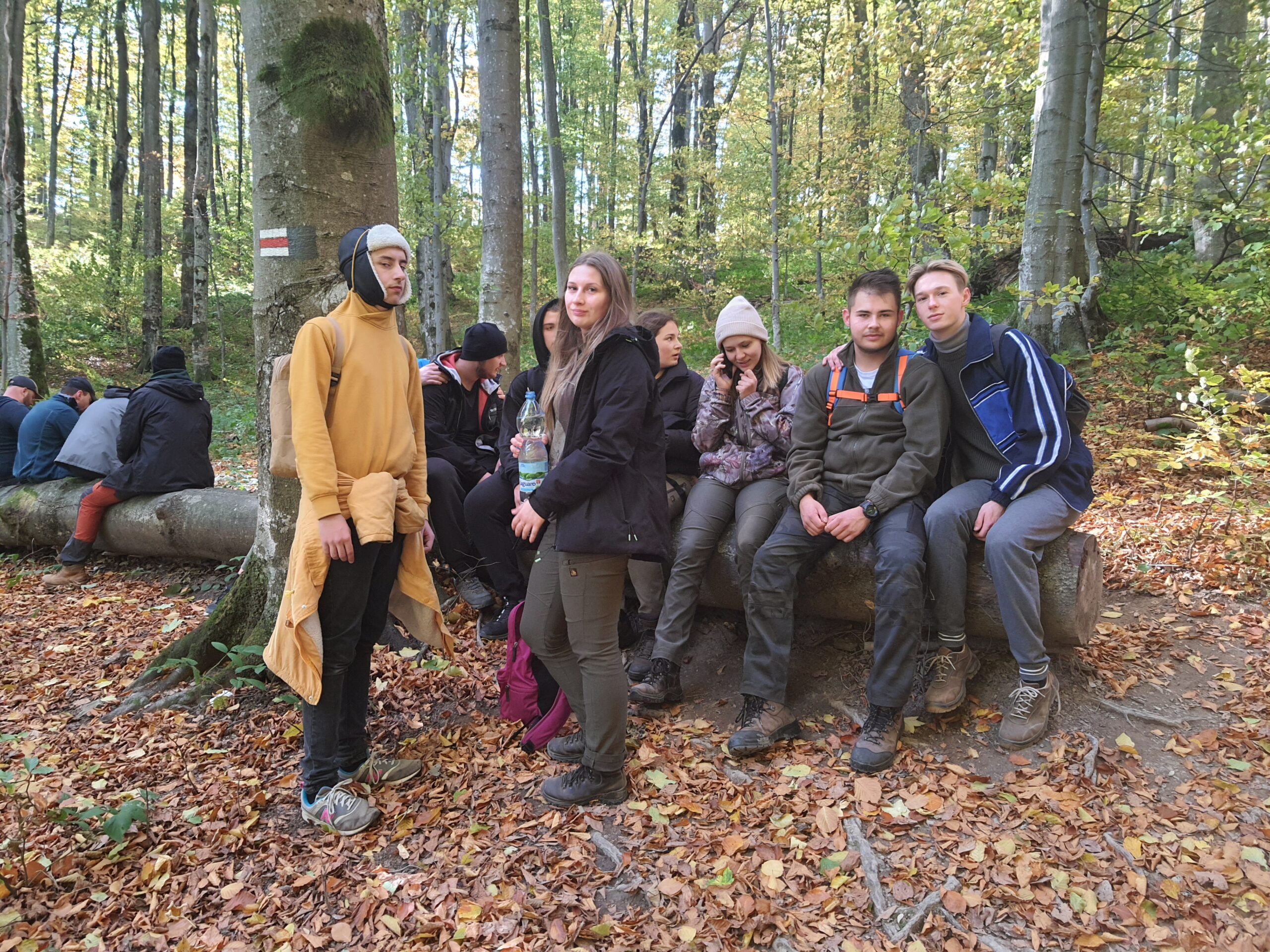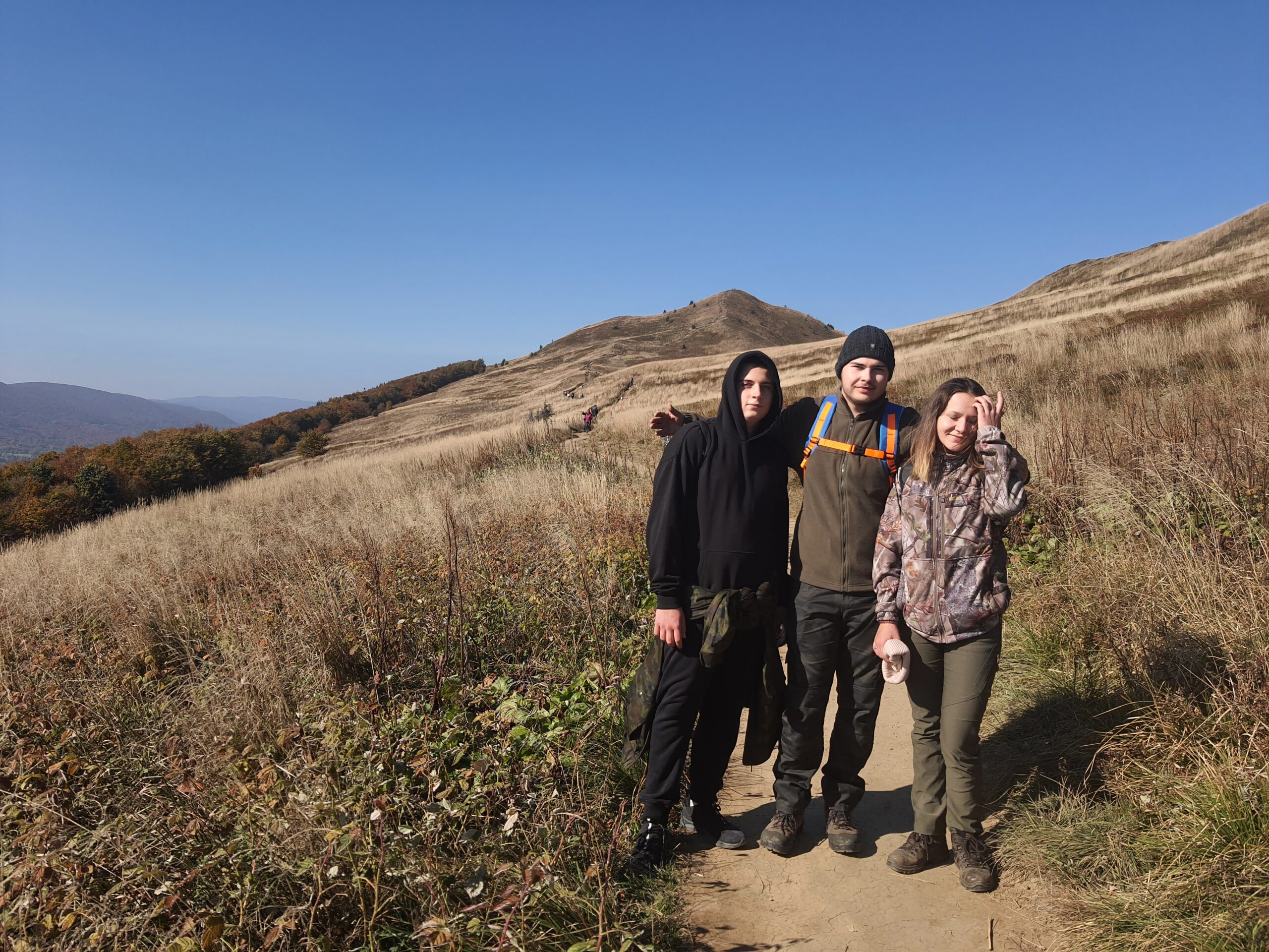 W dniach 6-10 października 2021 r. klasa 3a oraz klasa 4a wyjechały na wycieczkę w Bieszczady wraz z opiekunami: profesorem Sławomirem Przygodzkim i profesorem Adamem Masajło. Zatrzymaliśmy się w Internacie Zespołu Szkół Leśnych w Lesku, dzięki czemu mieliśmy możliwość wymienienia się spostrzeżeniami o naszych szkołach z rówieśnikami z Leska, integrowaliśmy się. Nasz pierwszy dzień składał się głównie z podróży i integracji, natomiast drugi dzień zaczęliśmy od zwiedzania Sanoka, gdzie między innymi byliśmy w Muzeum Historycznym. Przewodnik oprowadził nas po zbiorze ikon oraz po wystawie prac Zdzisława Beksińskiego. Podczas czasu wolnego podziwialiśmy uroki miasta i otaczającej go przyrody, a w przerwie mogliśmy zjeść obiad na rynku. Po powrocie indywidualnie zwiedziliśmy okolicę. Kolejnego dnia zobaczyliśmy jak wygląda proces wypalania węgla drzewnego w retortach, skąd pojechaliśmy do Nadleśnictwa Stuposiany, gdzie rozmawialiśmy z leśniczym o żubrach w Bieszczadach. Następnie wspięliśmy się na wieżę widokową na Jeleniowatym, największą budowlę tego typu w Bieszczadach, skąd po posiłku wybraliśmy się na długą wspinaczkę na najwyższy szczyt Bieszczad- Tarnicę (1 346 m n.p.m.). Kolejny dzień przeznaczyliśmy Połoninie Caryńskiej (1297 m n.p.m.) oraz Zaporze nad Soliną. Dzień zakończyliśmy wspólną kolacją w restauracji. Chętne osoby mogły pójść na basen w Lesku. Ostatniego dnia, w drodze do Białowieży, udało się nam zwiedzić Zamość. Wycieczka pozwoliła nam lepiej poznać siebie i swoje bariery, dała możliwość bliższego poznania swoich koleżanek i kolegów z klasy, zbliżyła nas do siebie.