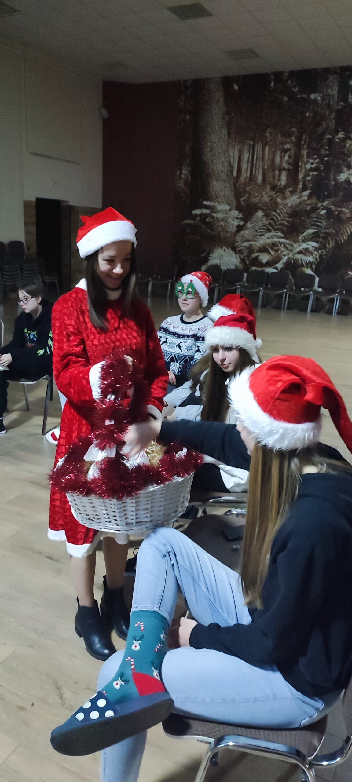 Dnia 6 grudnia 2021 r. odbyło się spotkanie mikołajkowe w grupie dziewcząt. Od razu można było poczuć klimat przedświąteczny, ponieważ wychowanki zaprezentowały się w strojach nawiązujących do Świąt Bożego Narodzenia. Ubrane były w cudowne, klimatyczne sweterki, bluzeczki, czapeczki Mikołaja, a także miały inne, mniejsze części garderoby tj. okulary, skarpetki lub kapcie.