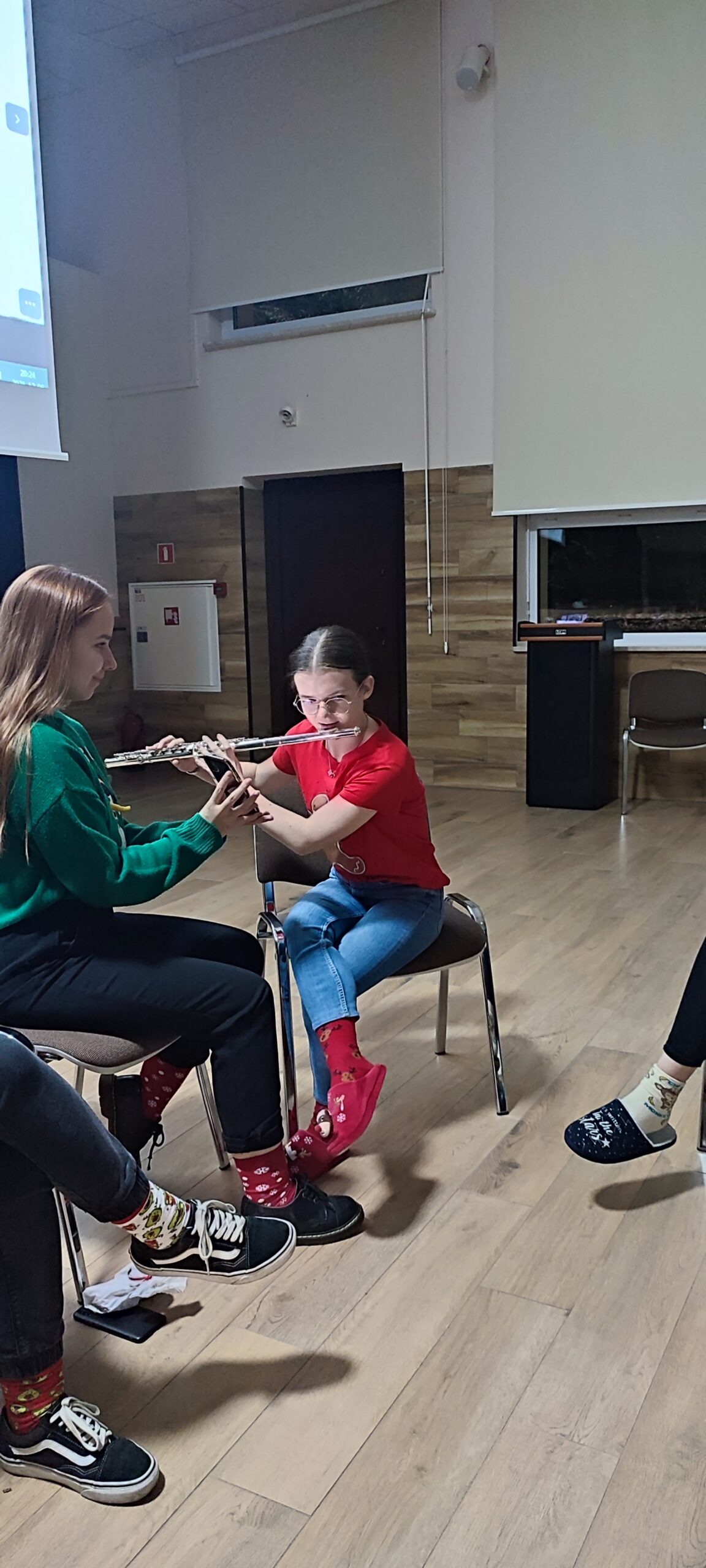 Jak przystało na naszą „artystyczną” grupę, wychowanki zaśpiewały piosenki świąteczne oraz kolędy, zarówno w języku polskim, jak i angielskim. Kornelka przygrywała na flecie poprzecznym, przez co jeszcze bardziej nastroiło to nas w klimat świąt.