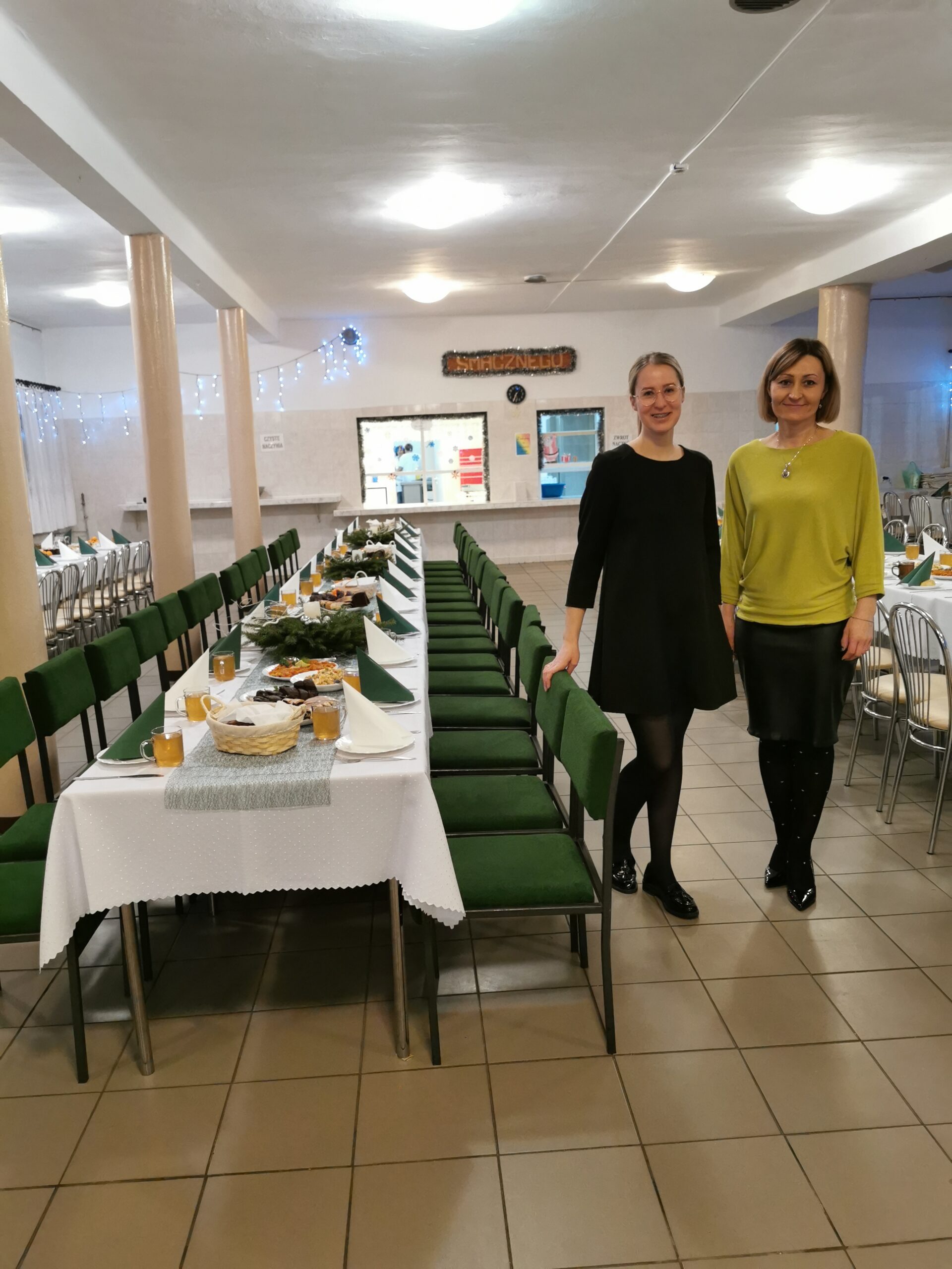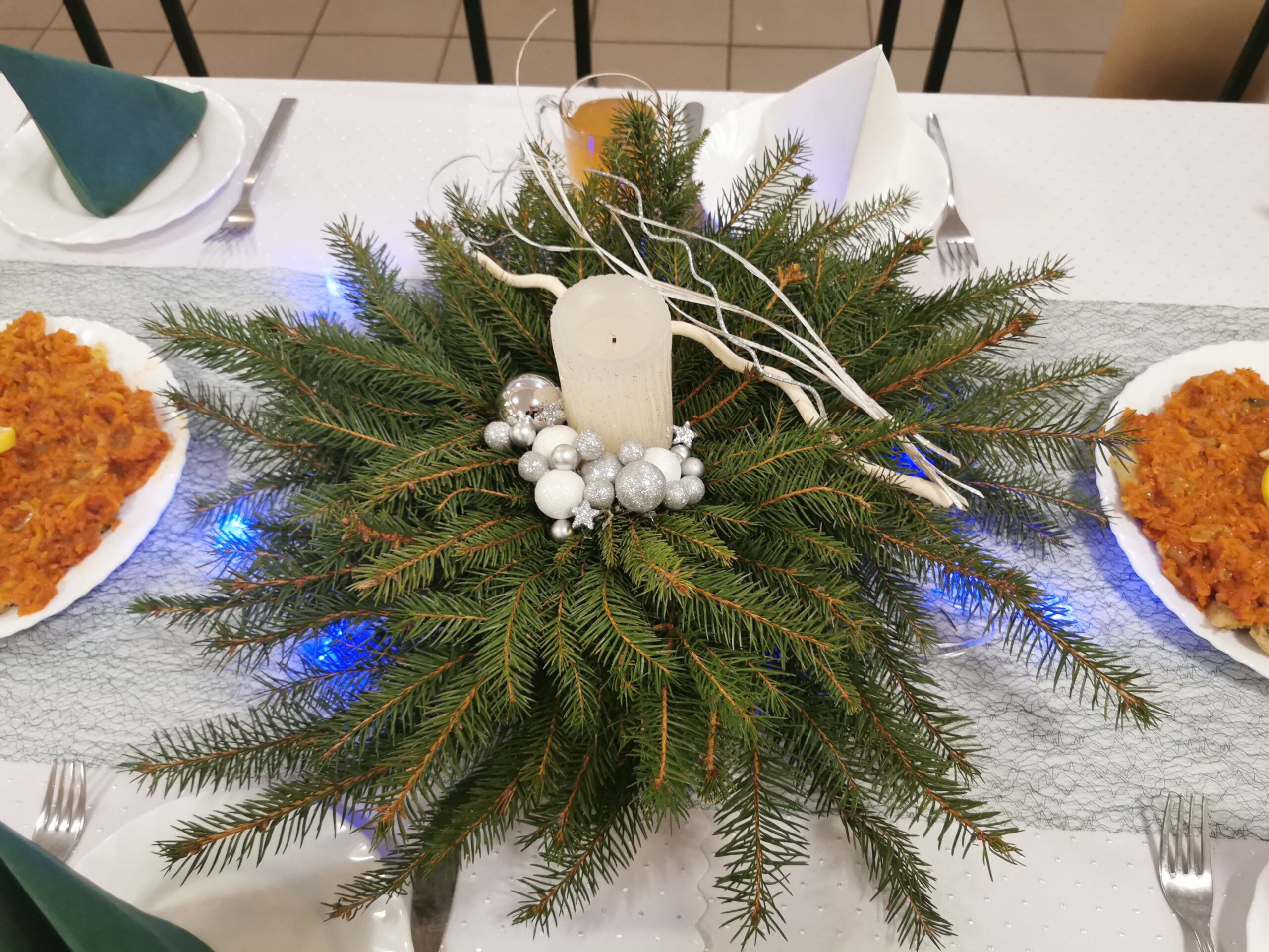 Spotkanie zakończyła uroczysta kolacja wigilijna przygotowana przez panie kucharki. O świąteczny wystrój stołówki zadbali uczniowie pod kierunkiem p. Elżbiety Masajło oraz p. Eweliny Litwinowicz. Był to wyjątkowy wieczór pełen wielu radości i wzruszeń.