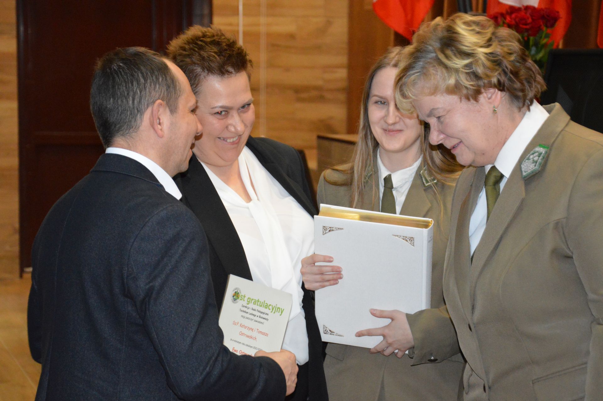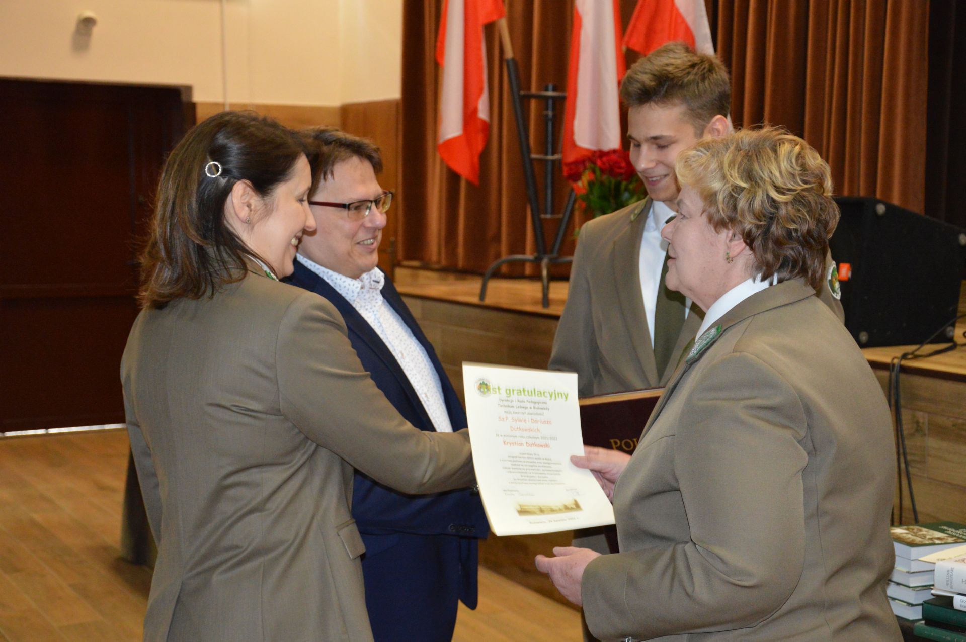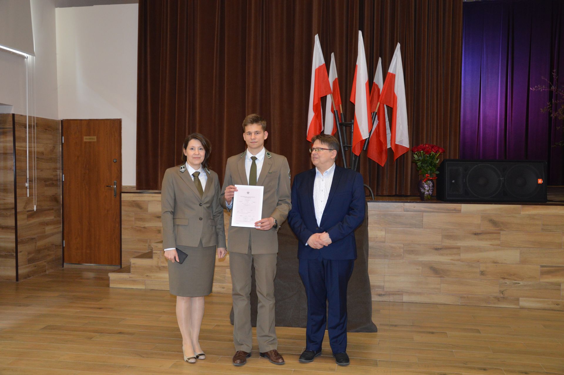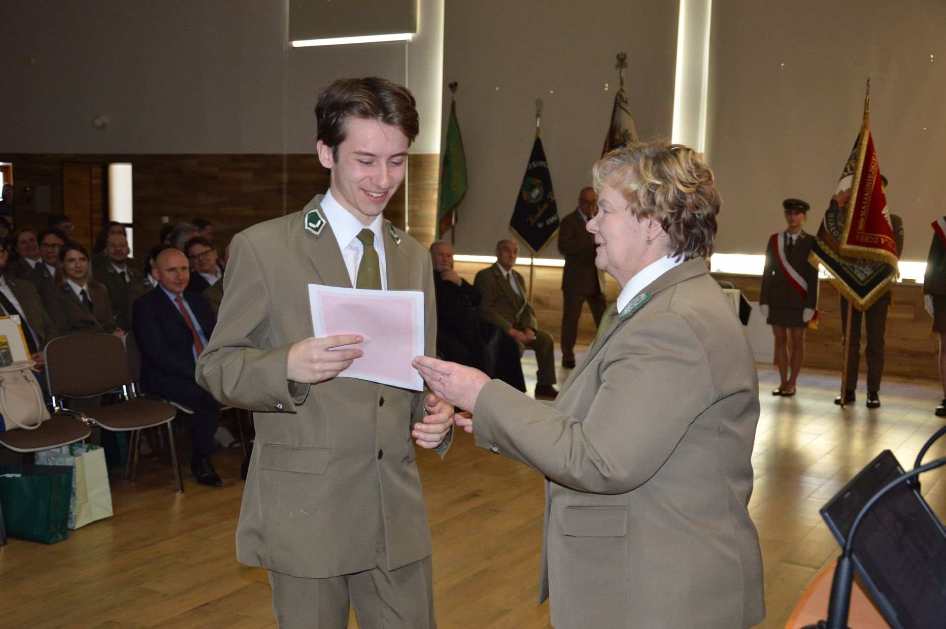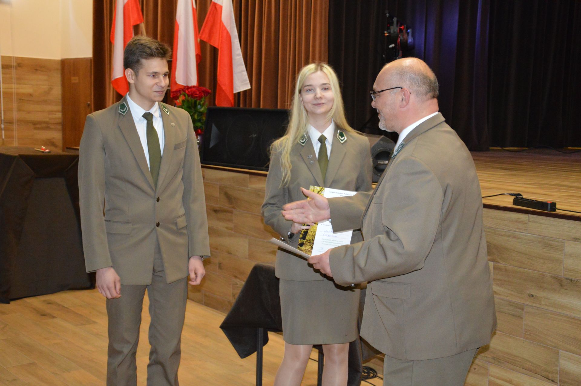 Pan Ireneusz Sokołowski członek Rady Krajowej Związku Leśników Polskich w Rzeczypospolitej Polskiej wręczył stypendium za najlepsze wyniki w nauce z przedmiotów zawodowych za okres czterech lat nauki. Otrzymali je: Wioletta Olechwirowicz i Krystian Dutkowski.