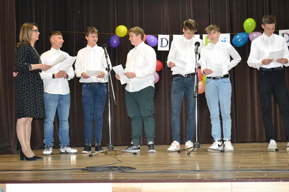 Świętowanie rozpoczęliśmy od podsumowania całorocznych konkursów – konkursu propagującego krwiodawstwo „Krew ratuje życie”, który został zorganizowany przez Szkolne Koło PCK oraz konkursu czystości zorganizowanego przez Sekcję sanitarno-higieniczną. Opiekunka Szkolnego Koła PCK p. Anna Iwaniuk wręczyła nagrody aktywnym krwiodawcom, natomiast opiekunki Sekcji sanitarno-higienicznej p. Katarzyna Kononiuk i p. Katarzyna Przygodzka nagrodziły wychowanków systematycznie utrzymujących porządek w pokojach oraz wychowanków uczestniczących w działaniach sekcji.