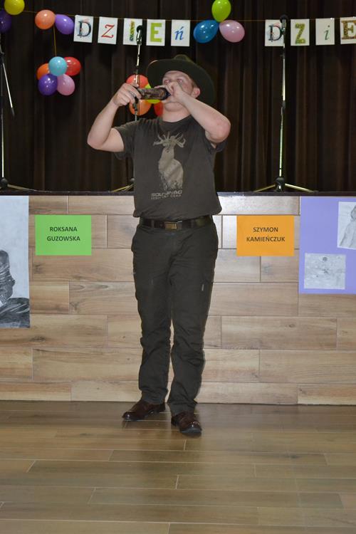 Kolejnym punktem programu był „Pokaz Talentów”, podczas którego wszyscy chętni mogli zaprezentować swoje umiejętności i pasje. Podziwialiśmy występy wychowanków z wszystkich grup wychowawczych. Mieliśmy okazję zobaczyć występ mażoretki, obejrzeć fotografie i rysunki wykonane przez wychowanków, posłuchać śpiewu, gry na flecie poprzecznym, keyboardzie, gitarze klasycznej i elektrycznej. Ponadto wysłuchaliśmy opowieści o rekonstrukcjach historycznych, w których bierze udział jeden z wychowanków, podziwialiśmy sztukę wabienia zwierzyny oraz skosztowaliśmy słodkich wypieków przygotowanych przez pierwszoklasistów. Wychowankowie, którzy wzięli udział w „Pokazie Talentów” zostali nagrodzeni słodkim upominkiem.