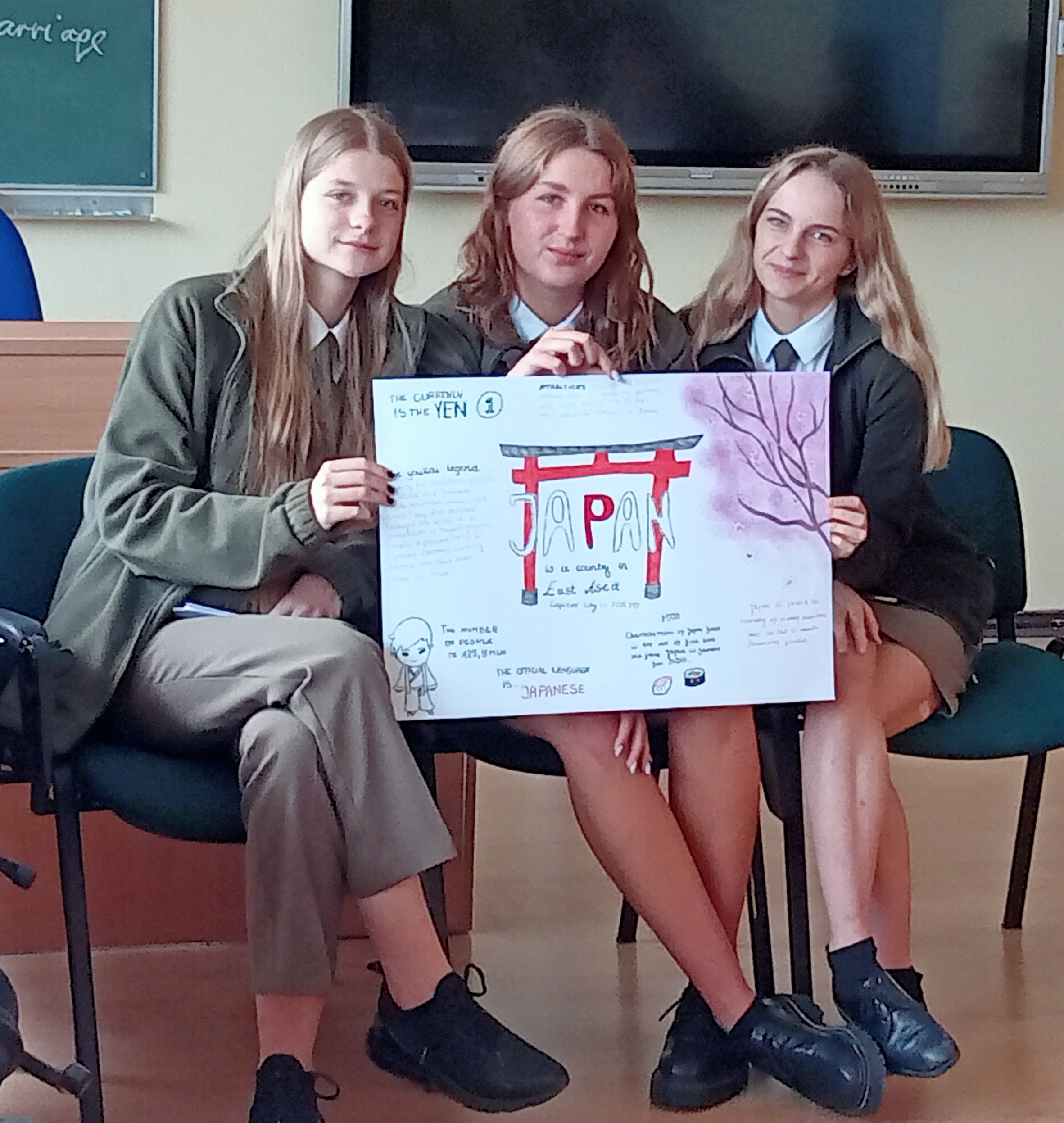 W dniu 15.09 na lekcji języka angielskiego w kl. 3A odbyła się prezentacja projektów geograficzno-językowych. 3 osobowe zespoły prezentowały informacje o wybranym kraju (Niger, Włochy, Japonia, Singapur, Tajlandia, Finlandia, Irlandia). Prezentacja słowna oraz plakat w języku angielskim dotyczył informacji ogólnych o danym kraju, lokalizacji, populacji, faktów historycznych, wybranych ciekawostek kulturalnych, kuchni danego kraju oraz atrakcji turystycznych. Wykonane plakaty zdobią pracownię języka angielskiego- sala 211.