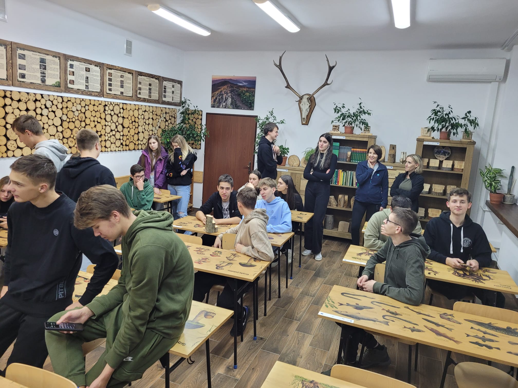 W dniach 4-7 października klasa 2B pojechała na wycieczkę w Bieszczady. Nocleg i wyżywienie zapewnił nam Zespół Szkół Leśnych w Lesku. Podczas pobytu w górach zdobyliśmy najwyższy szczyt Bieszczad – Tarnicę, oraz przeszliśmy się Połoniną Caryńską. Mieliśmy tez okazję zobaczyć retortę do wypalania węgla drzewnego. Byliśmy również w Solinie oraz na wieży widokowej. Odwiedziliśmy Centrum Promocji Leśnictwa i Zagrodę Żubrów w Mucznem. Oprócz tego mieliśmy okazje zwiedzić szkołę leśną w Lesku – oprowadzali nas uczniowie. W drodze powrotnej zwiedziliśmy Stare Miasto w Lublinie.