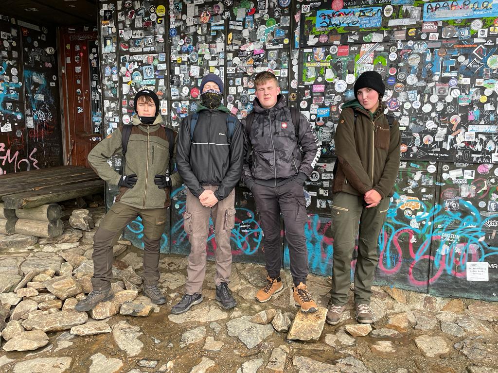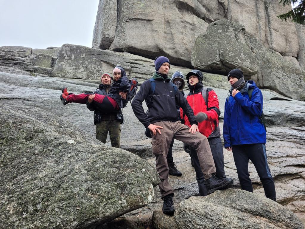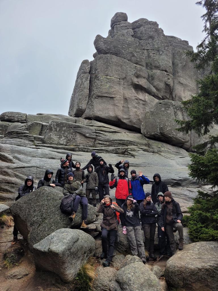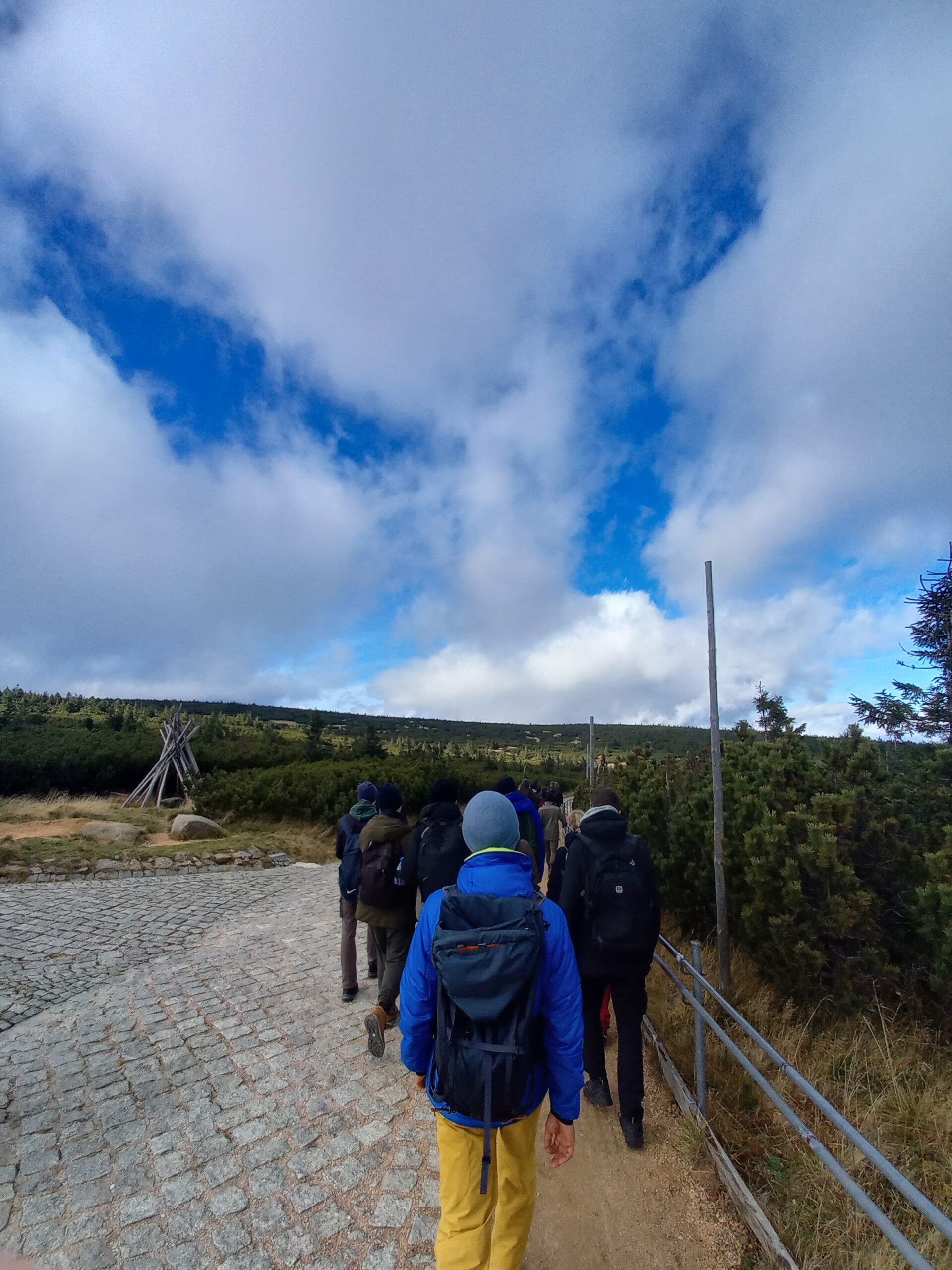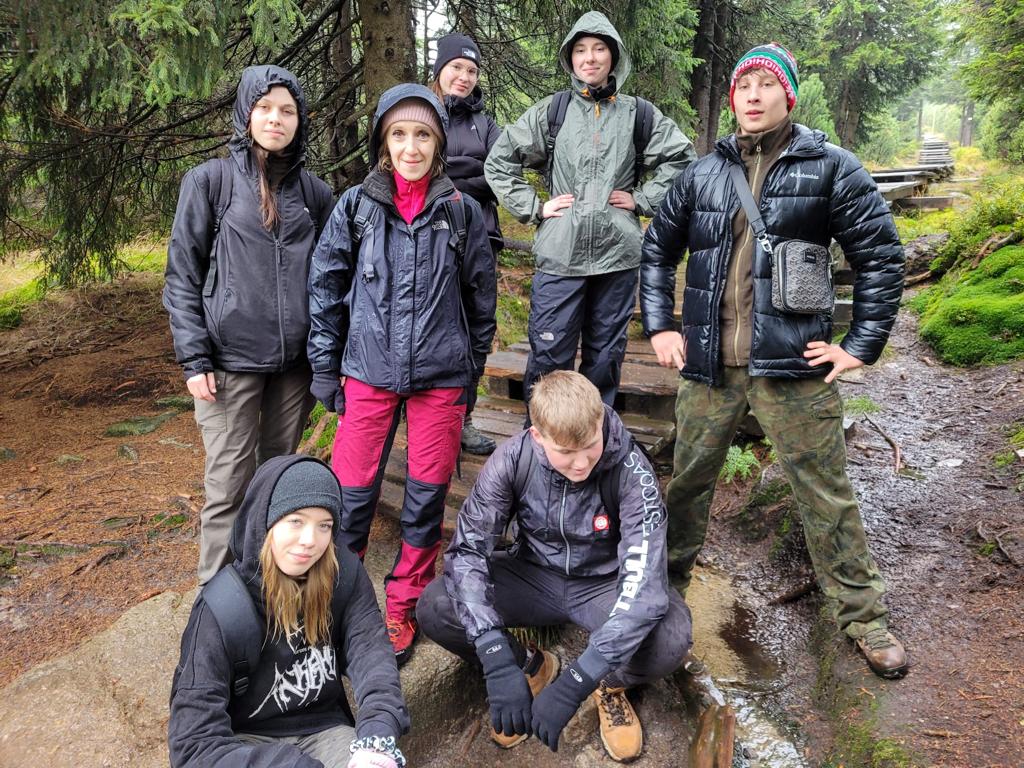 Pomimo swojej nazwy zaskoczyła nas słońcem i przejrzystym niebem. Mogliśmy więc stamtąd podziwiać panoramę Karkonoszy po obu stronach granicy Polsko-Czeskiej. Trasa była trudna, ale każdy dał sobie radę z nowym wyzwaniem.