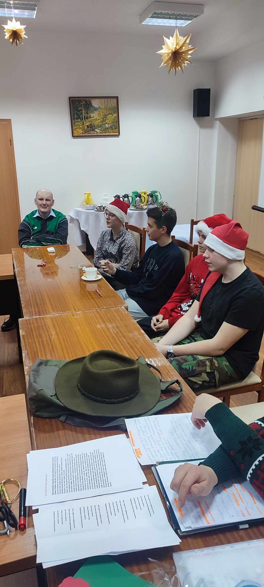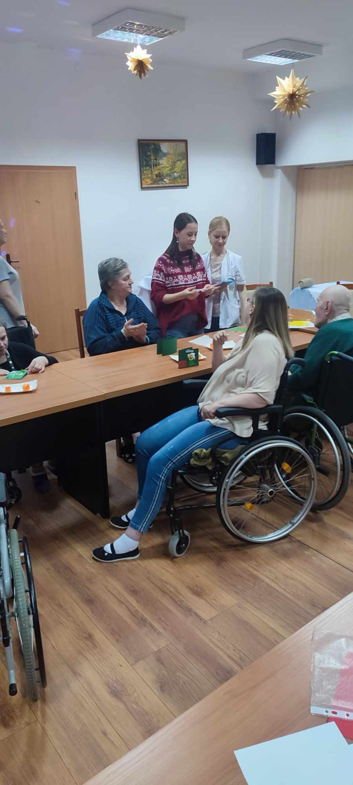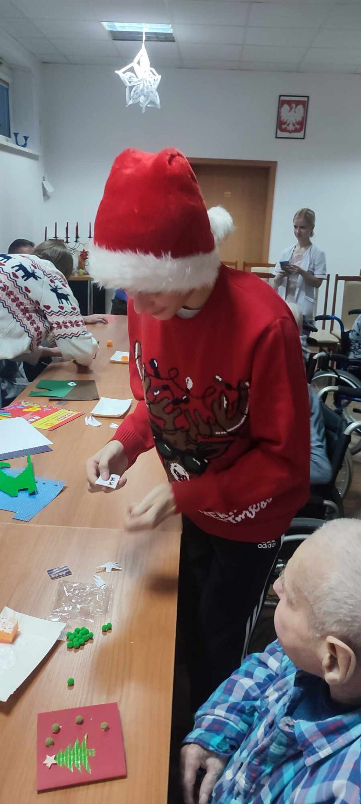 12 grudnia uczniowie Technikum Leśnego w Białowieży wraz z wychowawczynią Panią Katarzyną Przygodzką odwiedzili Dom Pomocy Społecznej ,,Rokitnik” w Białowieży. Celem wyjścia było wprowadzenie podopiecznych w świąteczny nastrój oraz wspólne spędzenie czasu. Wszyscy tam zgromadzeni mieli okazje wysłuchania kolędy w wykonaniu uczennicy klasy czwartej Natalii Nikitiuk wraz z Panią Kasią. Spotkanie umiliło czytanie opowieści wigilijnych o Bożym Narodzeniu jak też wierszy o tematyce świątecznej przez uczniów klasy pierwszej. Nastepną uroczą niespodzianką tego spotkania było wprowadzenie nas wszystkich w świat odgłosów zwierząt leśnych w trakcie rykowiska które zostało w piękny i dostojny sposób zademonstrowane przez ucznia klasy czwartej Mateusza Korzenieckiego. W trakcie spotkania pensjonariusze mieli okazję wziąć udział w warsztatach pod tytułem ,, Moja własnoręcznie ozdobiona kartka świąteczna” w których to nasza młodzież z wielkim sercem i zaangażowaniem niosła pomoc mieszkńcom w ich wykonaniu. Każdy z mieszkańców Domu Pomocy Społecznej otrzymał kartkę świąteczną wraz z pięknie zapakowanymi piernikami. Oba te elementy zostały własnoręcznie przygotowane i wykonane przez naszą cudowną i bardzo uzdolnioną młodzież. Spotkaniu towarzyszyły głośne rozmowy, śmiech, a podczas wykonywania kolęd przez Natalię Nikitiuk niekiedy ogromne wzruszenie a nawet i łzy.