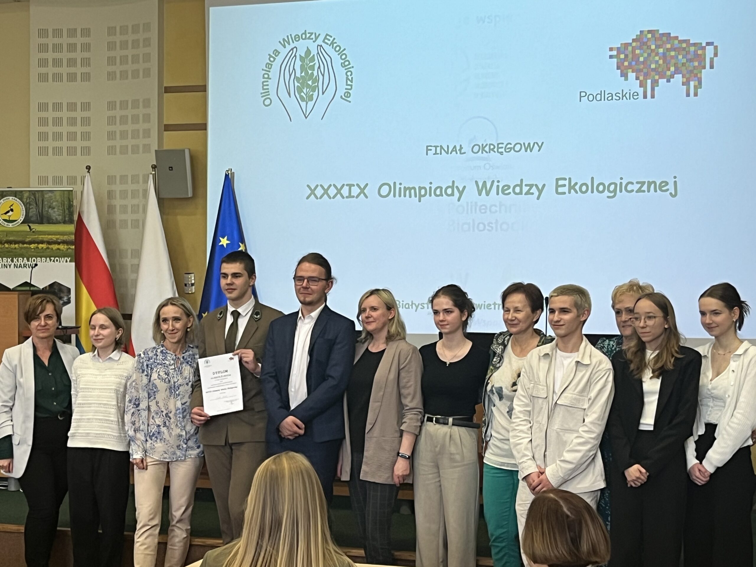 Dnia 13.04.2024r w Urzędzie Marszałkowskim Województwa Podlaskiego w Białymstoku odbył się etap okręgowy XXXIX Olimpiady Wiedzy Ekologicznej. To uznany w Polsce konkurs dla uczniów szkół średnich z zakresu ekologii, ochrony przyrody i środowiska oraz aktualnych zagadnień społeczno – gospodarczych związanych z tą tematyką. Celem olimpiady jest kształtowanie i podnoszenie świadomości ekologicznej oraz popularyzacja problematyki ekologii wśród młodych ludzi w aspekcie skutecznego przeciwdziałania procesom tak istotnym w dzisiejszych czasach – dotyczących degradacji środowiska.