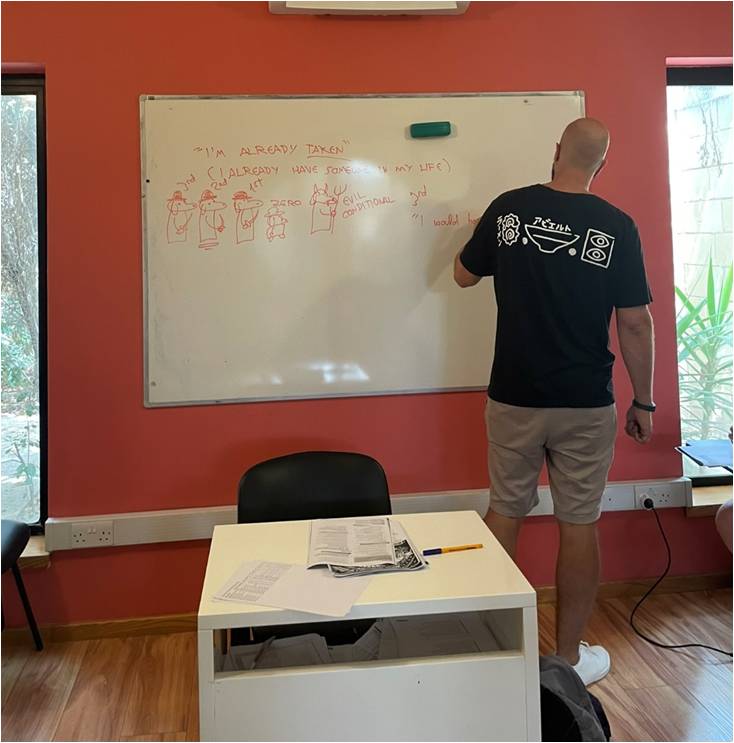 Kurs odbywał się w szkole językowej Sprachcaffe Languages Plus w Pembroke . Przed wyjazdem na Maltę wszyscy uczestnicy rozwiązali wstępny test z języka angielskiego online i na tej podstawie zostali zakwalifikowani do grup o różnych poziomach znajomości języka.