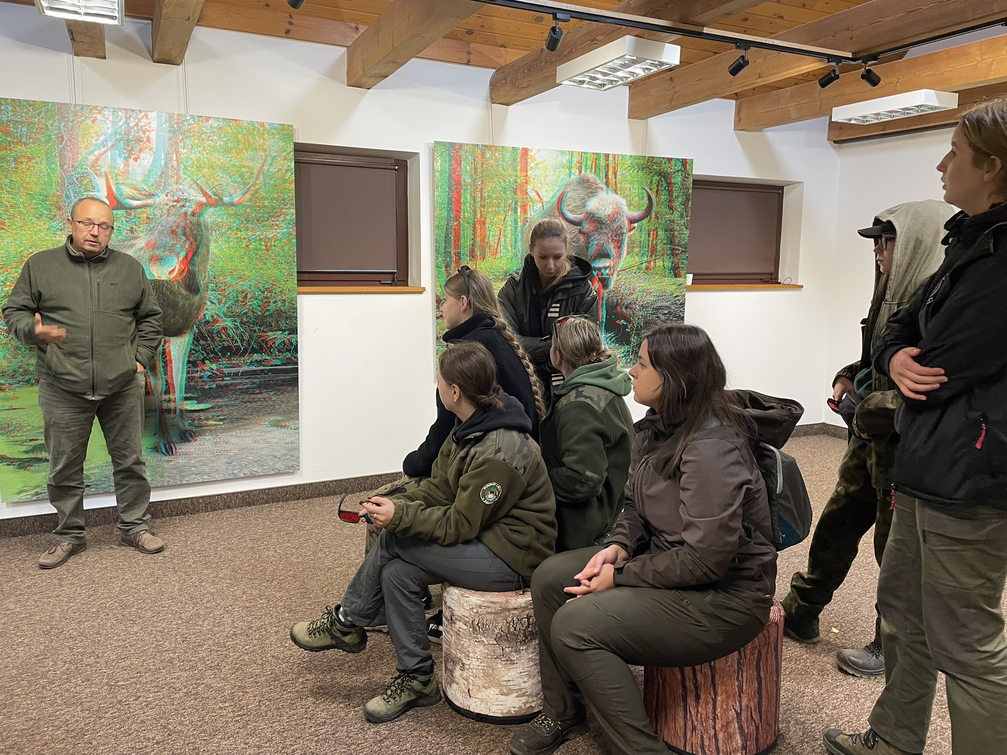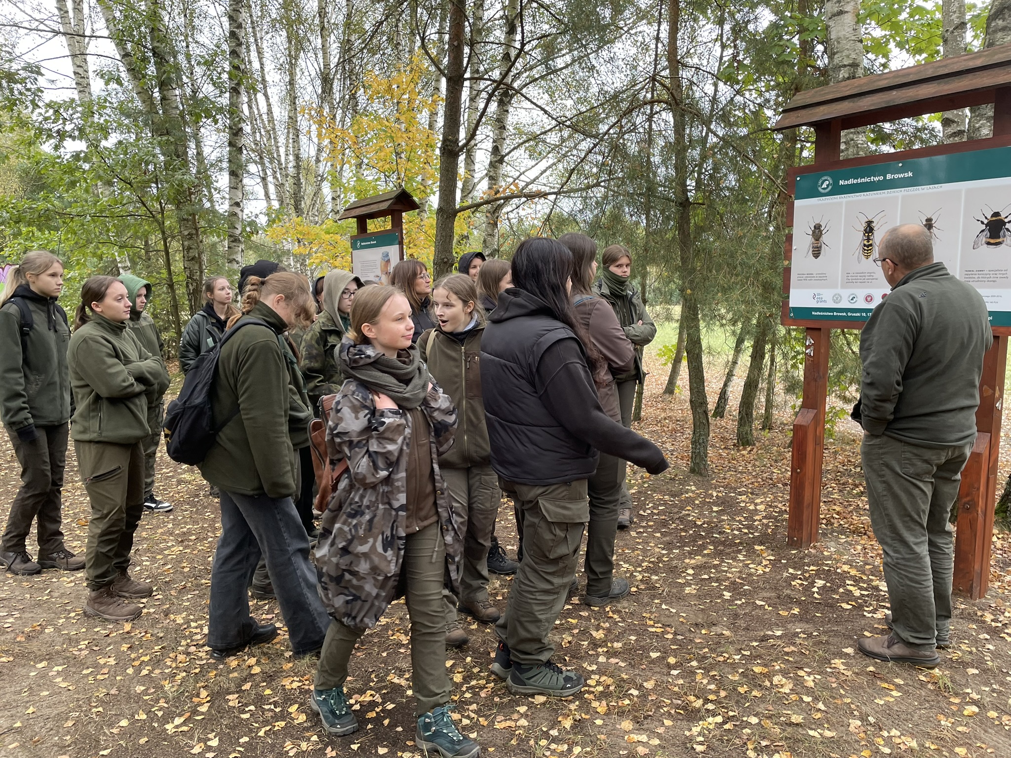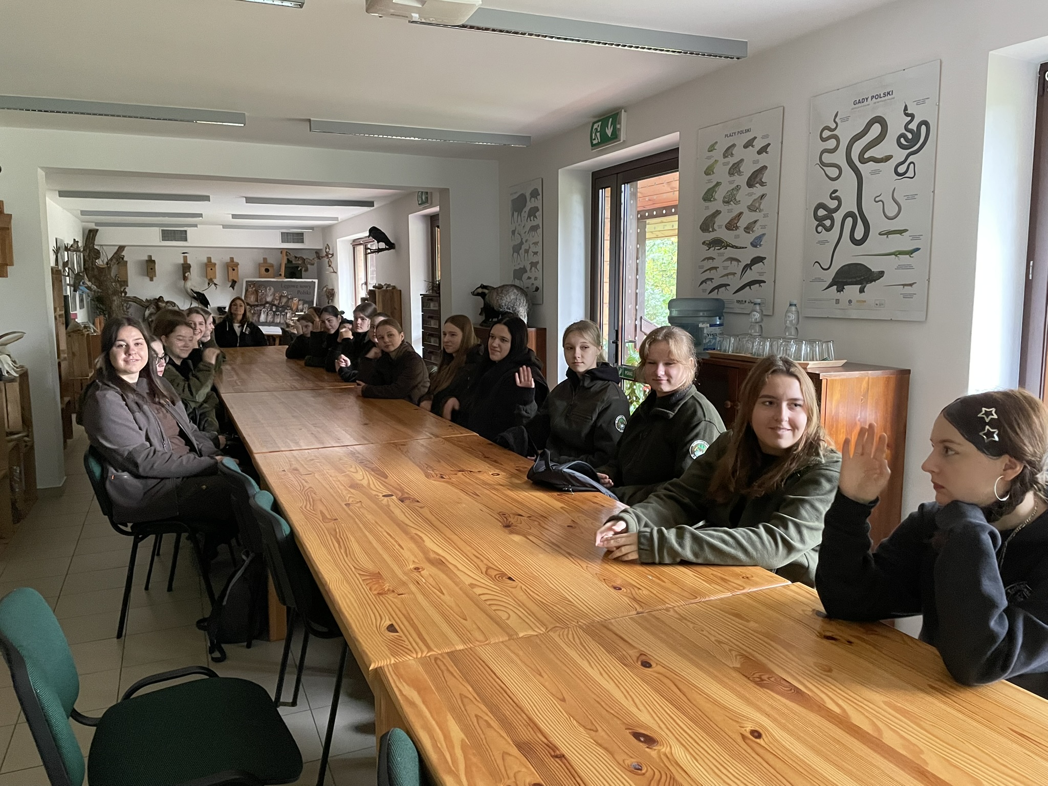 W dniu 01.10.2024 r. grupa druga dziewcząt z internatu wraz z wychowawczyniami Panią Anną Jakoniuk oraz Katarzyną Przygodzką wybrała się na wycieczkę do Nadleśnictwa Browsk. Podczas wizyty wychowanki zapoznały się z ciekawą historią Puszczy Białowieskiej m.in.: jak zmieniała się populacja żubra na przestrzeni lat, jak prowadzona jest ochrona czynna i bierna na terenie nadleśnictwa oraz jakie trudności i wyzwania wiążą się z zarządzaniem obiektem światowego dziedzictwa UNESCO. Następnie miały okazję wraz z Panem leśniczym Mariuszem Agiejczykiem odbyć spacer po szlaku edukacyjnym na terenie nadleśnictwa, zdobywając przy tym wiele cennych informacji związanych np. z bartnictwem i pracą leśniczego. Pani Julia Melchior, która jest wspaniałym ornitologiem, wprowadziła wychowanki w świat ptaków. Wyjaśniła, na czym polega obrączkowanie większych i mniejszych gatunków oraz jakie informacje są zawarte na obrączkach. Po części teoretycznej grupa dziewcząt pojechała nad zalew, aby dołączyć do obozowiska i czynnie uczestniczyć w Akcji Siemianówka, poznając przy tym tajniki pracy wolontariuszy – pasjonatów ptaków. Na miejscu uczennice mogły zobaczyć jak wygląda ważenie, ocena wieku i płci oraz obrączkowanie ptaków. Wszystkie z zachwytem obserwowały pracę zespołu ornitologów. Wiele dziewcząt odkryło w sobie miłość do ptaków, a niektóre nawet wyraziły chęć wzięcia udziału w Akcji Siemianówka w przyszłości. Po złożeniu podziękowań gospodarzom, dziewczęta bogatsze o nową wiedzę i doświadczenia wróciły do internatu.