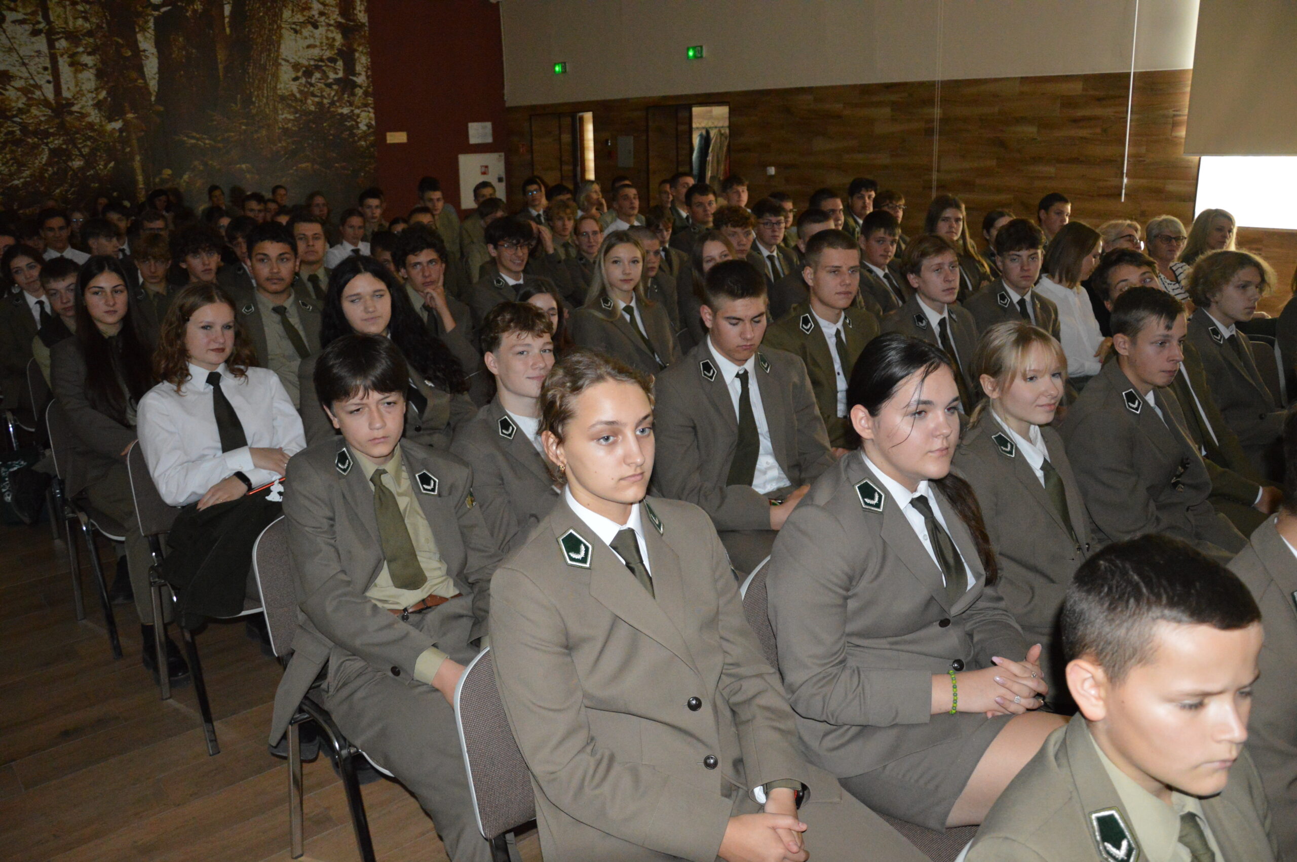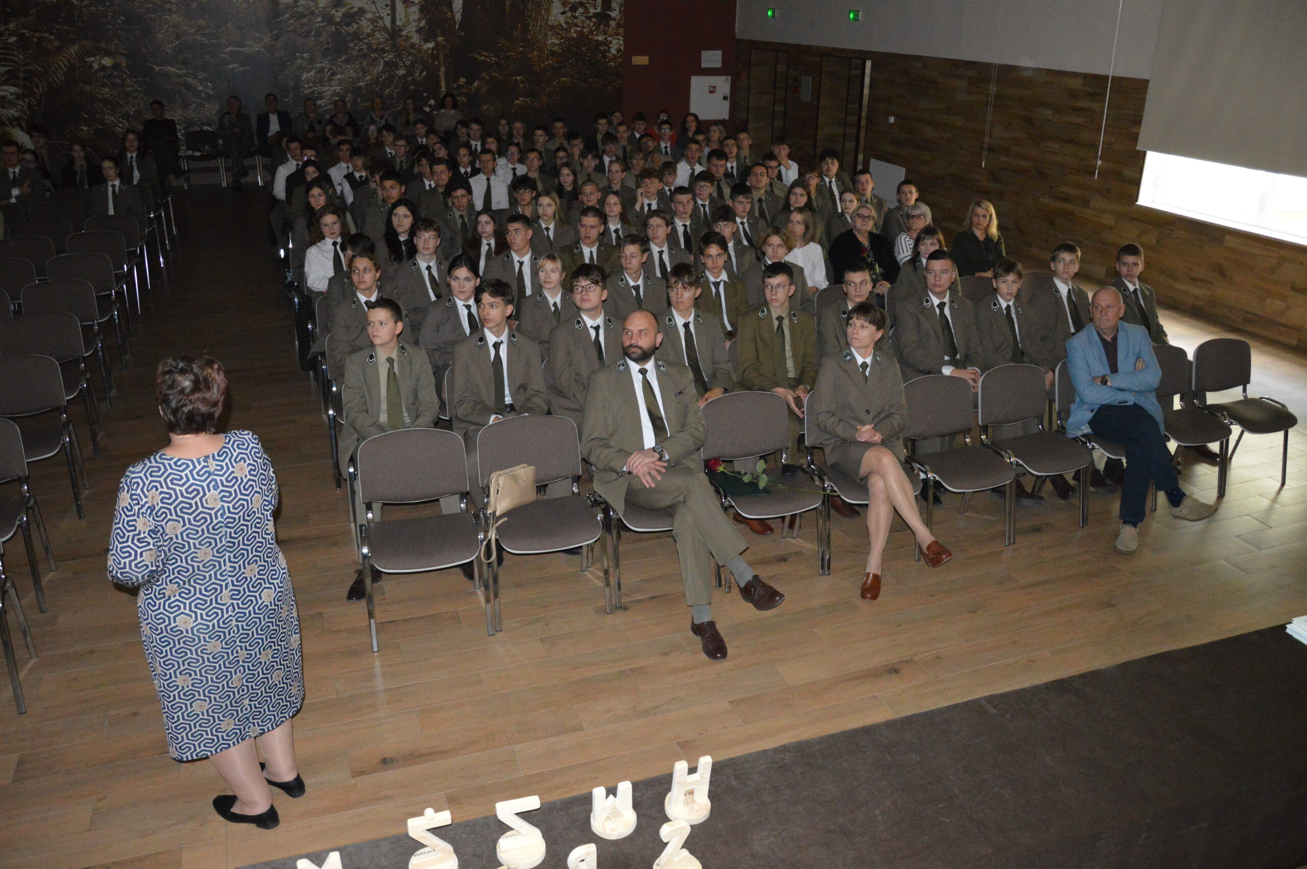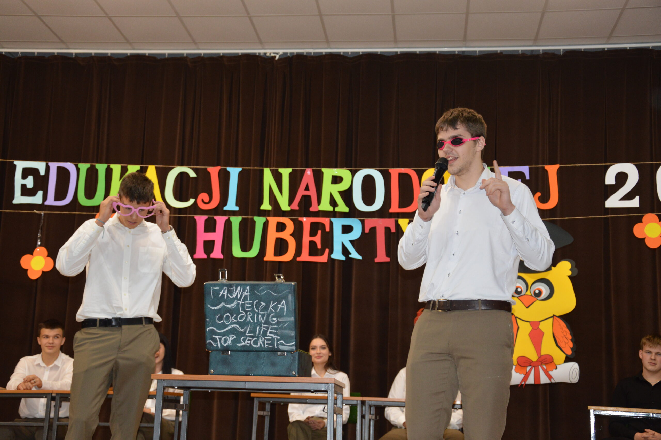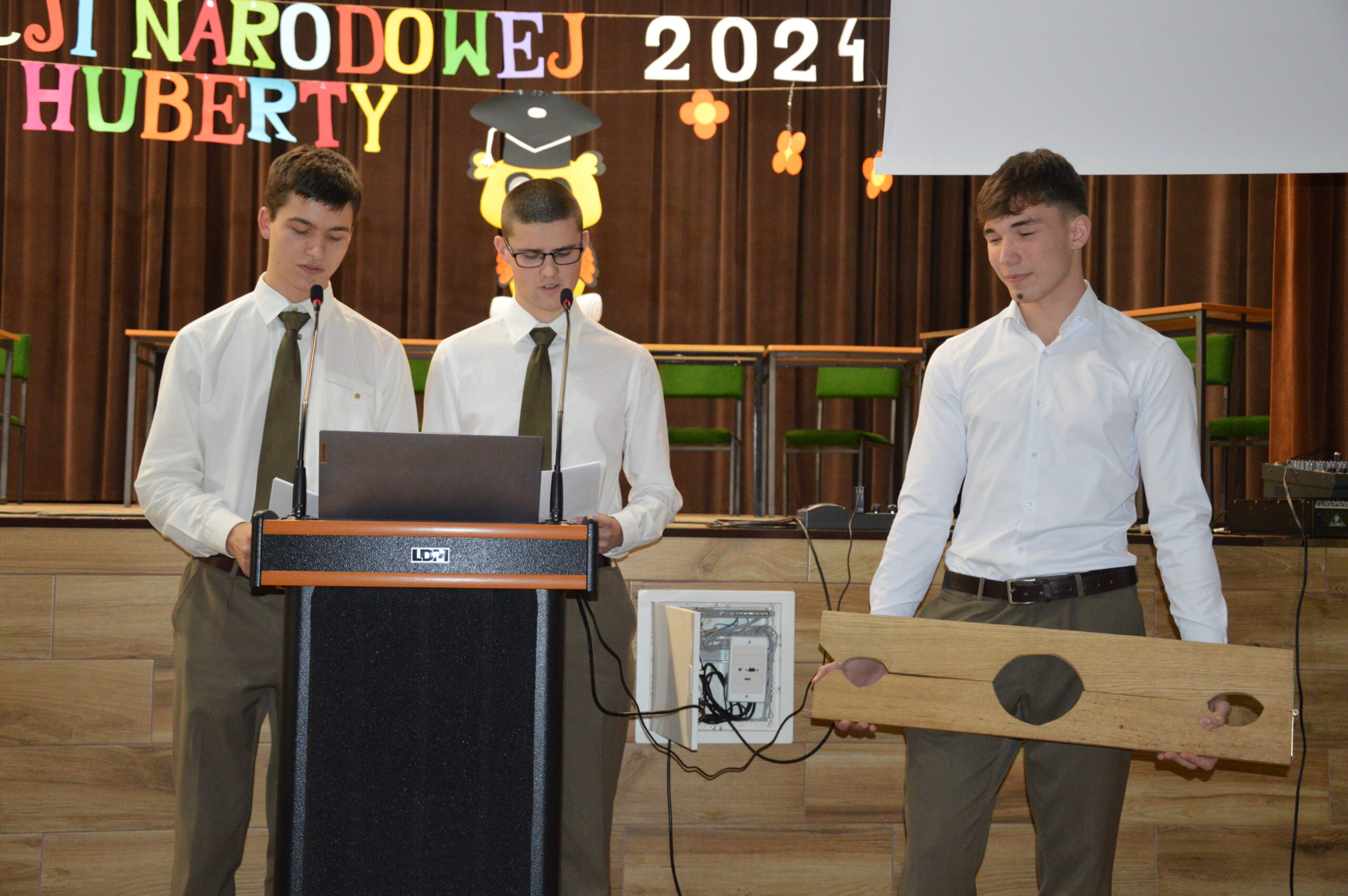 Uroczystość rozpoczęła się wykładem Pani Dyrektor Anny Kulbackiej, która przybliżyła zgromadzonym 95 – letnią historię szkolnictwa leśnego w Białowieży. Uczniowie klasy 3a przygotowali na ten uroczysty dzień krótką część artystyczną i wręczyli specjalne, własnoręcznie wykonane statuetki – „Hubertusy” zasłużonym nauczycielom oraz pracownikom administracji i obsługi.
