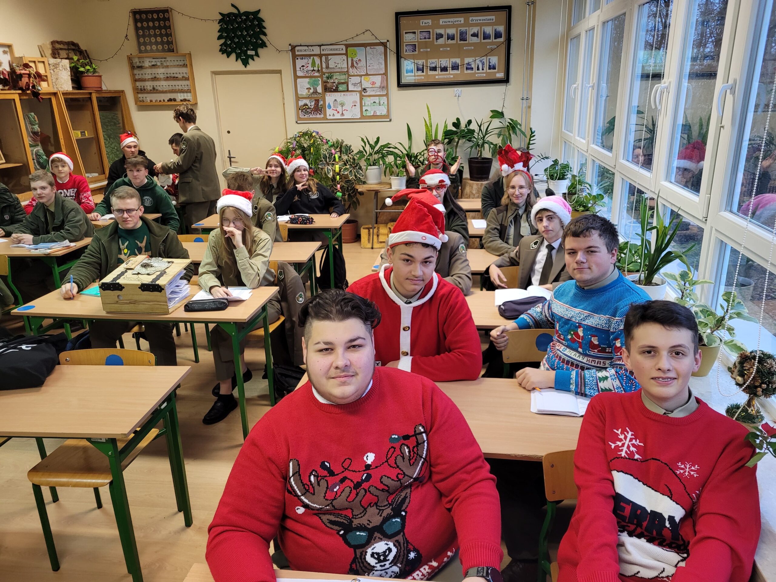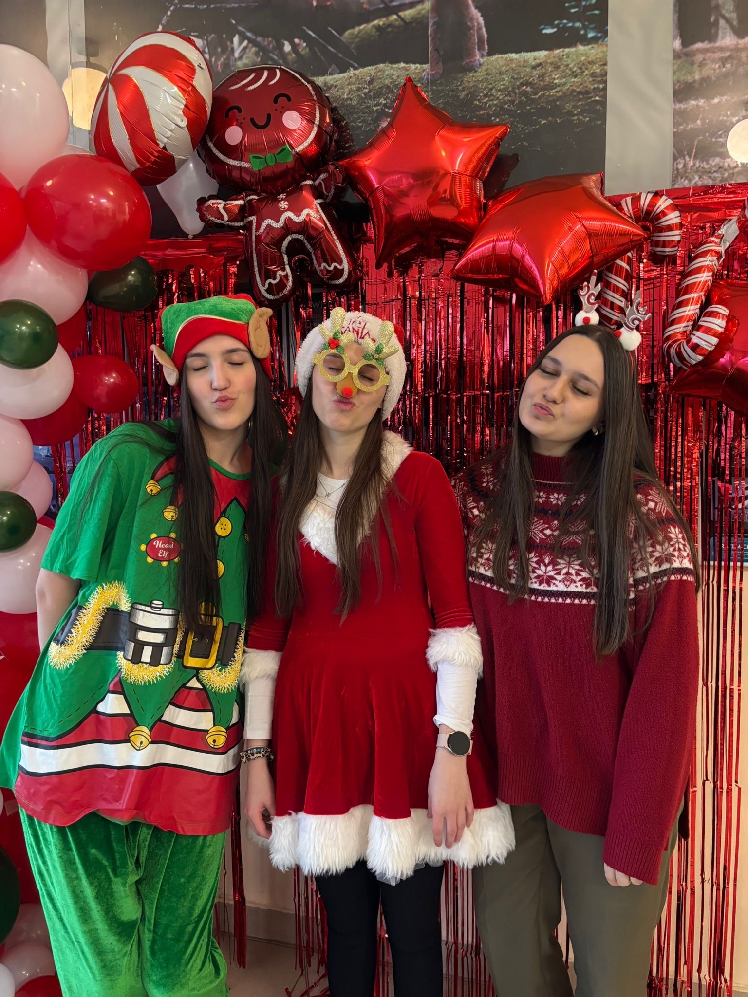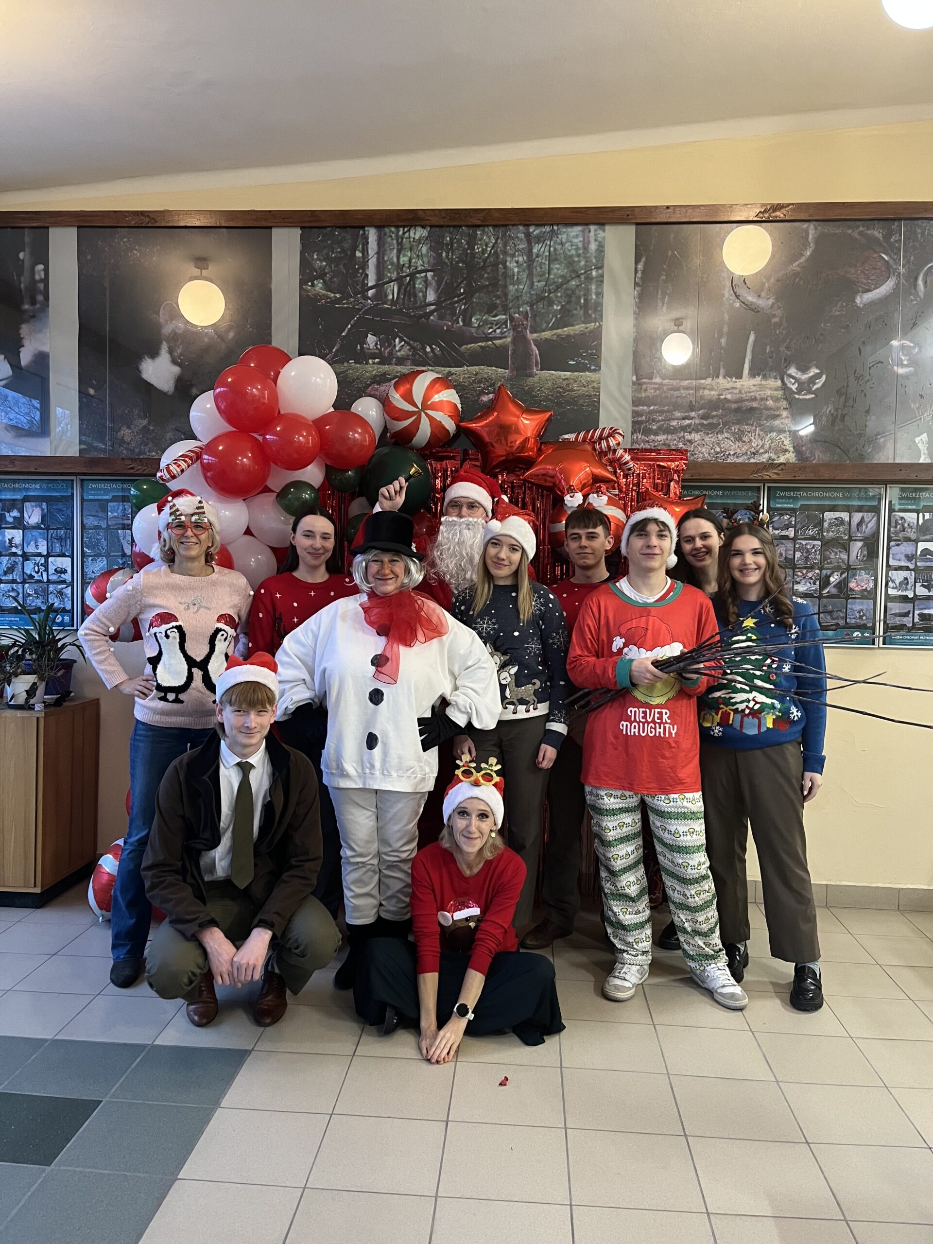 Na korytarzach i w klasach było czerwono od naszych świątecznych swetrów i mikołajkowych czapek. Każdy mógł też skorzystać z okazji i zrobić sobie szkolne świąteczne zdjęcie – taka chwila trafia się przecież tylko raz w roku!