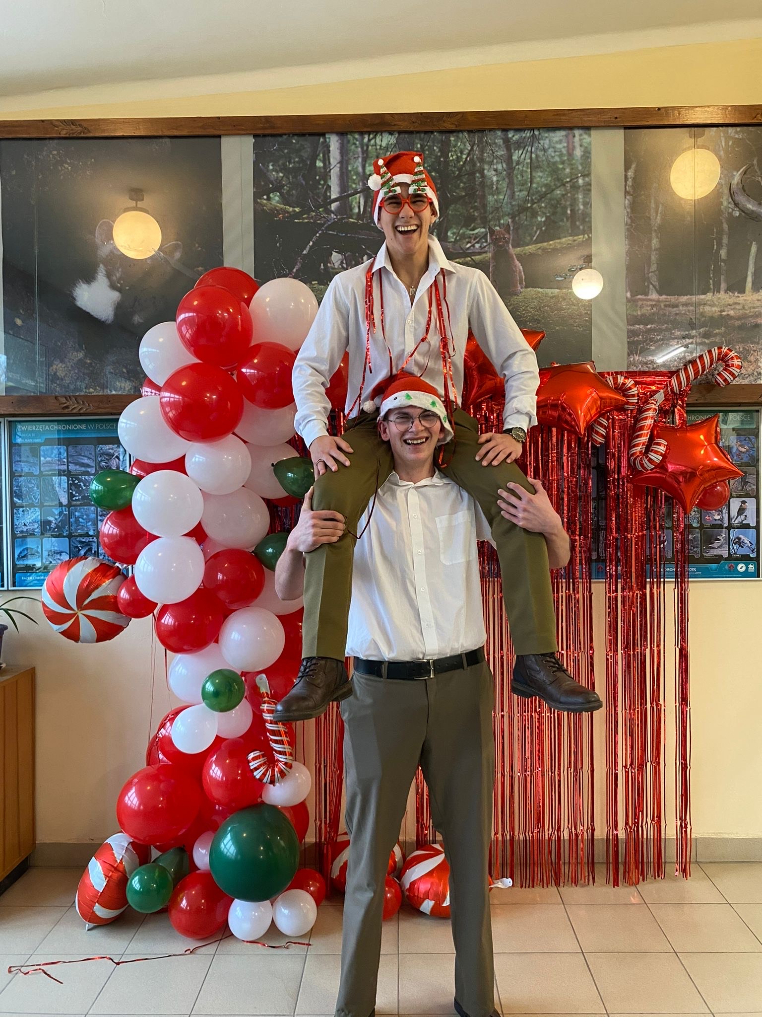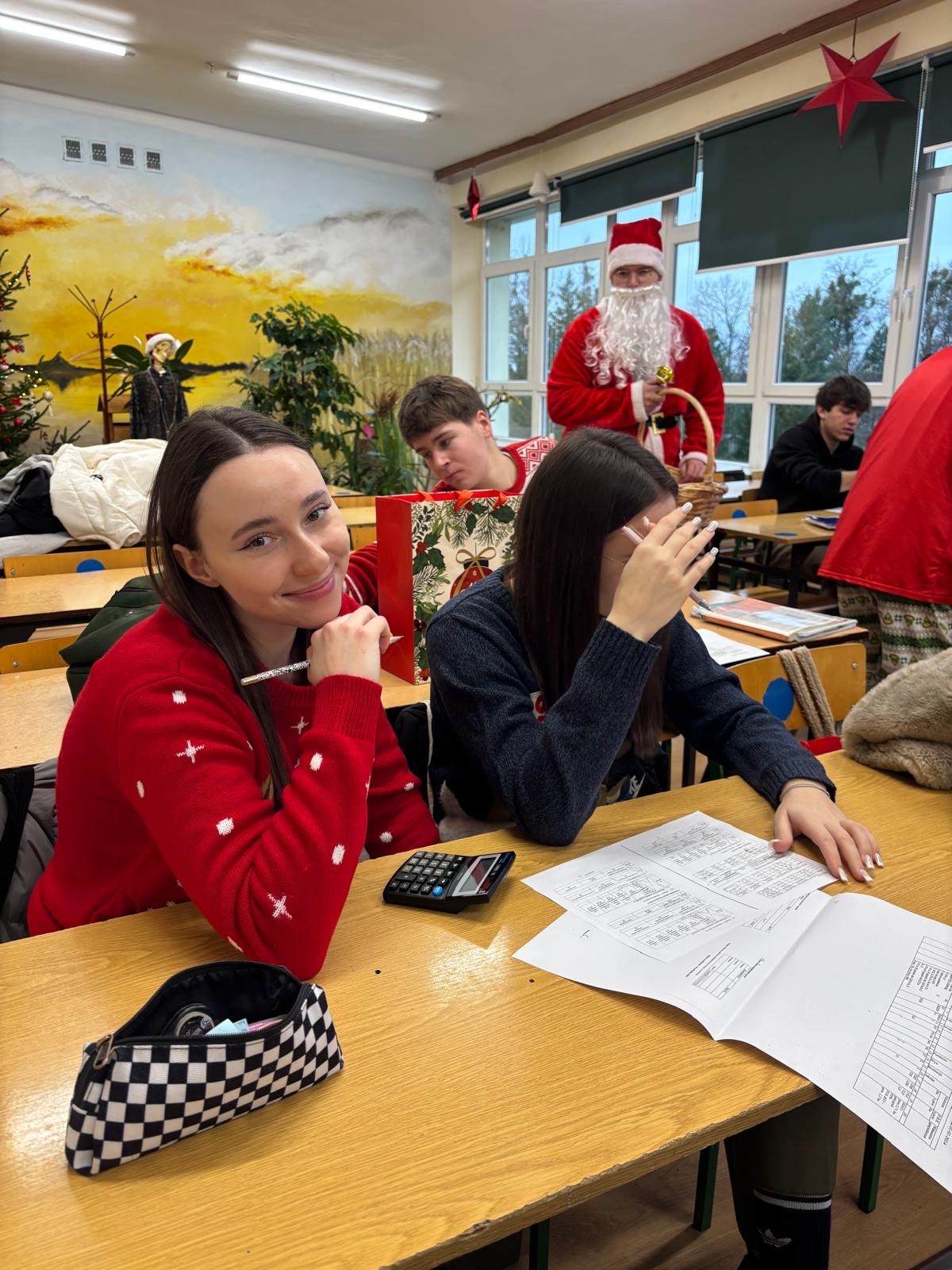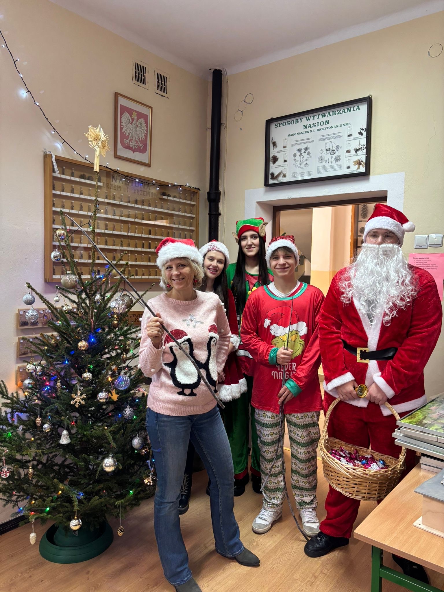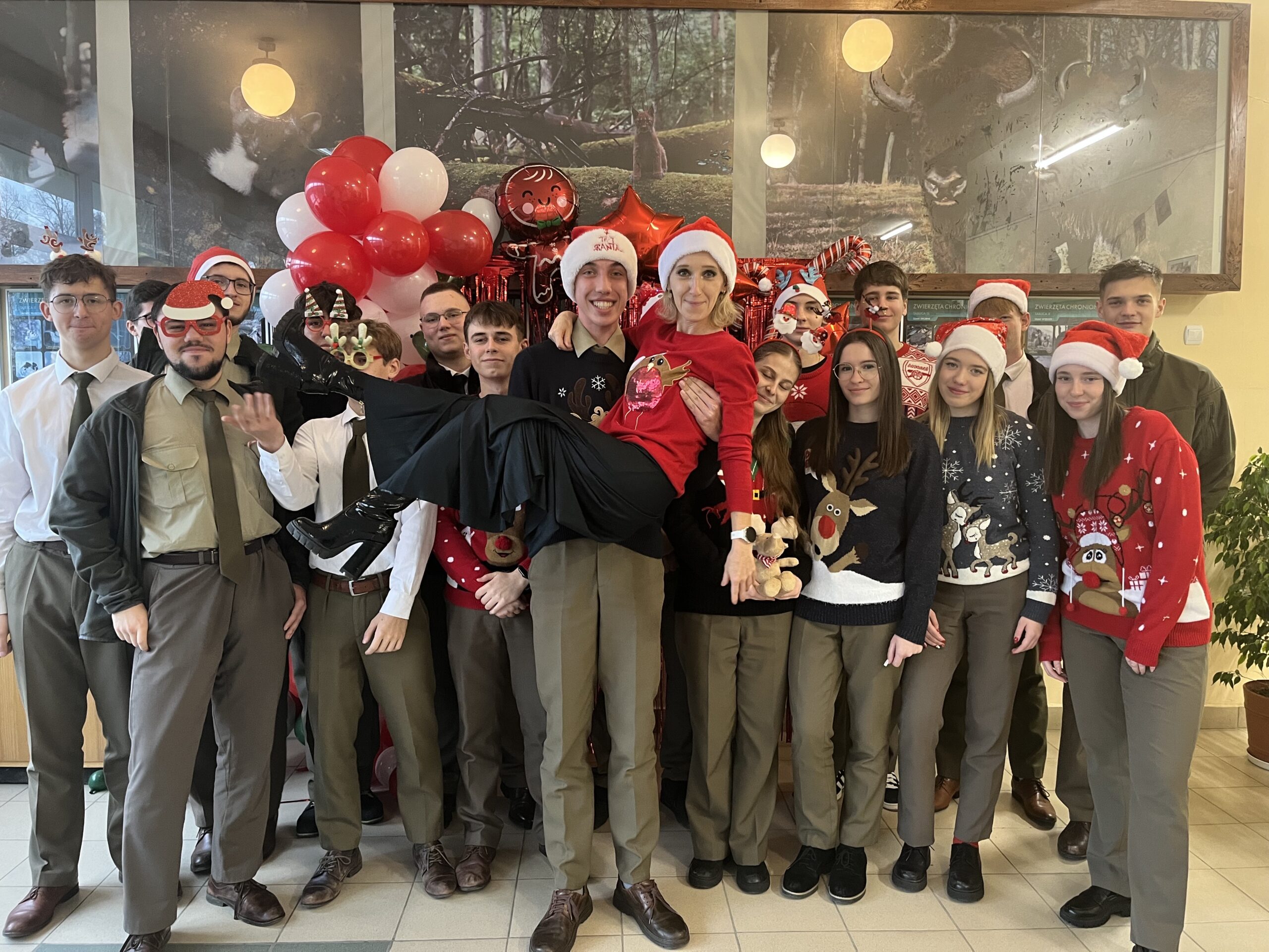 Na korytarzach i w klasach było czerwono od naszych świątecznych swetrów i mikołajkowych czapek. Każdy mógł też skorzystać z okazji i zrobić sobie szkolne świąteczne zdjęcie – taka chwila trafia się przecież tylko raz w roku!