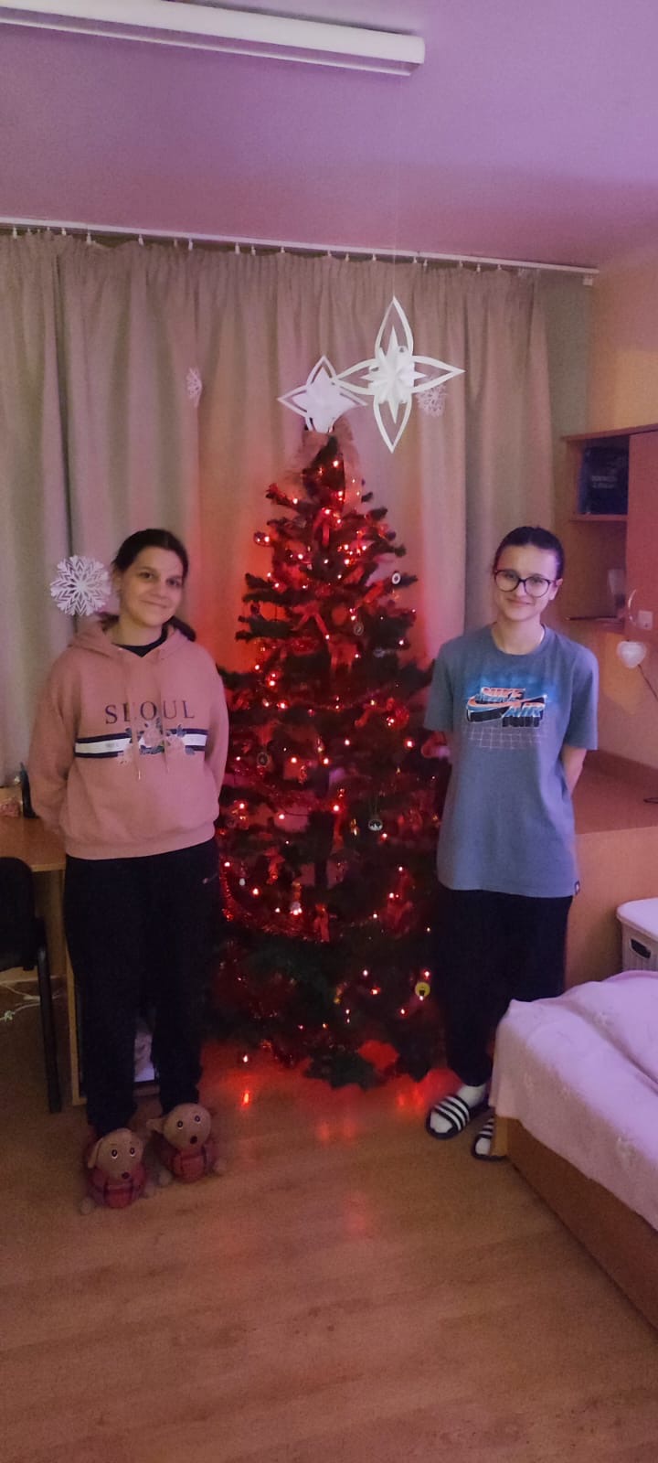 Komisja w składzie p. Sylwia Dutkowska oraz p. Katarzyna Przygodzka miała nie lada wyzwanie, ponieważ wychowankowie wykazali się ogromną kreatywnością, wkładając ogrom pracy w wykonanie ozdób choinkowych różnorodnymi technikami plastycznymi i tworzącymi nastrój przedświąteczny. W salach mieszkalnych wychowawczynie mogły zachwycić się bogactwem pięknych dekoracji wykonanych przez uczniów, wzbogaconych również o inne elementy, jak choinki, stroiki, łańcuchy oraz lampki. Dodatkowo w niektórych pokojach unosił się zapach cynamonu, pomarańczy, a w tle wybrzmiewały świąteczne piosenki. Można było poczuć prawdziwą atmosferę zbliżających się Świąt!