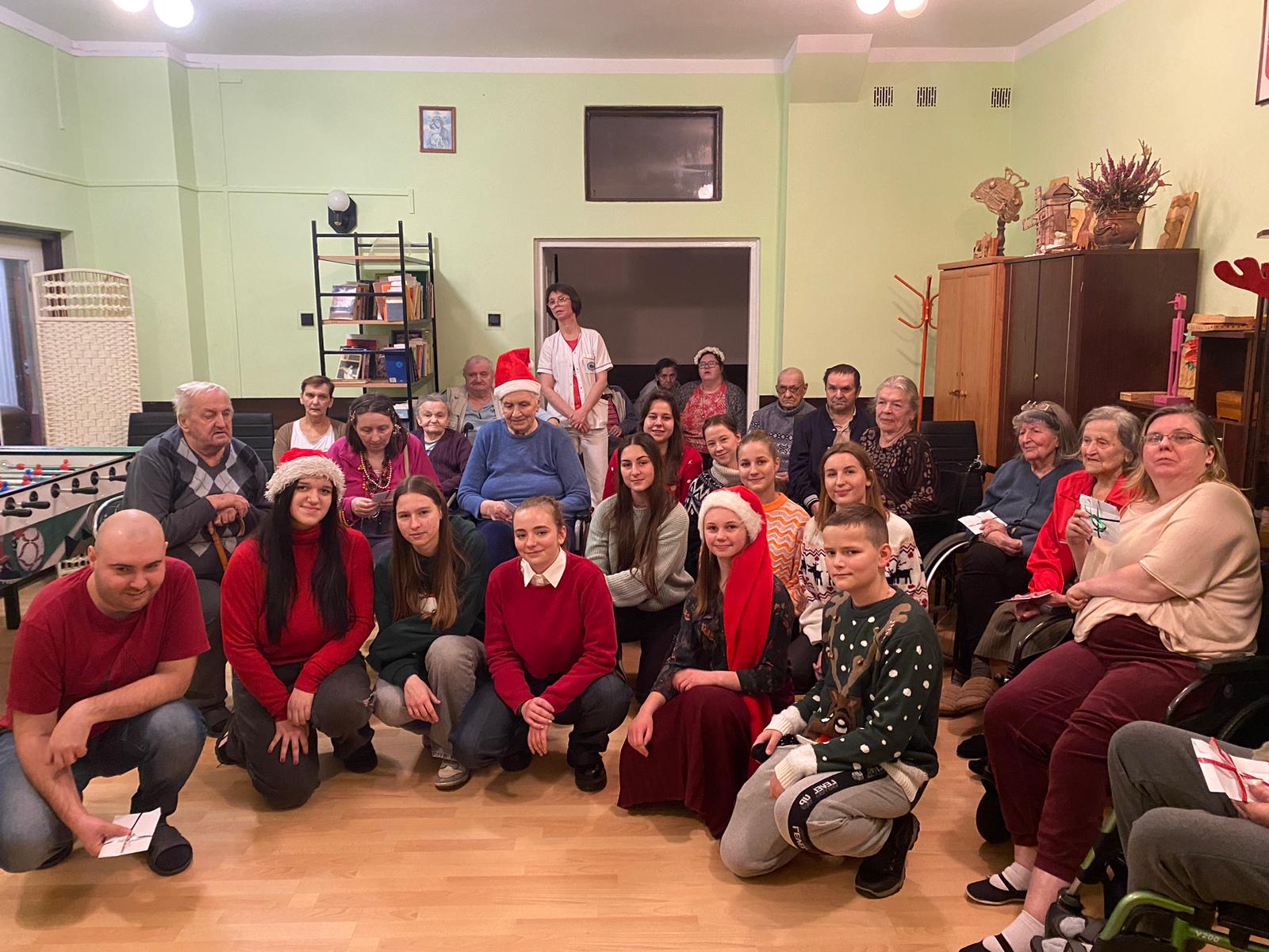 Dnia 18.12.2024 r. w związku ze zbliżającymi się Świętami Bożego Narodzenia młodzież Technikum Leśnego wraz z wychowawczynią Panią Katarzyną Przygodzką uczestniczyła w wyjściu grupowym do Domu Pomocy Społecznej ,,Rokitnik’’ w Białowieży. Spotkanie to miało na celu wprowadzenie pensjonariuszy w klimat zbliżających się świąt oraz wspólne spędzenie z nimi czasu. Dziewczęta i chłopcy zaprezentowali mieszkańcom domu kolędy w wykonaniu ukraińskim, białoruskim oraz polskim. Podopieczni DPS-u z wielkim wzruszeniem wysłuchali kolęd w wykonaniu naszej uzdolnionej młodzieży. Można było zauważyć ogromne wzruszenie a nawet i łzy. Po zakończonym kolędowaniu każdy z podopiecznych został obdarowany pięknym upominkiem w postaci kartek z życzeniami oraz słodkimi piernikami własnoręcznie przygotowanymi przez nasze wychowanki.
