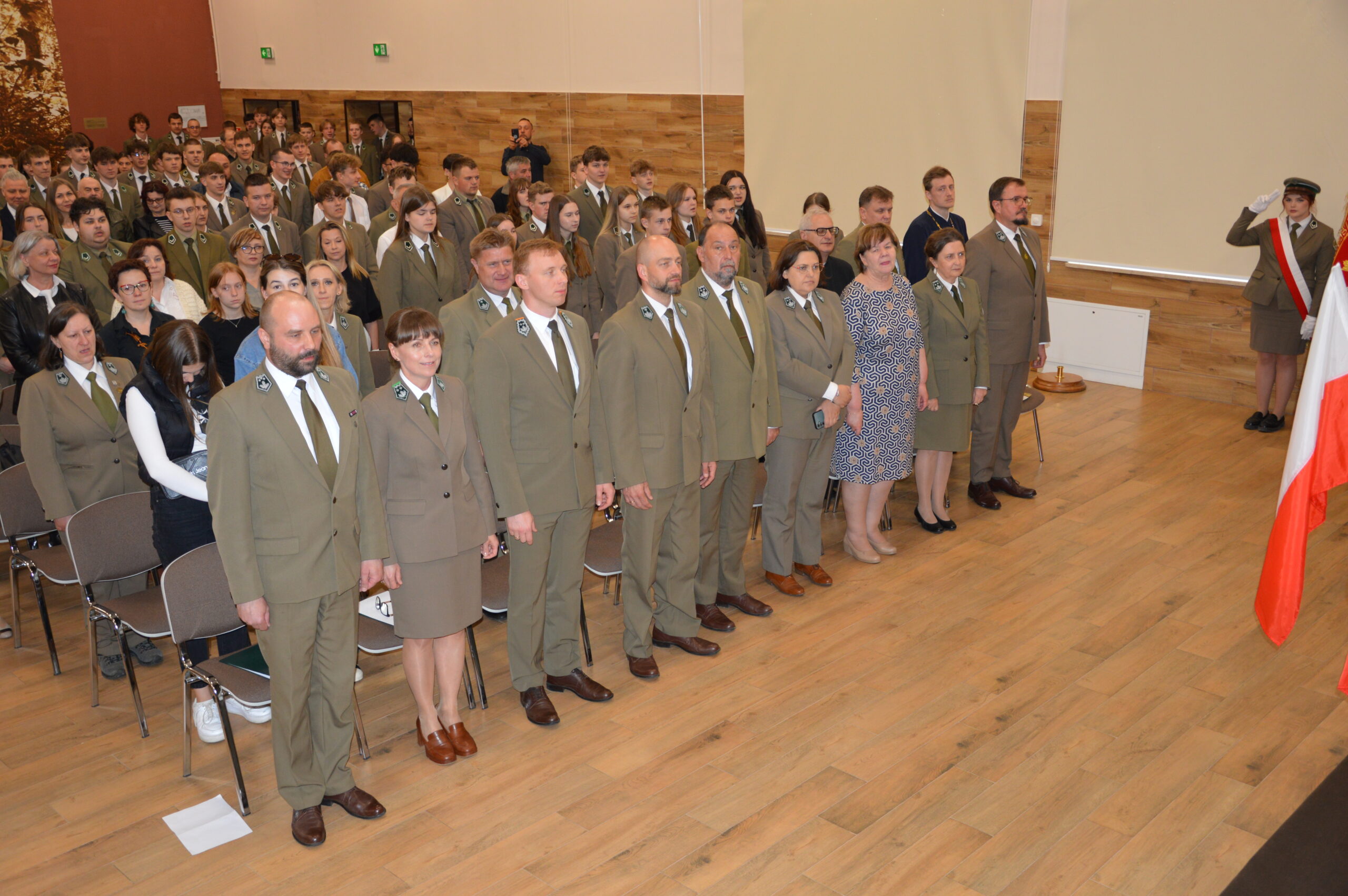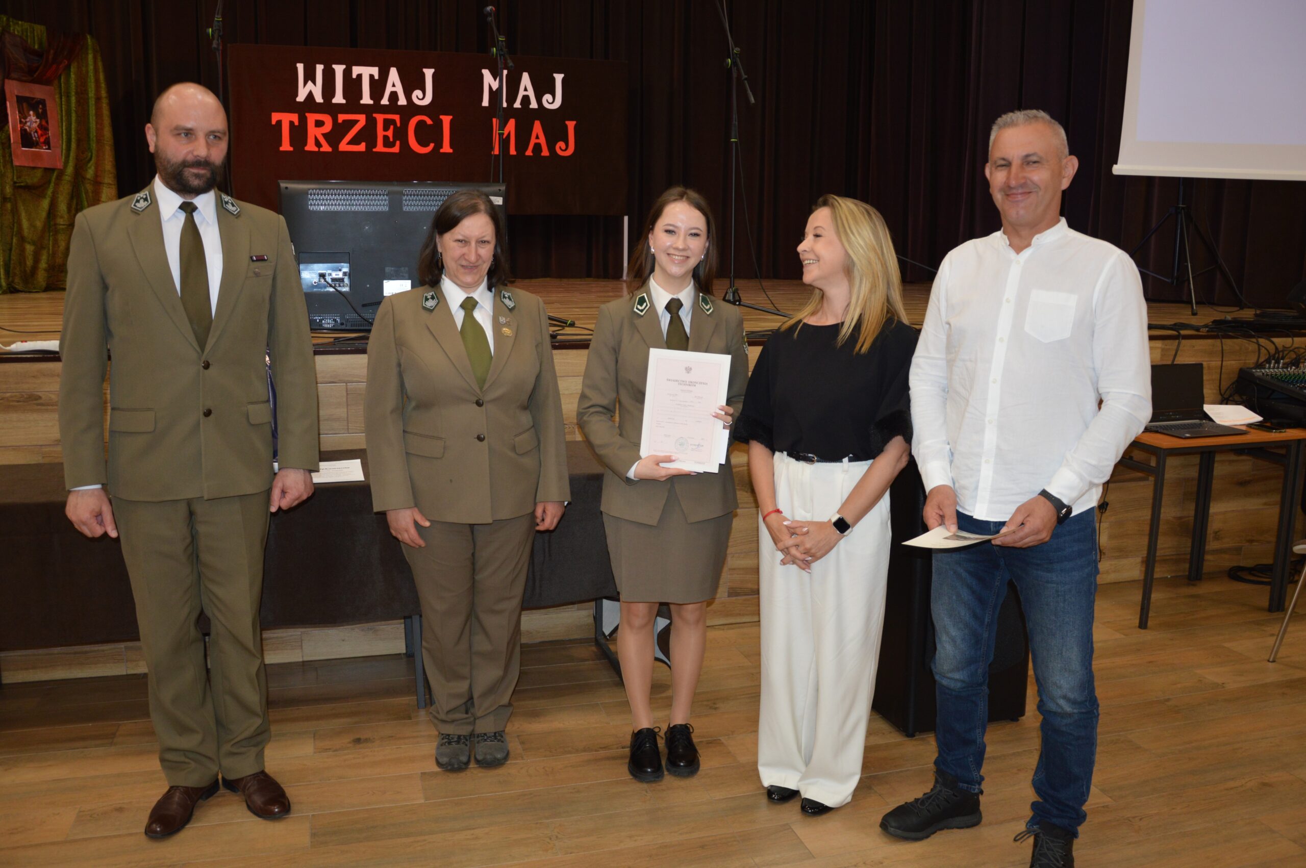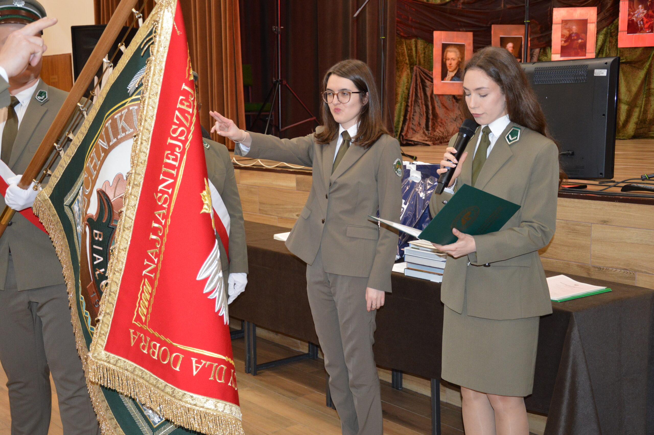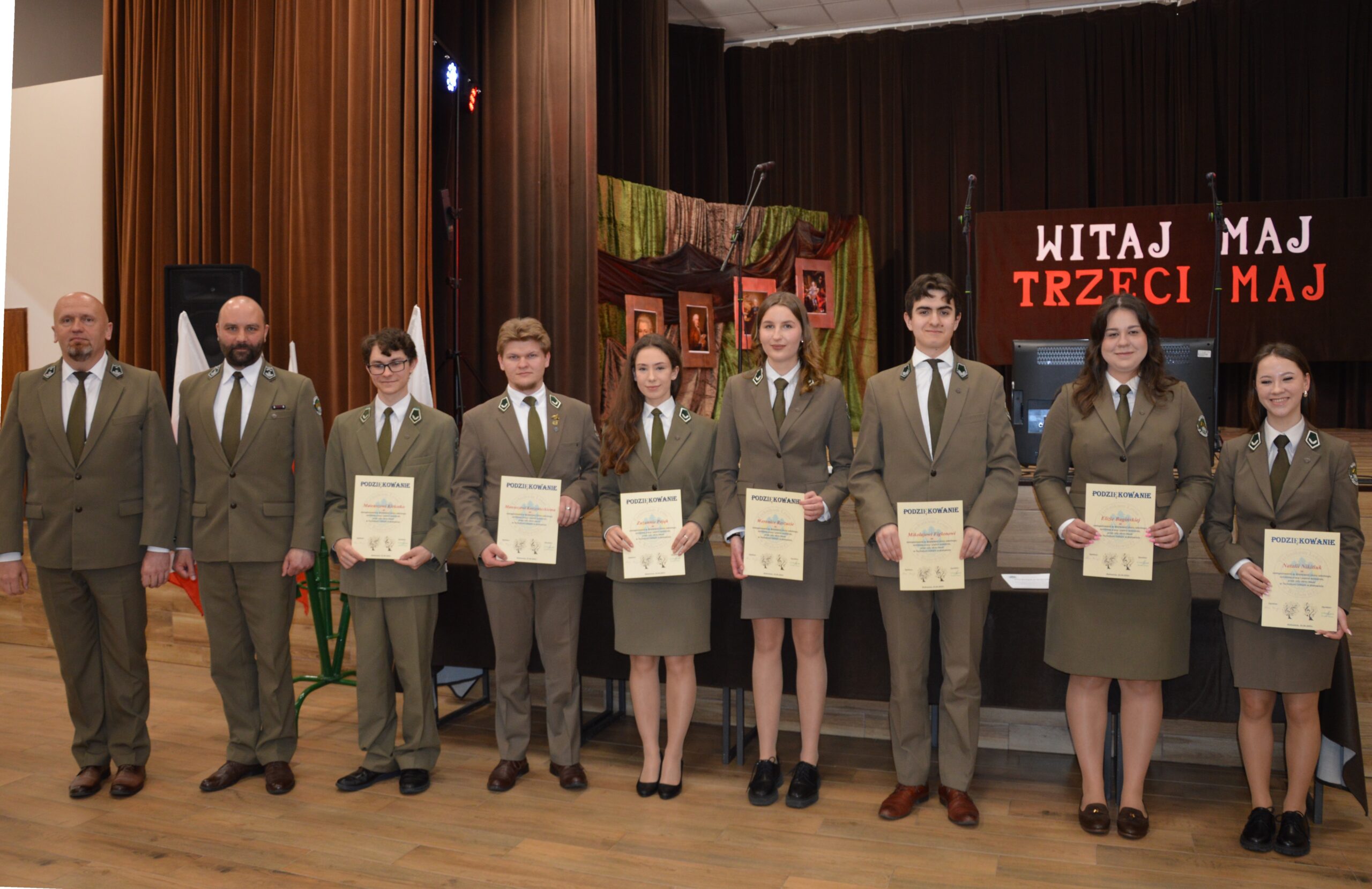W dniu 25.04.2025 w auli internatu odbyła się podwójna uroczystość szkolna. Pierwszą częścią był przygotowany przez klasę 3b, pod kierunkiem wychowawczyni Pani Joanny Romaniuk i chóru szkolnego prowadzonego przez Pana Adama Masajło, apel z okazji 234. rocznicy uchwalenia Konstytucji 3 Maja „Witaj Maj Trzeci Maj”. Drugą częścią była uroczystość ukończenia szkoły przez uczniów klas piątych. Po odśpiewaniu Marszu Leśników głos zabrał Dyrektor Szkoły Pan Mariusz Tokajuk, zaproszeni goście i wychowawczynie klas. Uroczystość swoją obecnością uświetnili wspaniali goście: Ks. Bogdan Popławski – Proboszcz Parafii Rzymskokatolickiej p.w. św. Teresy od Dzieciątka Jezus w Białowieży, Ks. Tymoteusz Nazdryn – Wikary Parafii Prawosławnej św. Mikołaja w Białowieży, Pan Dawid Iwaniuk – Z-ca dyrektora ds. ekonomicznych Regionalnej Dyrekcji Lasów Państwowych w Białymstoku, Pani Jowita Morawska – p.o. Nadleśniczego Nadleśnictwa Białowieża, Pan Marek Mackiewicz – Zastępca Nadleśniczego Nadleśnictwa Hajnówka, Pan Krzysztof Grzywiński – Inżynier Nadzoru Nadleśnictwa Browsk, Pan Zbigniew Płoński – Przewodniczący Rady Regionu Białostockiego Związku Leśników Polskich w Rzeczypospolitej Polskiej, Pani Hanna Schmidt – Starszy specjalista ds. edukacji w Białowieskim Parku Narodowym, Pani Anna Kulbacka – emerytowana Dyrektor Szkoły oraz Rodzice. Były wzruszenia, wspomnienia, podsumowania i życzenia na dalszą drogę życia. Kolejnym punktem uroczystości było ślubowanie absolwenckie. Na sztandar szkoły ślubowali absolwenci z najwyższą średnią na świadectwie ukończenia szkoły: Michał Rutkowski, Marcelina Olejnicka i Zuzanna Pająk. Po ślubowaniu przyszedł czas na wręczenie świadectw ukończenia szkoły, listów pochwalnych i podziękowań. Na zakończenie odbyło się wystąpienie przedstawicieli absolwentów i Samorządu Szkolnego. Ostatnim punktem wydarzenia był pożegnalny obiad. Wszystkie wydziały szkoły (dziennie, zaocznie i eksternistycznie) ukończyło 6132 absolwentów, w tym dziennie Technikum Leśne 3067 absolwentów.
