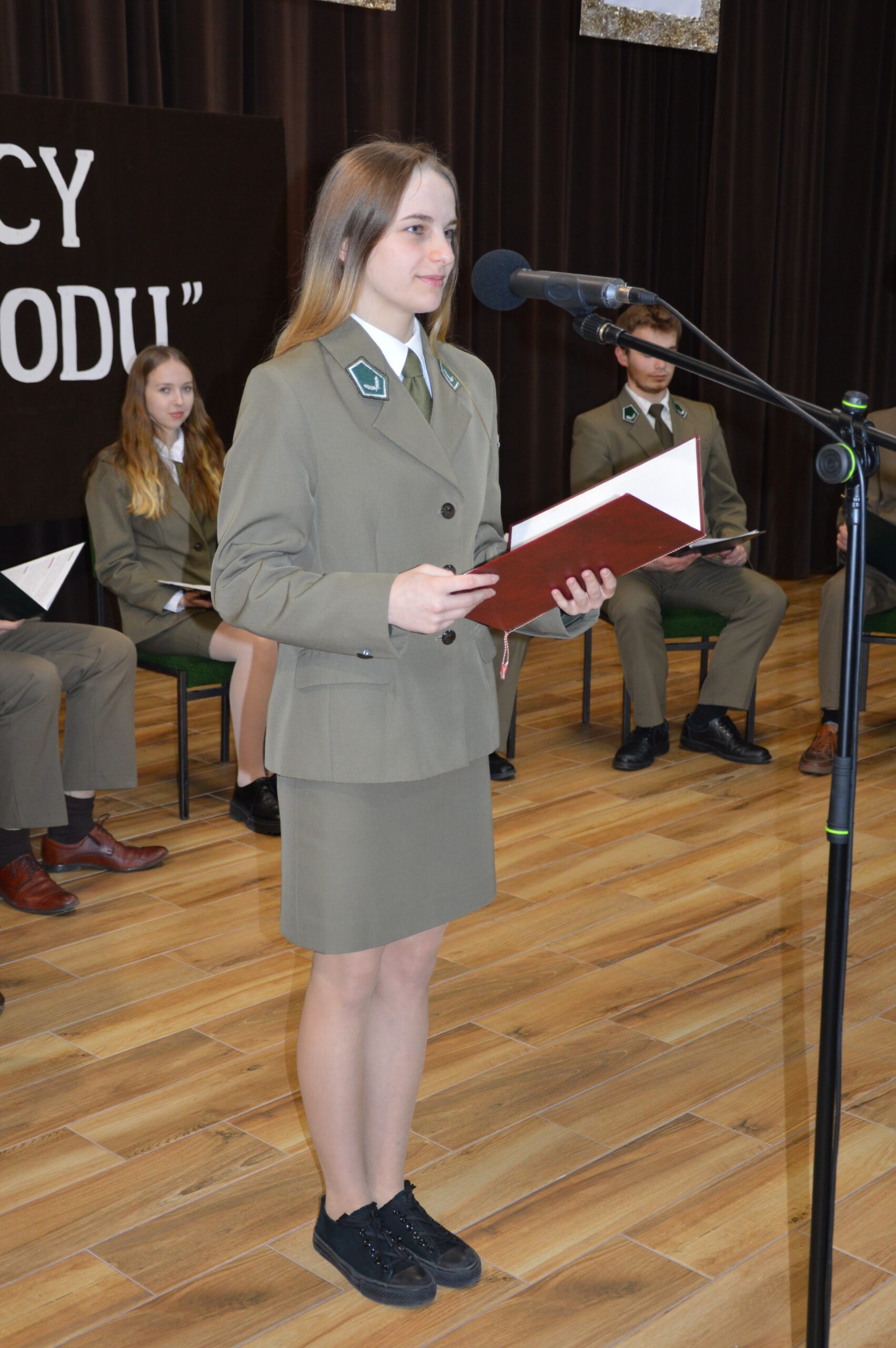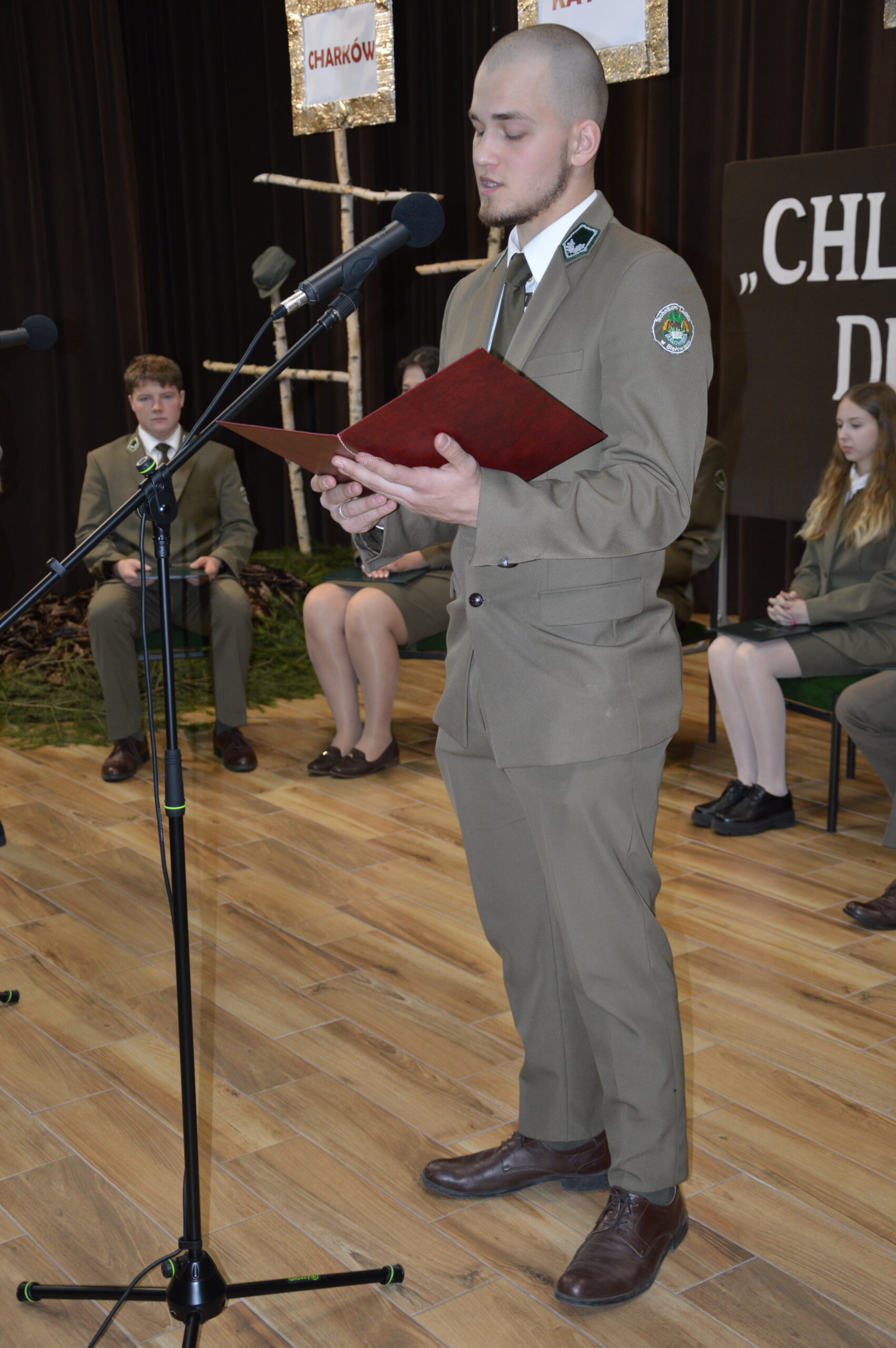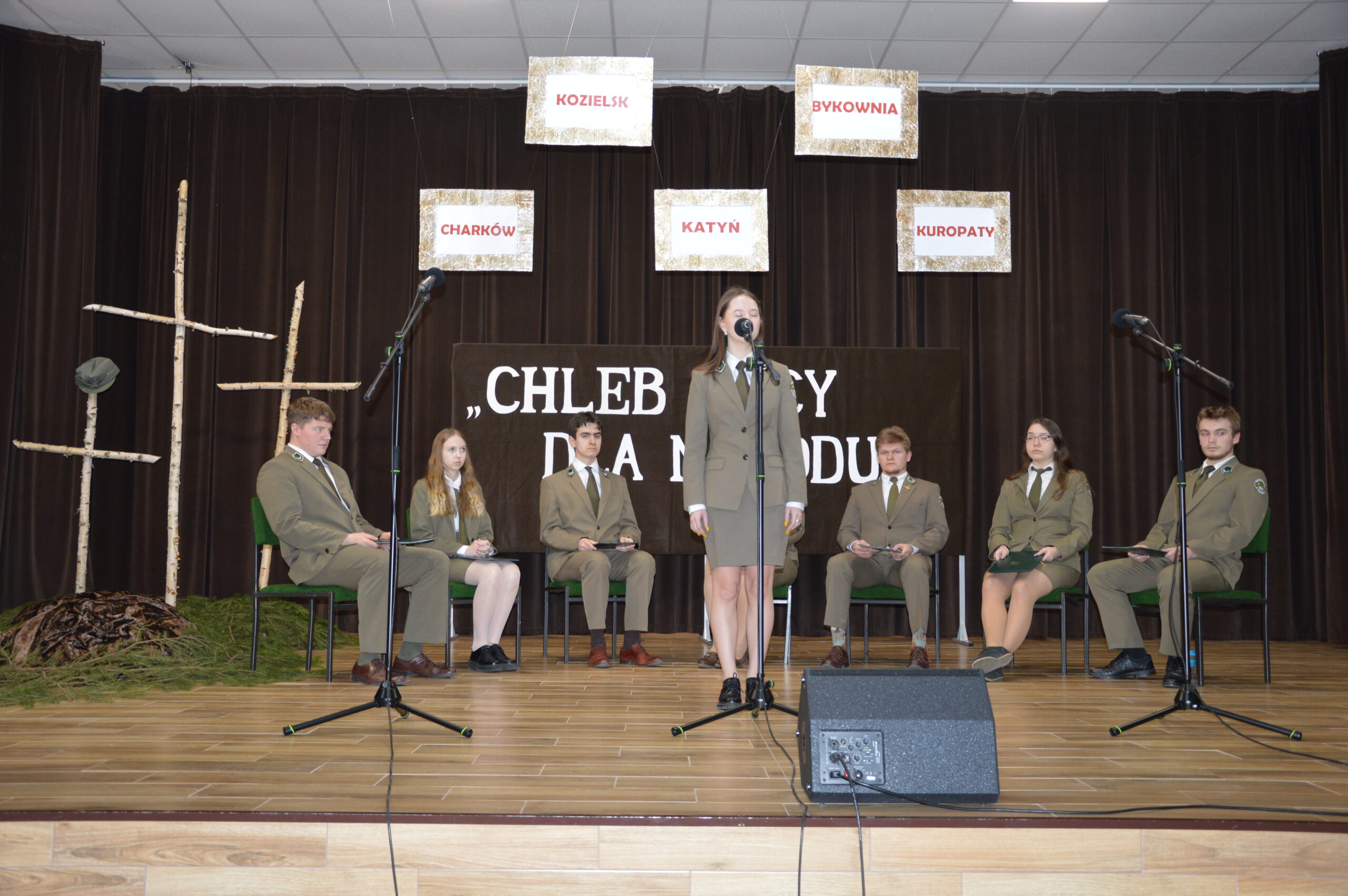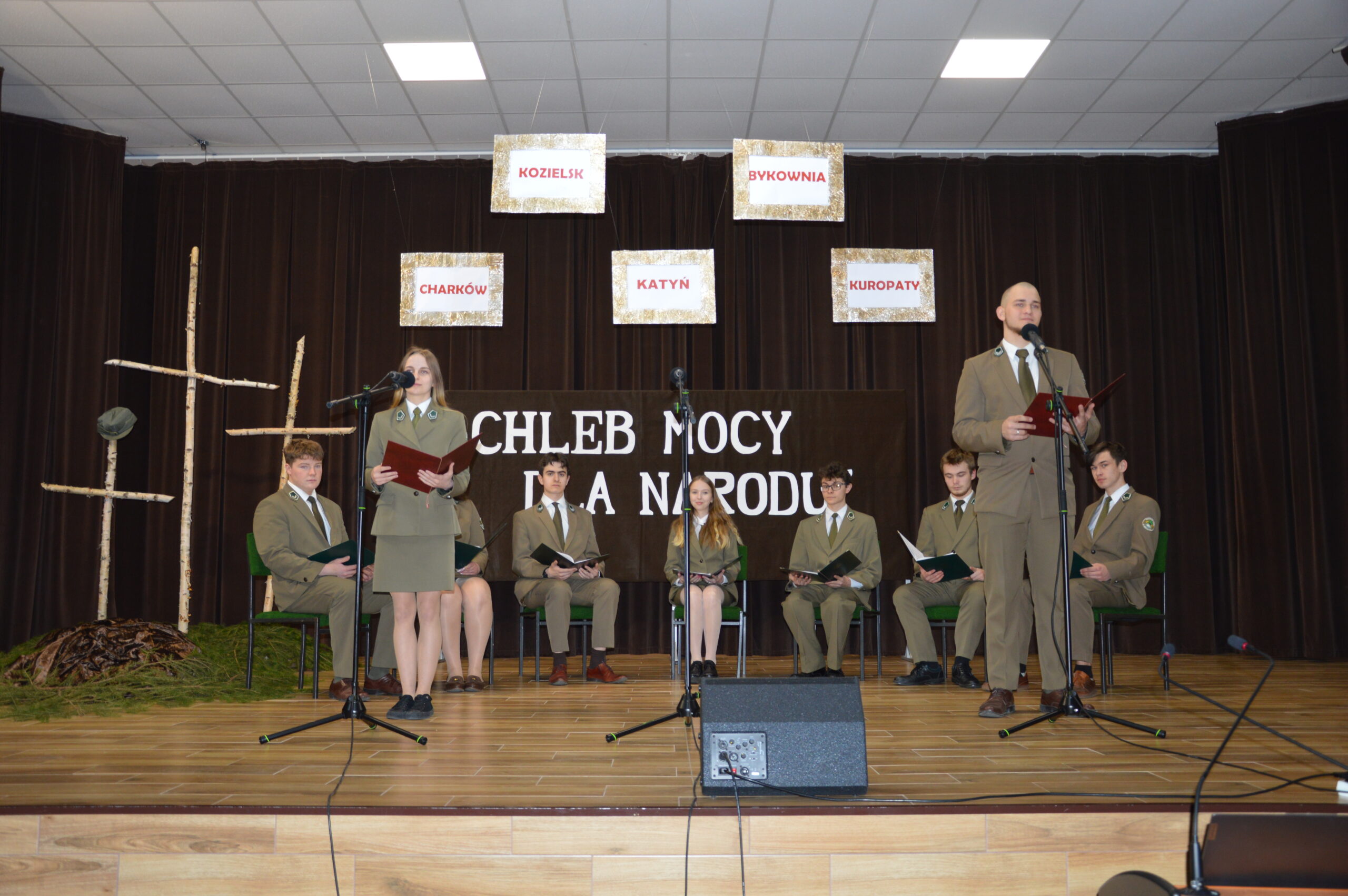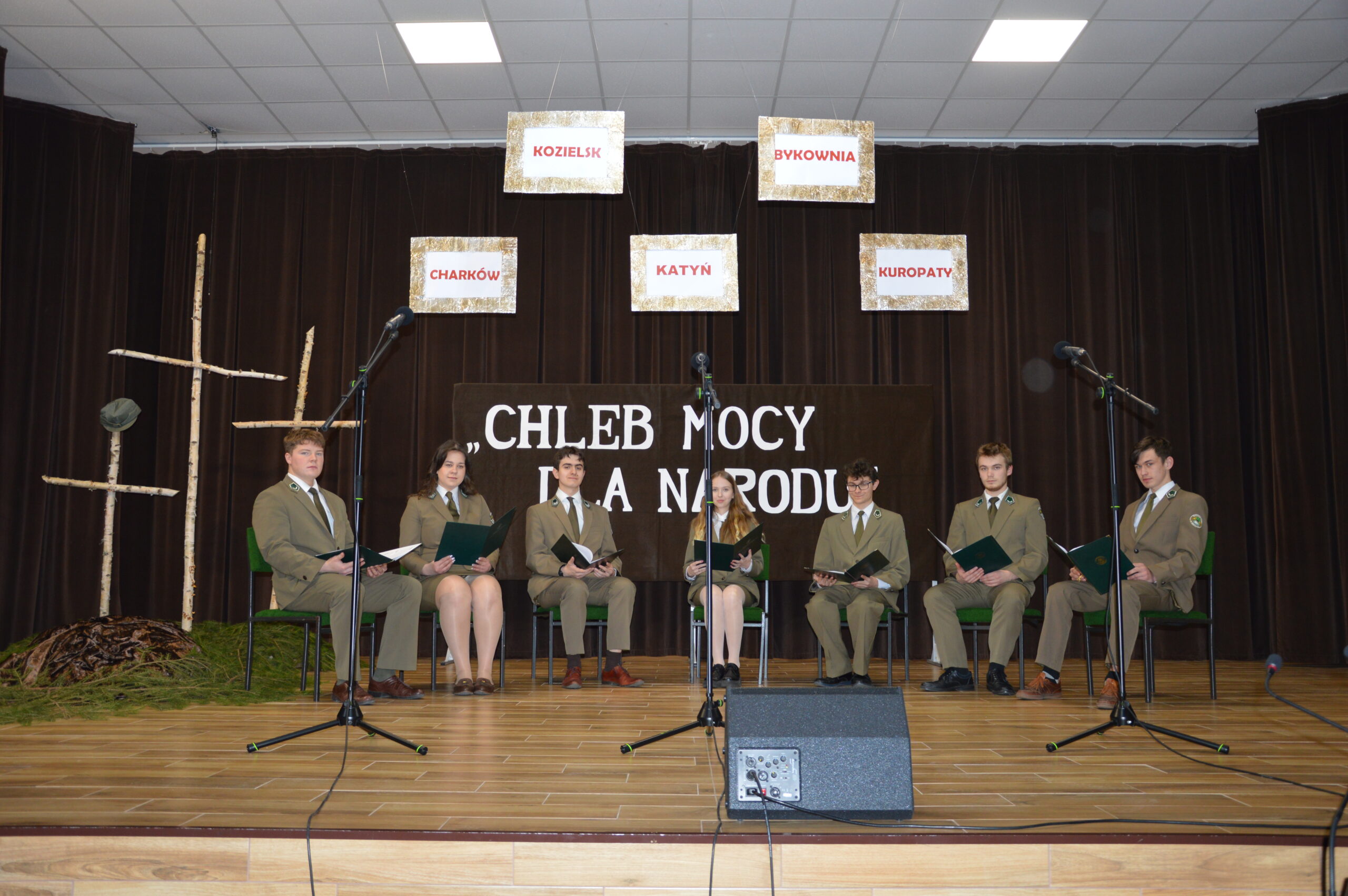 Uczniowie naszej szkoły aktywnie zaangażowali się w upamiętnienie tego wydarzenia. Po uroczystości odsłonięcia pomnika w auli internatu Technikum Leśnego w Białowieży uczniowie klas maturalnych zaprezentowali program artystyczny zatytułowany „Chleb mocy dla narodu”. Krótki rys historyczny wzbogacony prezentacją multimedialną przedstawili Angelika Szpakowicz i Hubert Grzywiński z klasy 5A. Biogramy zamordowanych leśników i policjantów odczytali: Mateusz Korzeniecki, Weronika Reszuta i Michał Rutkowski z klasy 5A oraz Zofia Aleksiejuk, Eliza Bagińska, Mikołaj Figlon, Mikołaj Jaganow i Julia Radziwoniuk z klasy 5B. Pięknymi, przejmującymi deklamacjami wierszy uraczyli zebranych Urszula Bagińska, Mateusz Klekotko oraz Zuzanna Pająk z klasy 5A. Akademię zakończyła Natalia Nikitiuk z klasy 5B wzruszającym wykonaniem piosenki „O Jasieńku”.