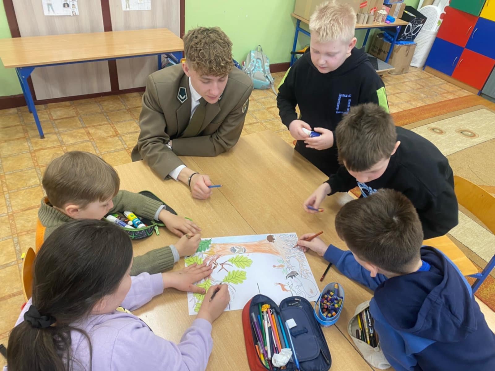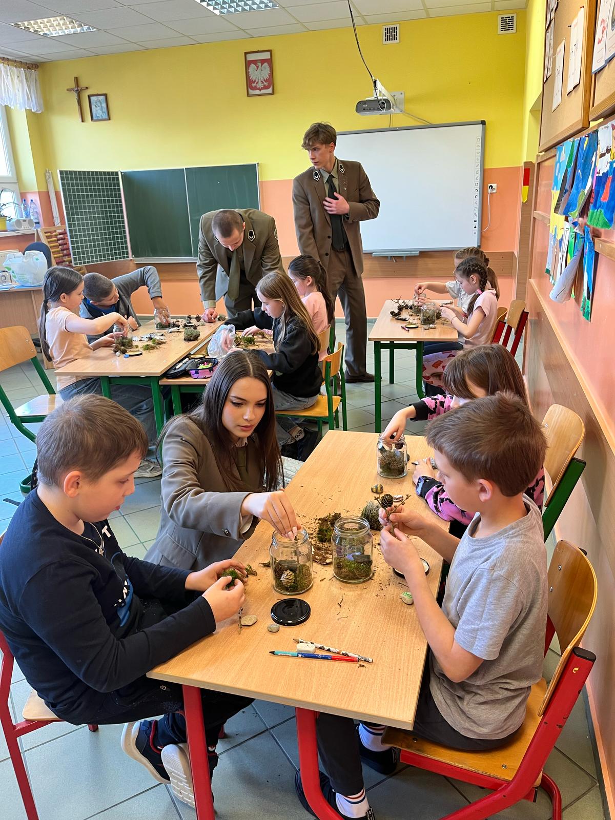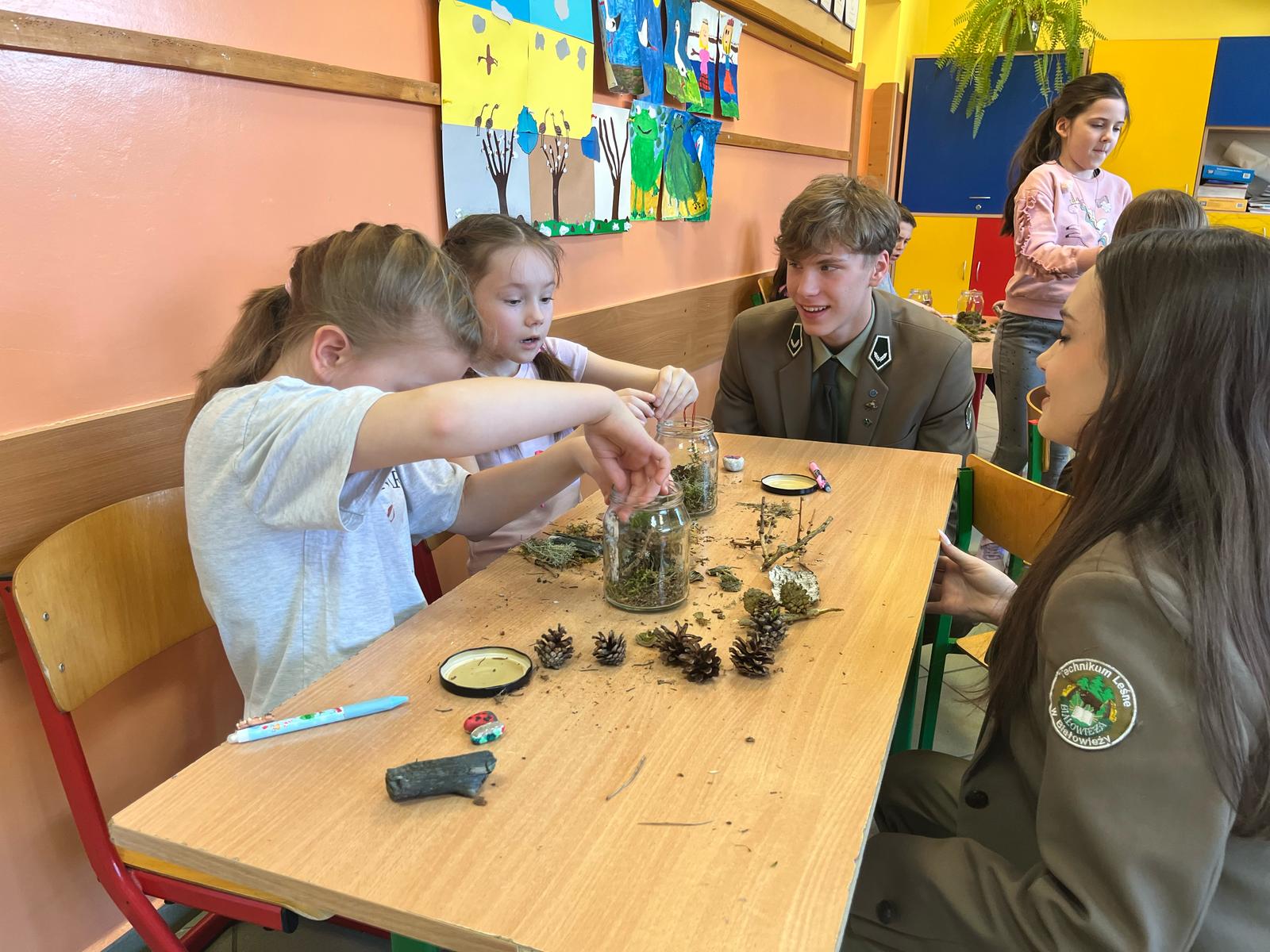 Zajęcia dotyczyły tematyki leśnej, zasad przetwarzania surowców oraz kształtowania postaw proekologicznych. Nasi uczniowie w przystępny i angażujący sposób przekazywali młodszym kolegom wiedzę na temat znaczenia i budowy lasów, ochrony środowiska naturalnego oraz właściwego gospodarowania odpadami. Celem warsztatów było nie tylko zwiększenie świadomości ekologicznej wśród najmłodszych, ale również doskonalenie przez naszych uczniów kompetencji komunikacyjnych, organizacyjnych, współpracy z grupą.