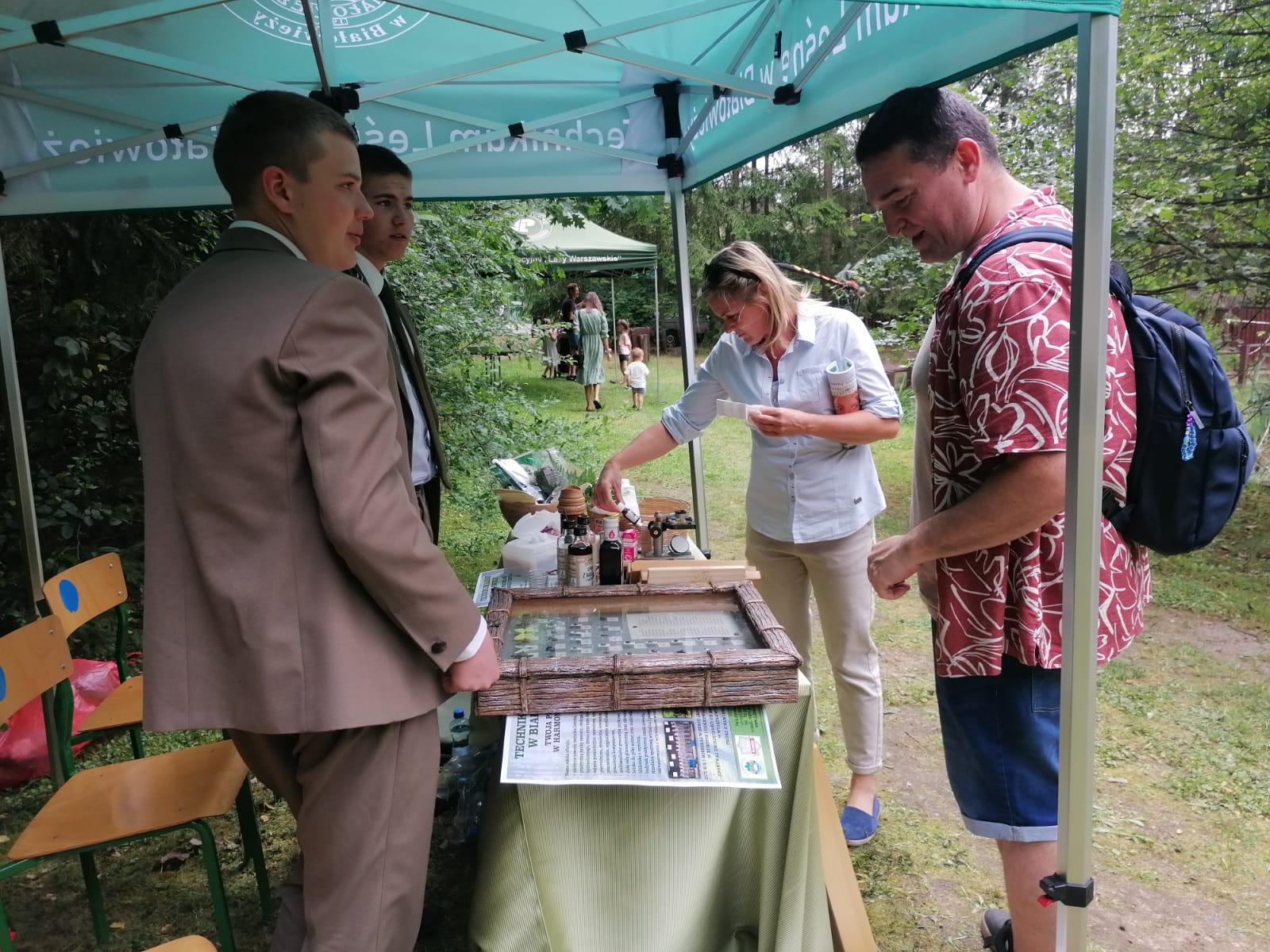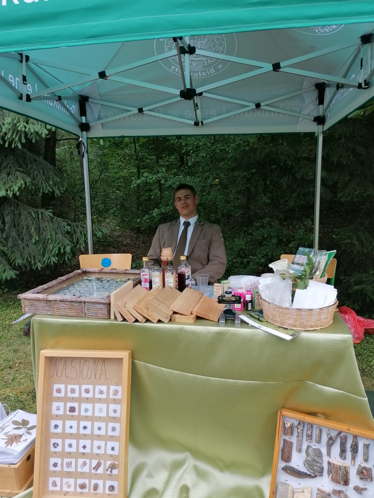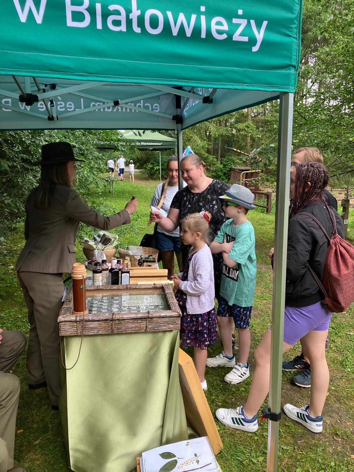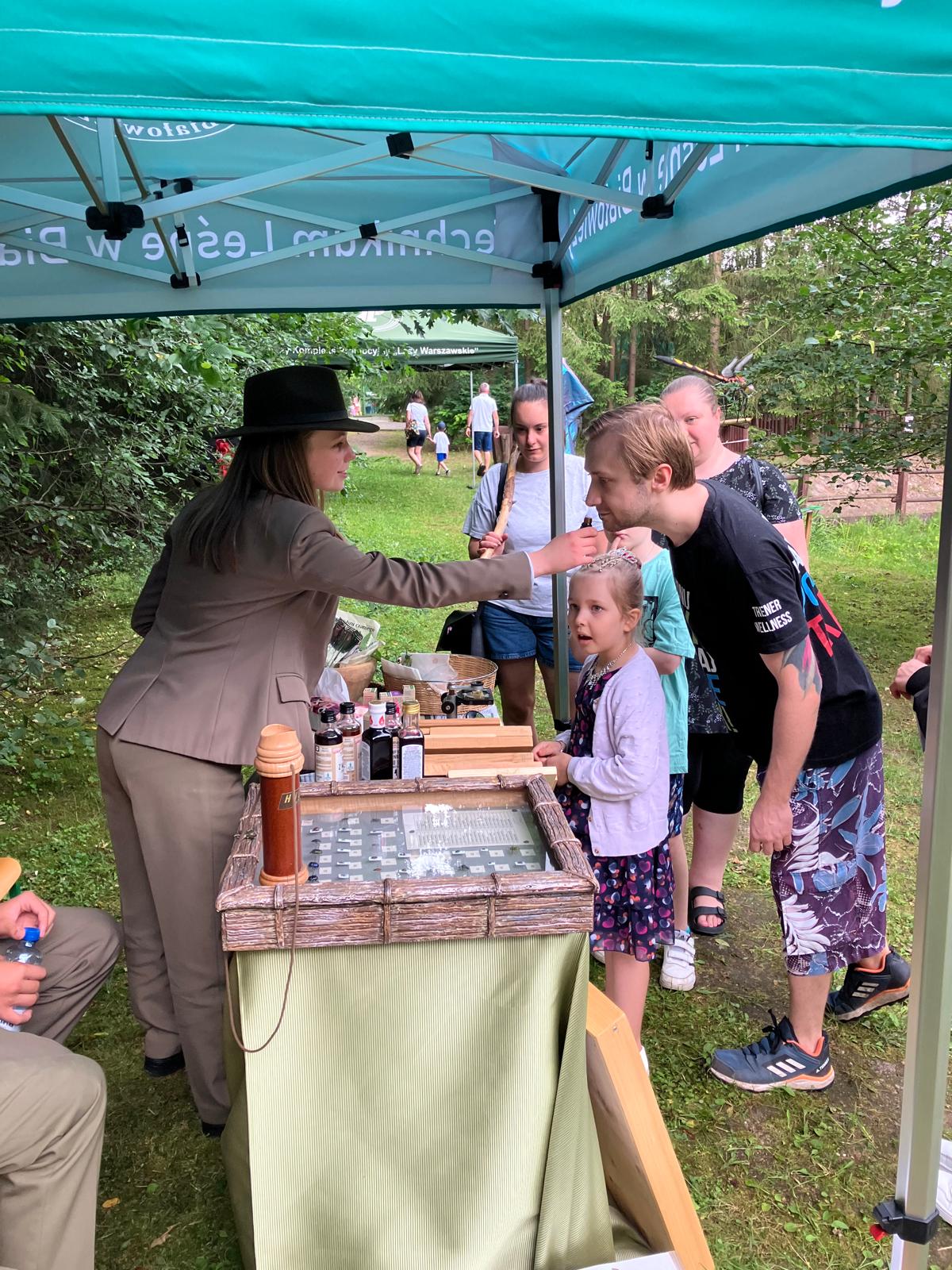 Na naszym stoisku „lasu” można było spróbować. Oferowaliśmy sporo leśnych przekąsek, m.in. „leśne musli”, syropy i zioła. Las można było „powąchać” – mieliśmy olejki eteryczne o różnych leśnych zapachach. Na stoisku szkolnym można było poznać poszczególne gatunki drzew, a pod mikroskopem obejrzeć ich budowę. Pokazaliśmy „leśne szkodniki” – grzyby i owady. Odbyliśmy wiele ciekawych rozmów.