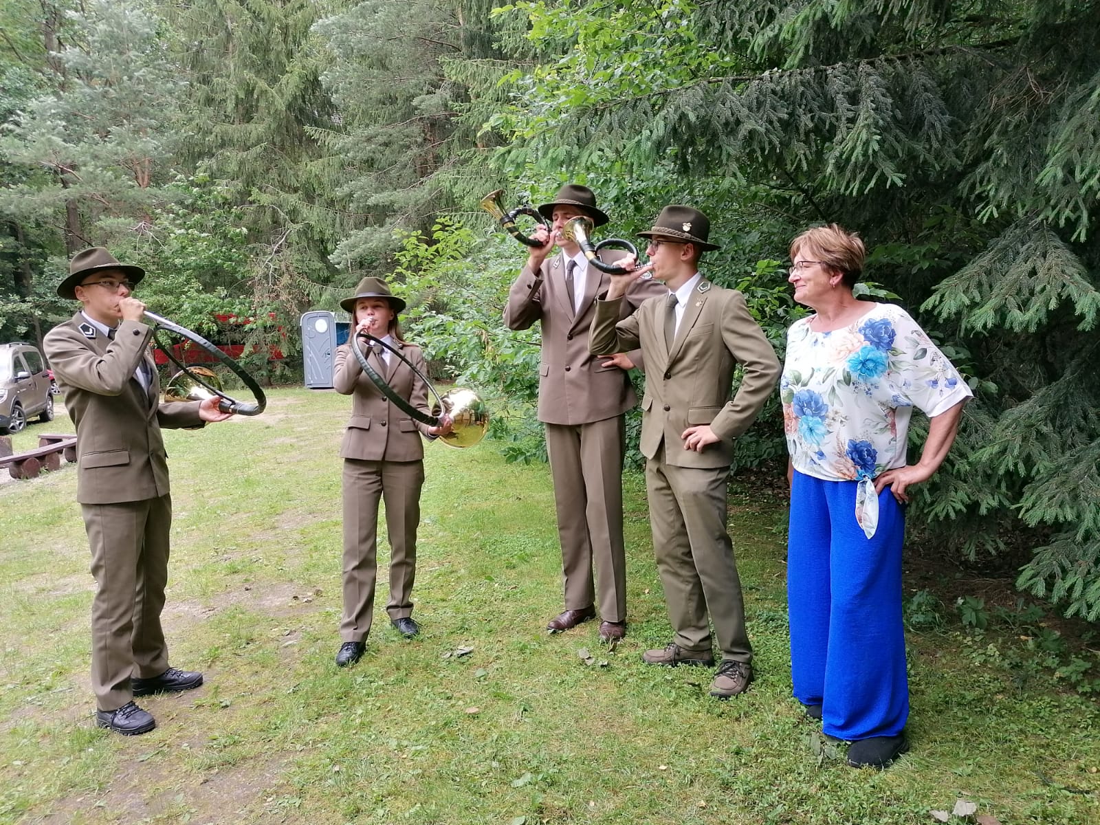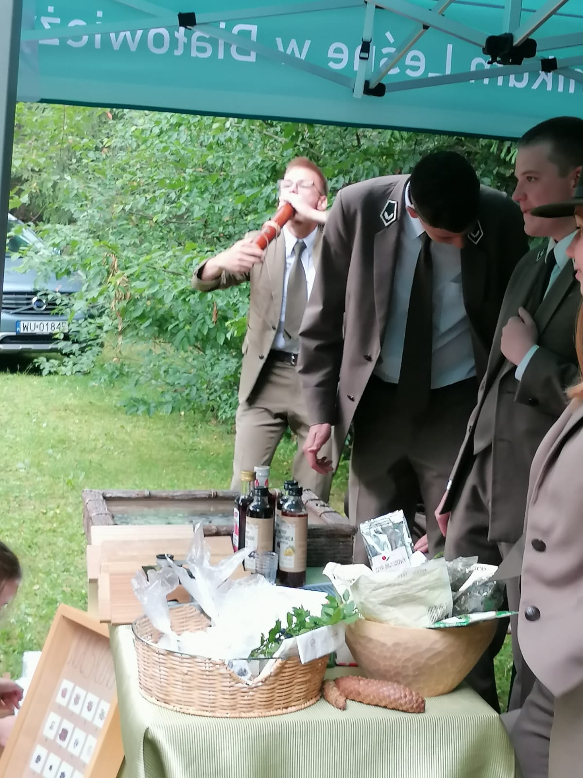 Niewątpliwą atrakcją byli nasi sygnaliści. Młodzież zaprezentowała sporo sygnałów myśliwskich. Dźwięk sygnałówki przyciągał do naszego stoiska sporą grupkę zwiedzających w różnym wieku.