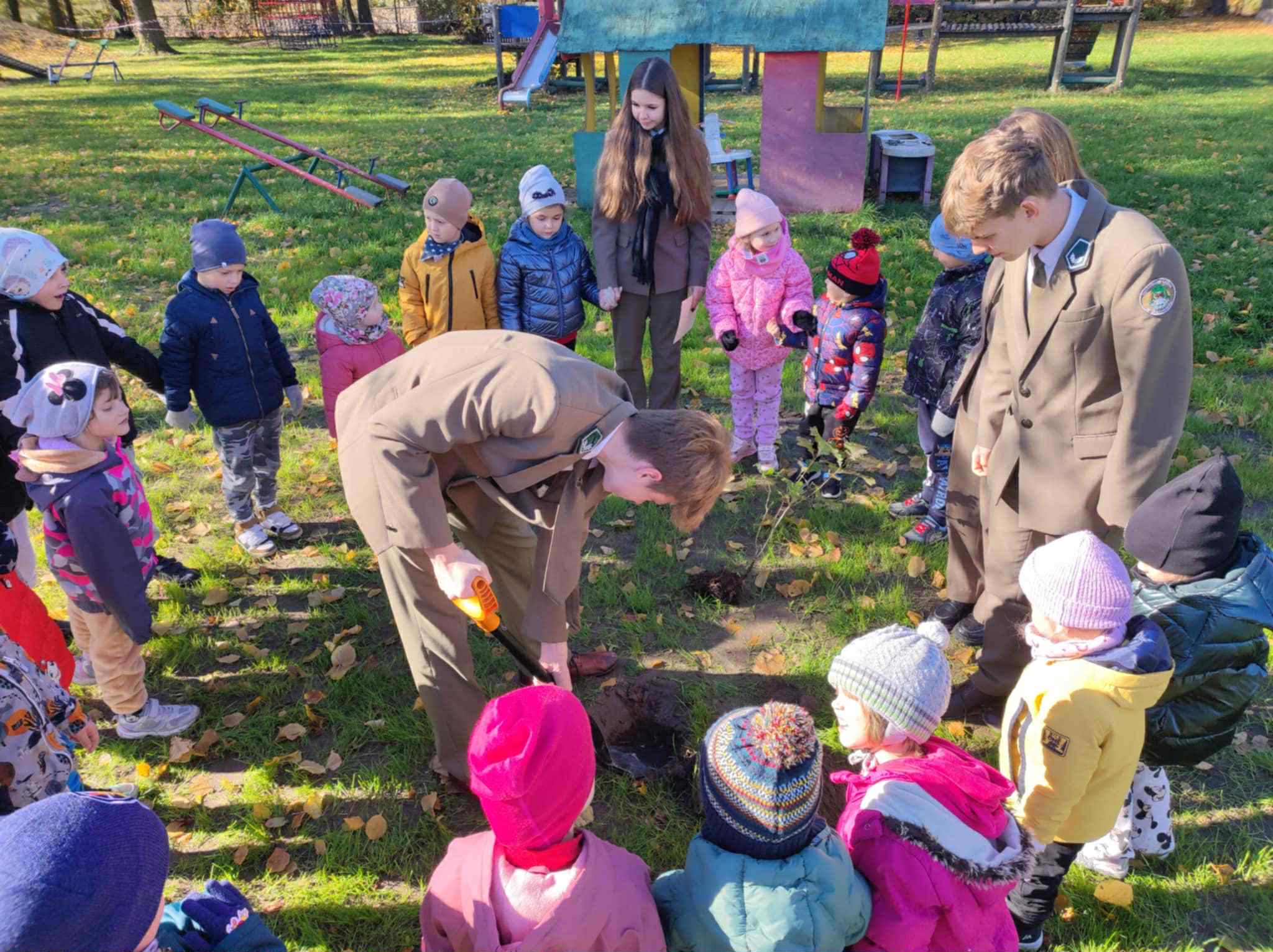W poniedziałek 20 października w białowieskim przedszkolu odbyły się obchody Dnia Drzewa zorganizowane przez Samorząd Szkolny naszego technikum. Celem wydarzenia było przybliżenie dzieciom znaczenia drzew dla środowiska oraz kształtowanie postaw proekologicznych od najmłodszych lat.