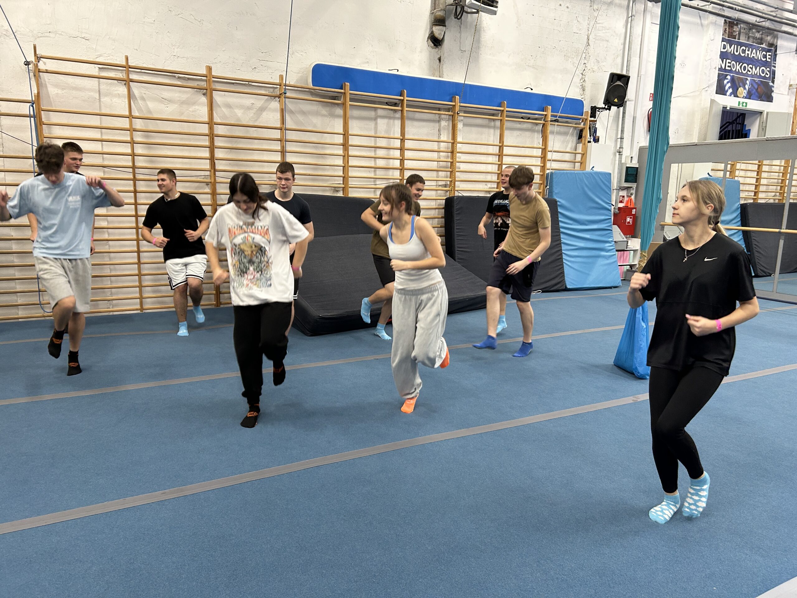 Kolejnym etapem wycieczki była wizyta w parku trampolin „Strefa Wysokich Lotów”. Po poważnej i refleksyjnej części dnia przyszedł czas na zabawę i ruch. Skakanie, tory przeszkód i różnorodne atrakcje dostarczyły uczniom mnóstwo radości oraz pozytywnej energii.