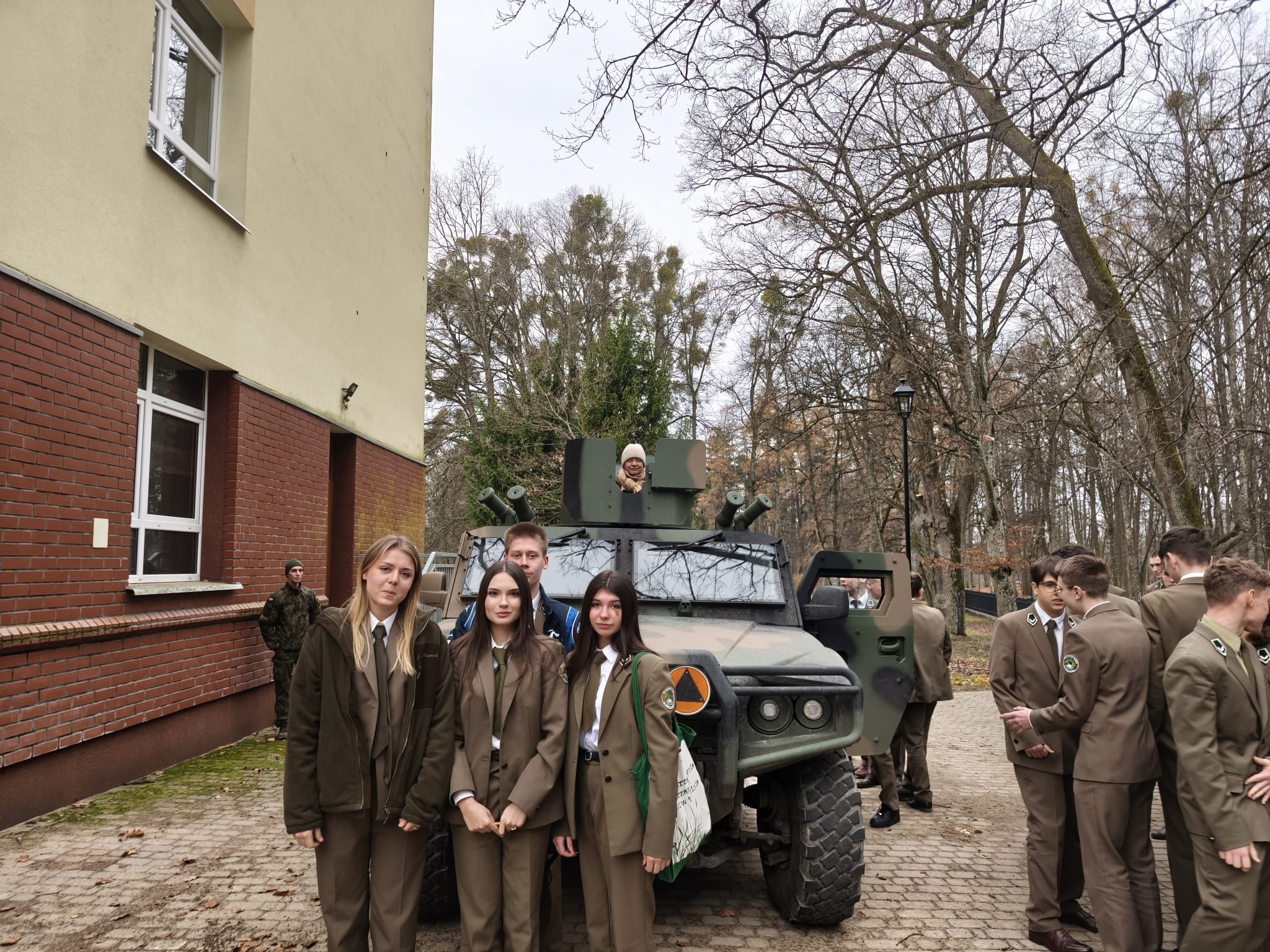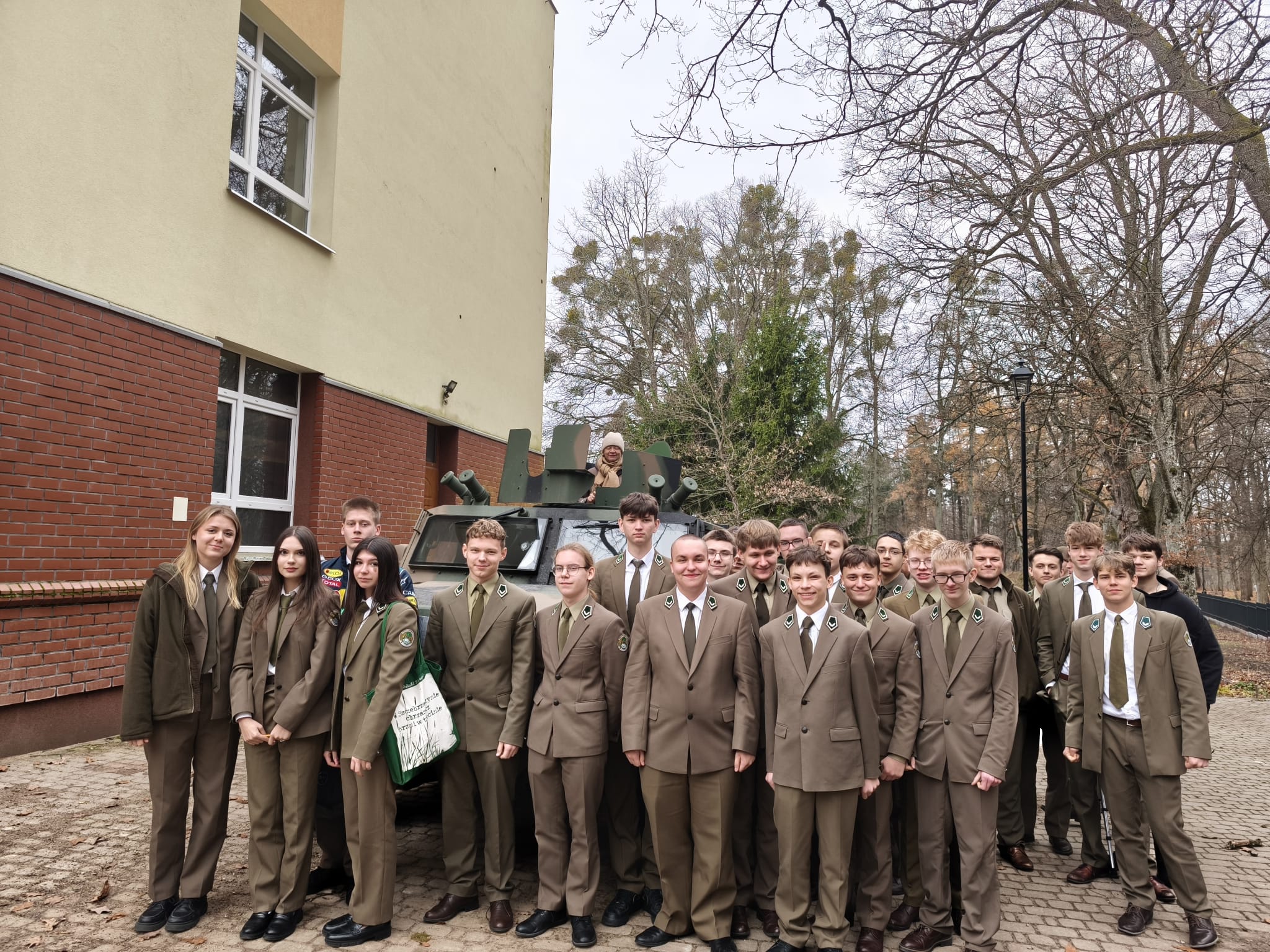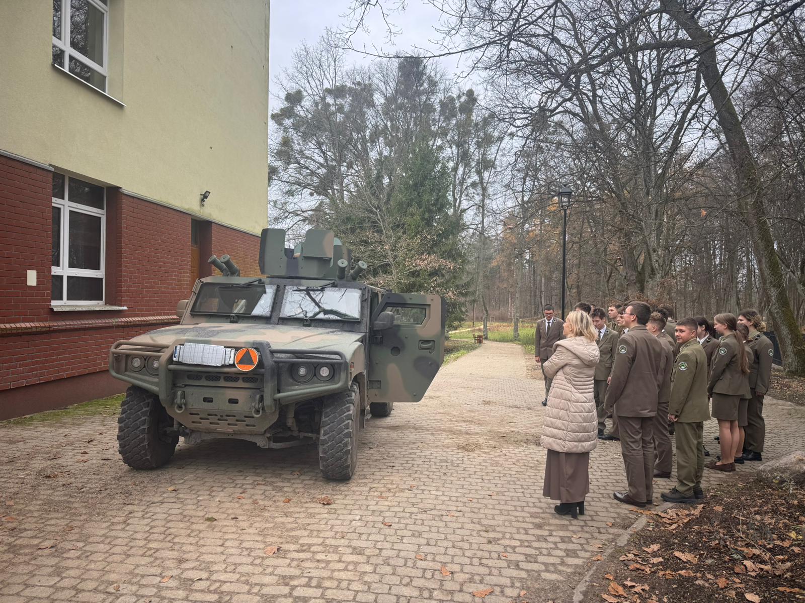 W minioną środę część składu osobowego kompanii stacjonującej w Białowieży wraz z oficerami, w ramach „zabezpieczenia czasu wolnego”, zapoznała się z profilem kształceni oraz bazą dydaktyczną naszej szkoły. Spotkanie odbyło się z inicjatywy naszego absolwenta ks. kpt., dr teol., Kapelana WZZ Bezpieczne Podlasie – Pawła Saucia. Atrakcję stanowił również lekki pojazd rozpoznawczy „Legwan” będący na wyposażeniu zgrupowania.