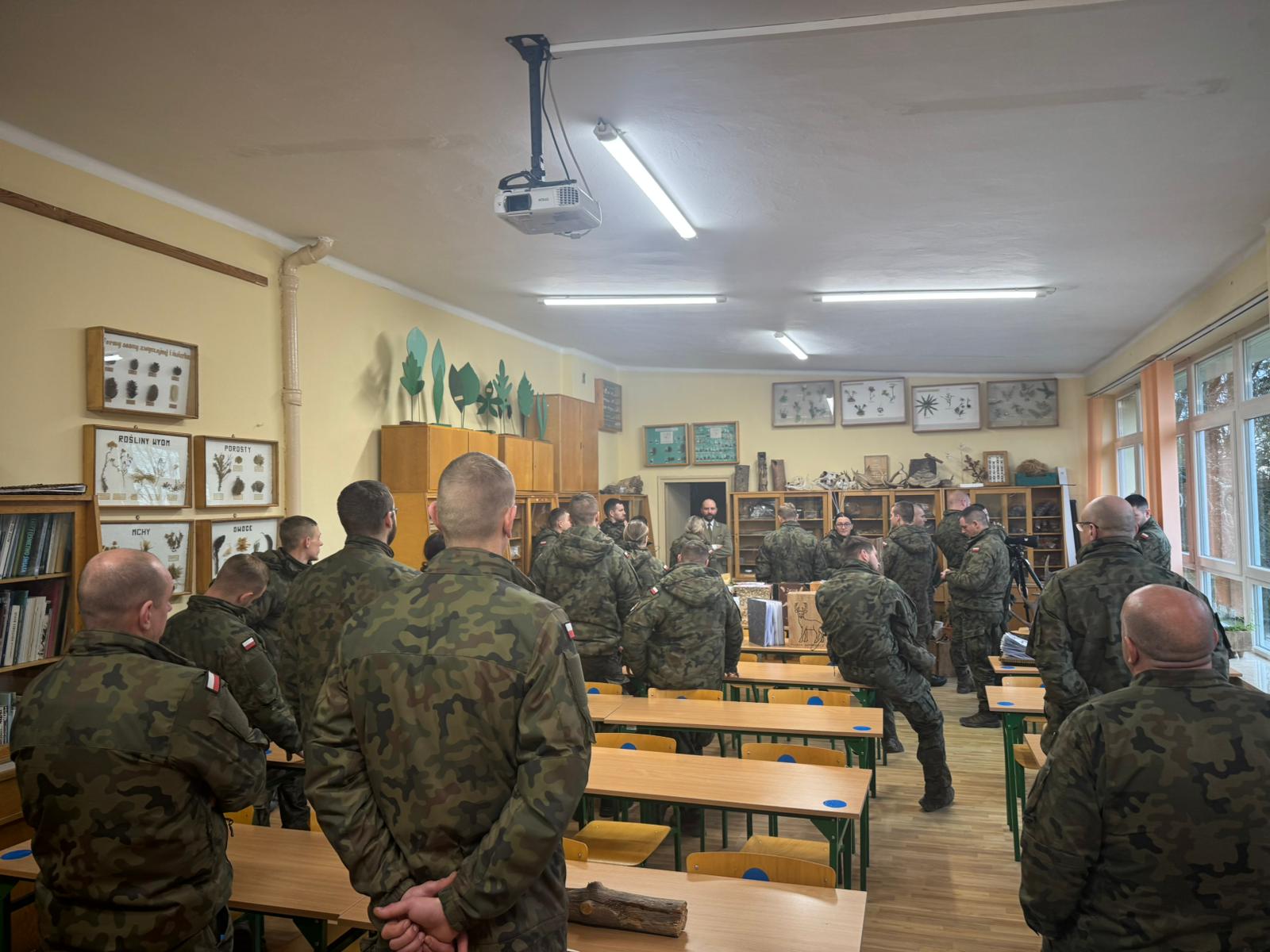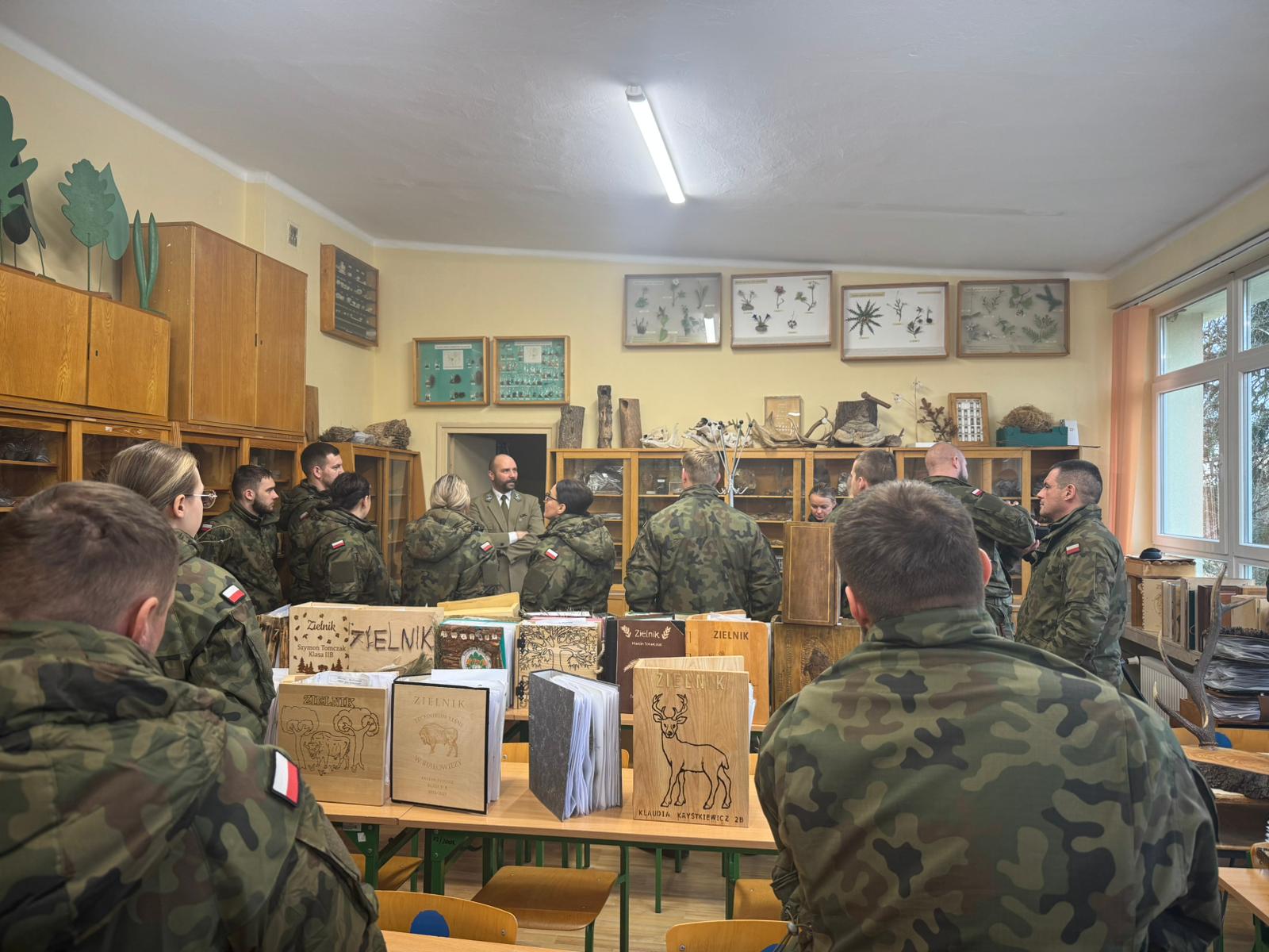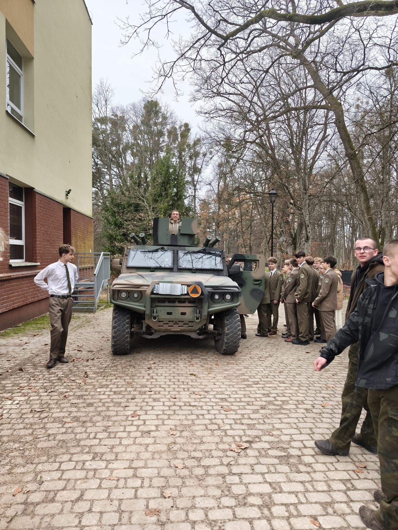 W minioną środę część składu osobowego kompanii stacjonującej w Białowieży wraz z oficerami, w ramach „zabezpieczenia czasu wolnego”, zapoznała się z profilem kształceni oraz bazą dydaktyczną naszej szkoły. Spotkanie odbyło się z inicjatywy naszego absolwenta ks. kpt., dr teol., Kapelana WZZ Bezpieczne Podlasie – Pawła Saucia. Atrakcję stanowił również lekki pojazd rozpoznawczy „Legwan” będący na wyposażeniu zgrupowania.