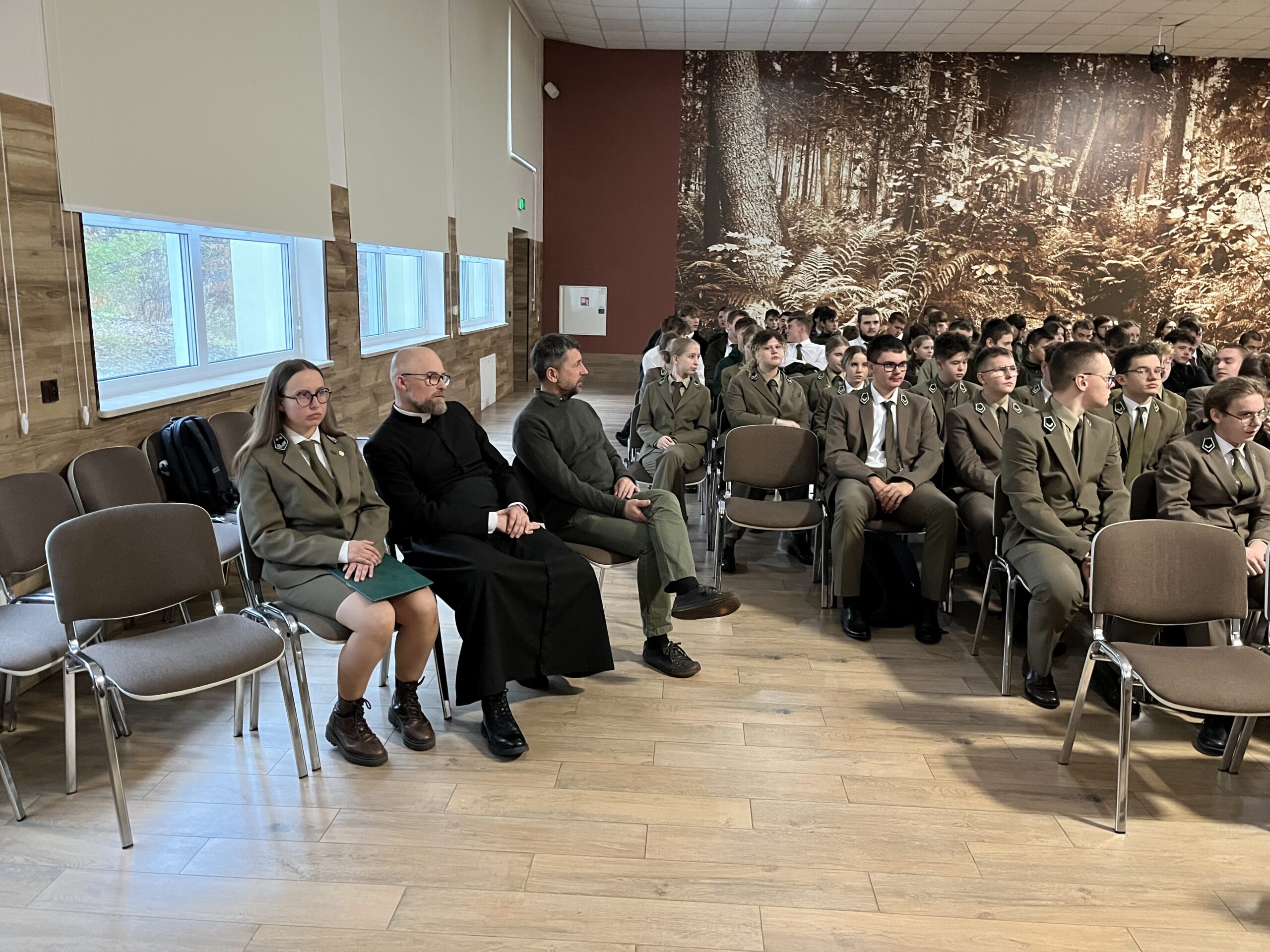 Prelegenci opowiedzieli o swoich pierwszych krokach w dorosłym życiu, o wyborach, które ich ukształtowały, i o tym, że ścieżki zawodowe często okazują się pełne zakrętów, zmian i zaskoczeń. Uczniowie mogli dowiedzieć się, jak wygląda codzienność edukatora leśnego, jak łączyć pasję artystyczną z pracą w naturze, a także jak decyzja o całkowitej zmianie życiowego kierunku — jak w przypadku ks. Grzegorza — może prowadzić do spełnienia i poczucia sensu.