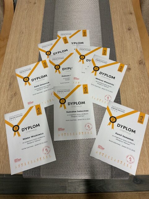 Radosław Sobociński zajął I miejsce w województwie, Wiktor Wnukowicz II, a Kamil Semeniuk miejsce V. Cała trójka otrzymała tytuł Laureata. Jako szkoła zajęliśmy wysokie 20 miejsce w kraju. W turnieju w kategorii Hetman udział wzięło 136 szkół ponadpodstawowych.