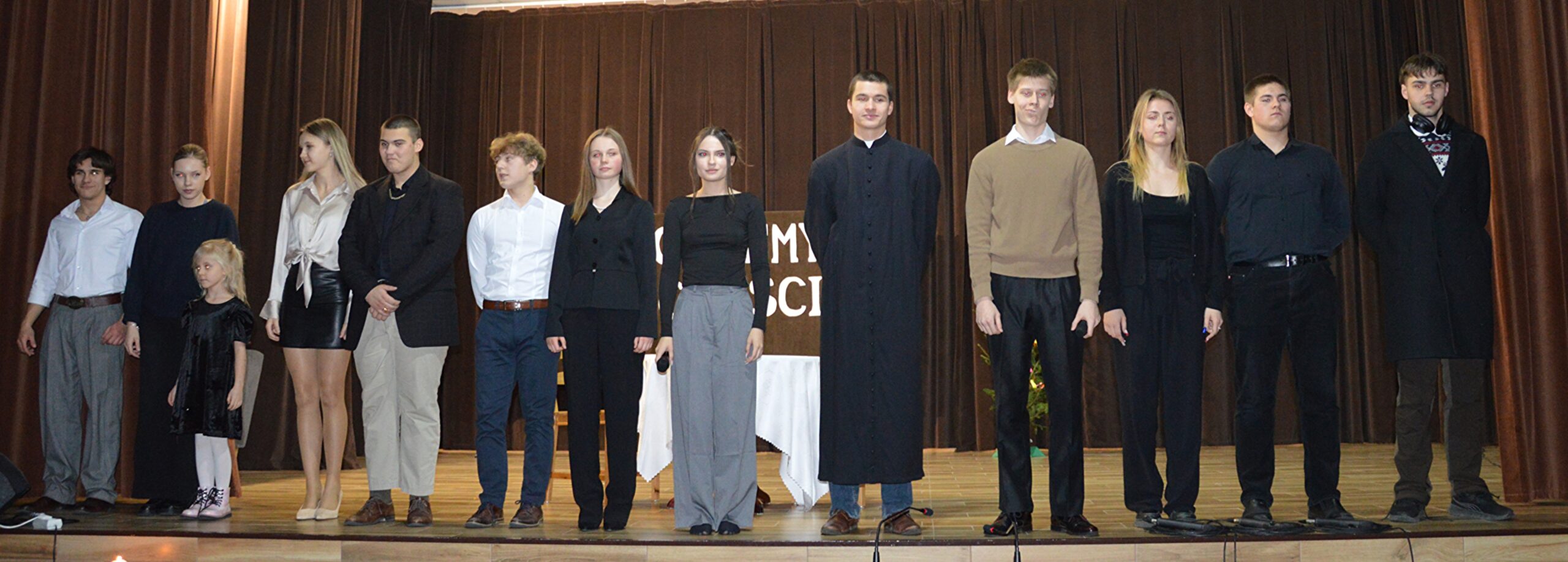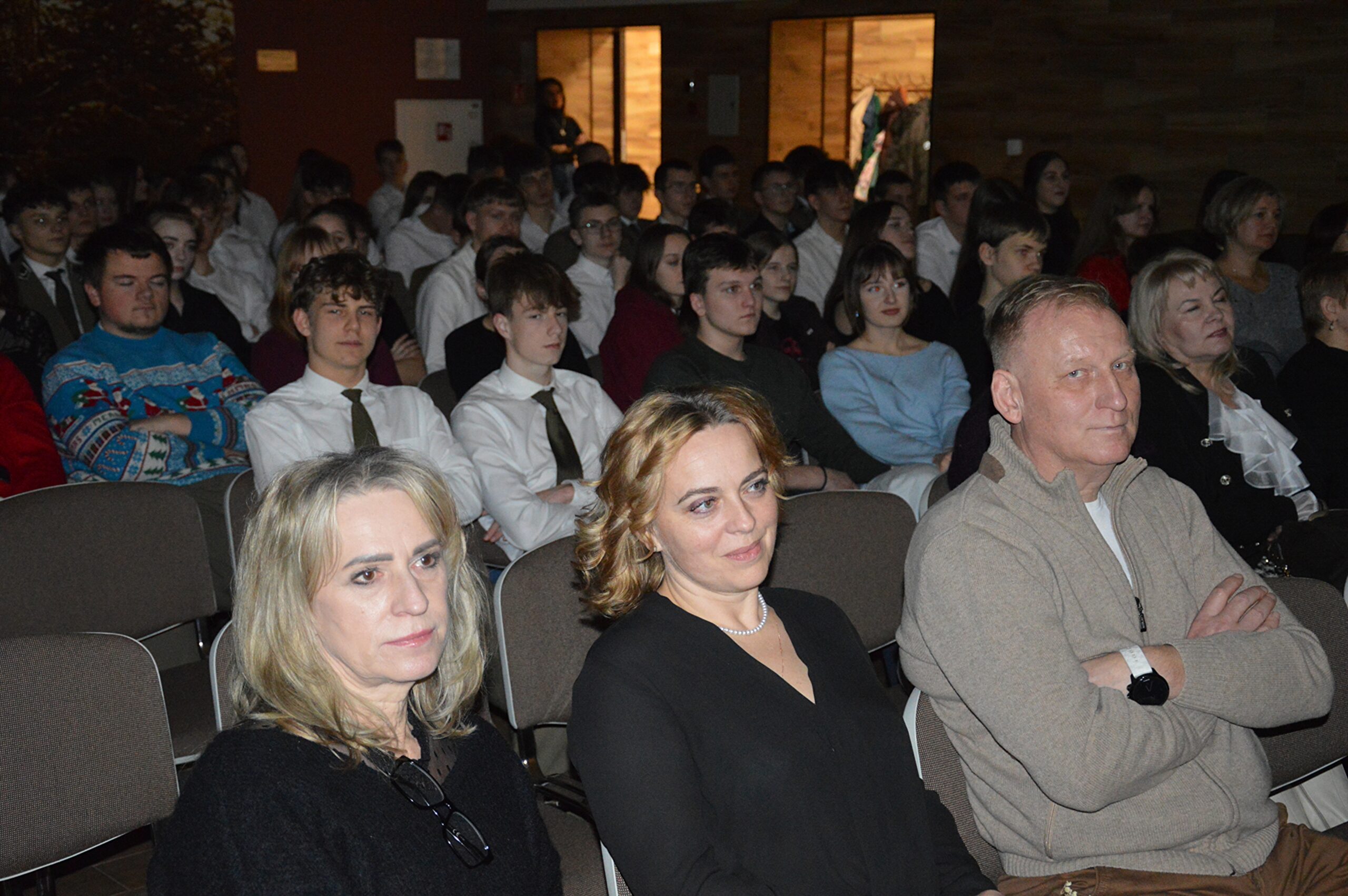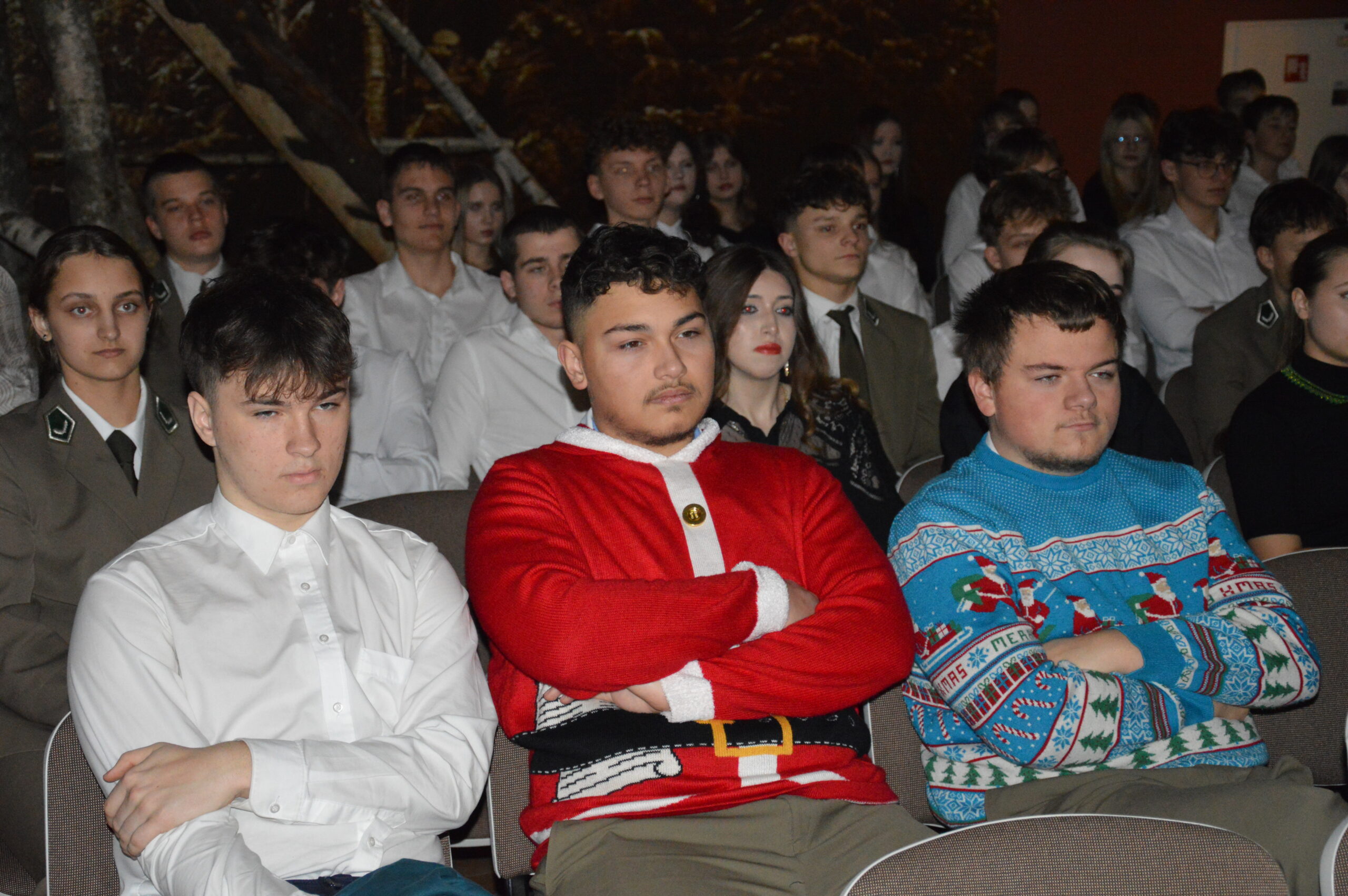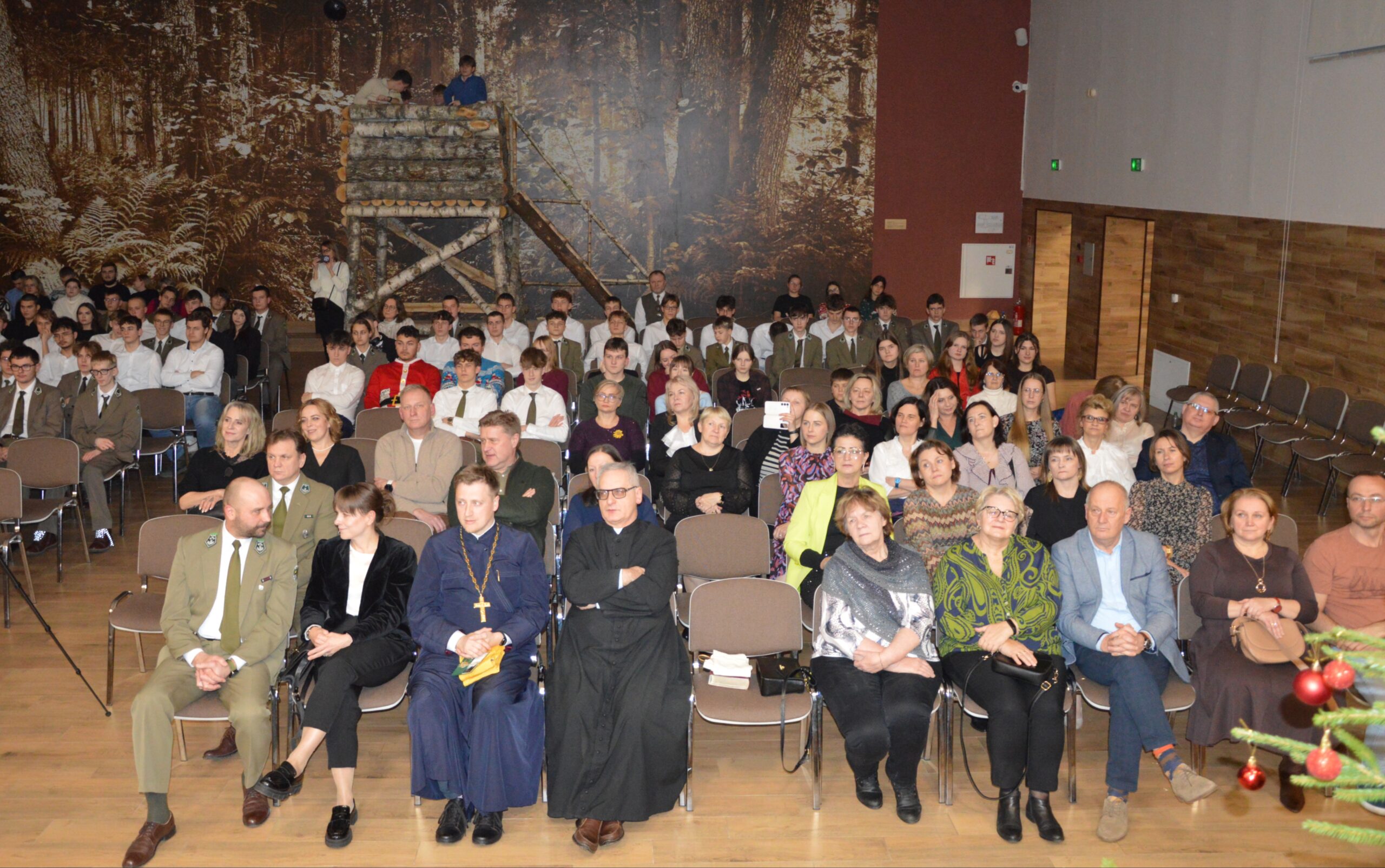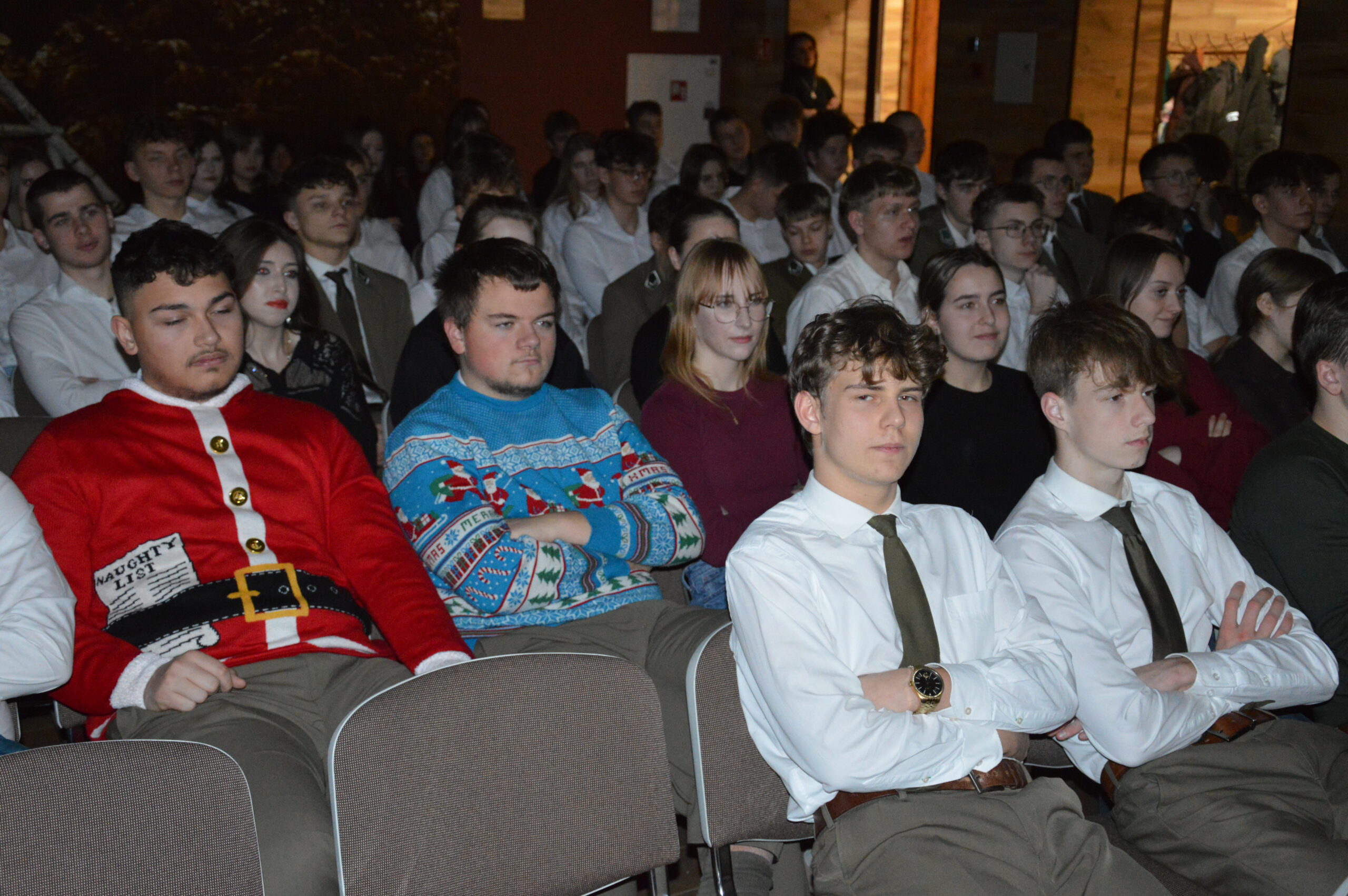 18 grudnia 2025 r. o godzinie 17.00 społeczność naszej szkoły spotkała się w auli internatu, aby wspólnie przeżywać zbliżające się Święta Bożego Narodzenia.