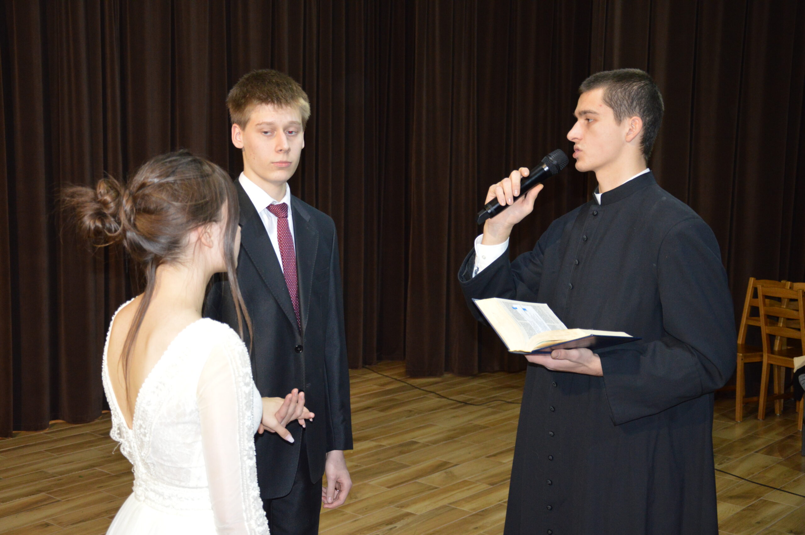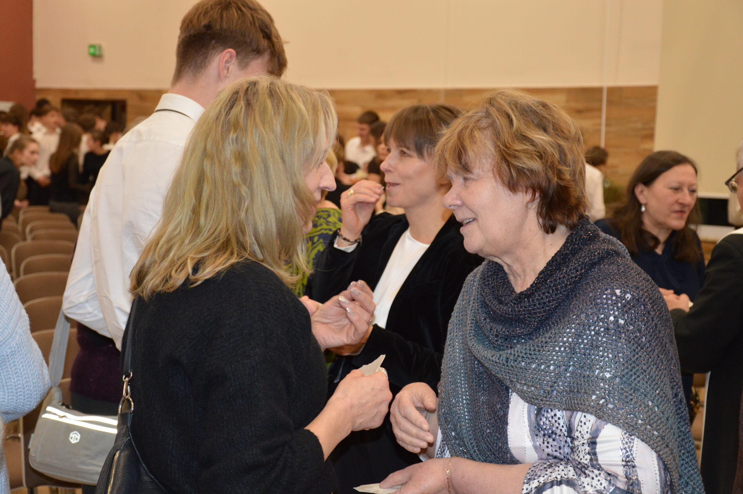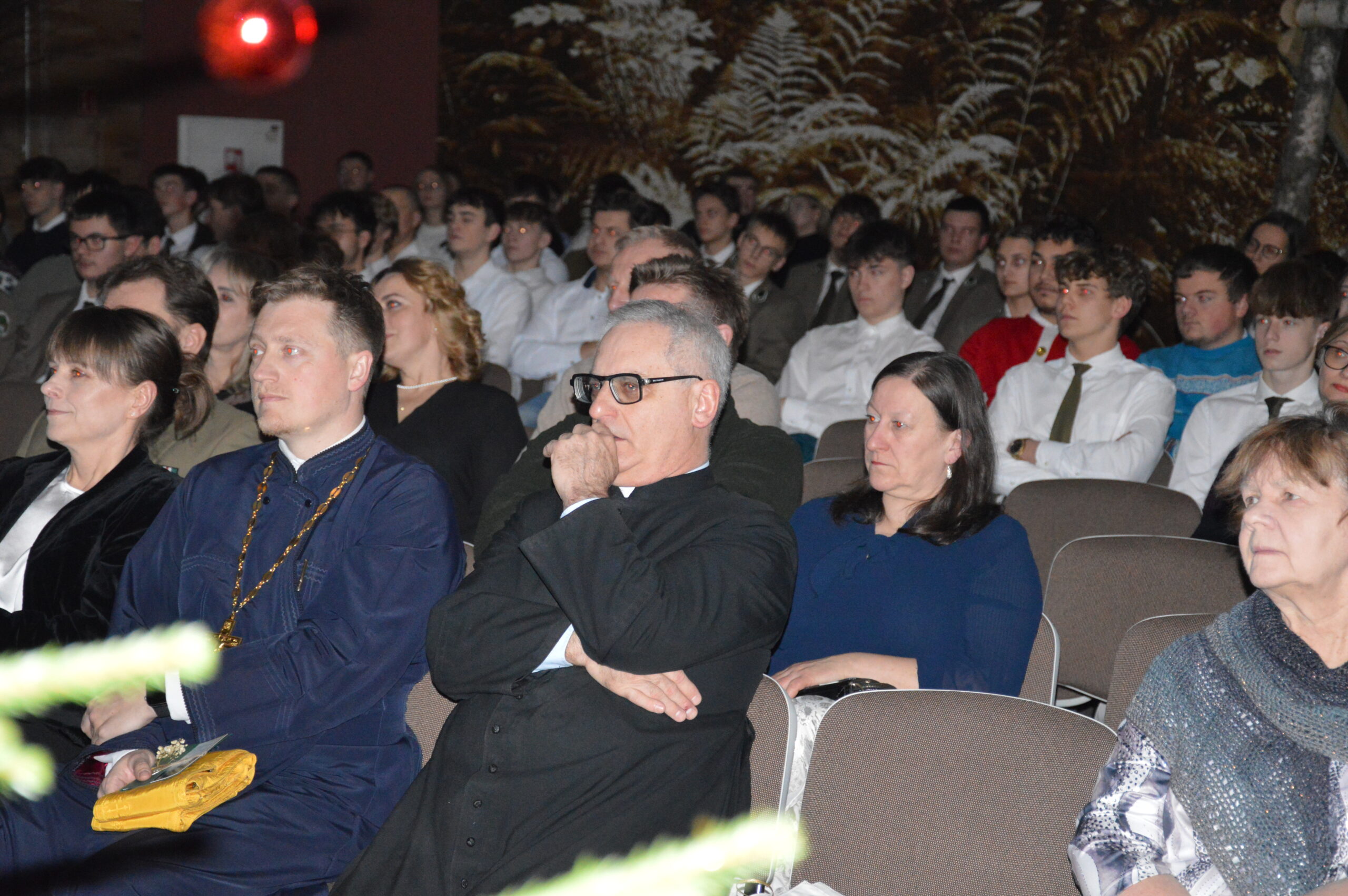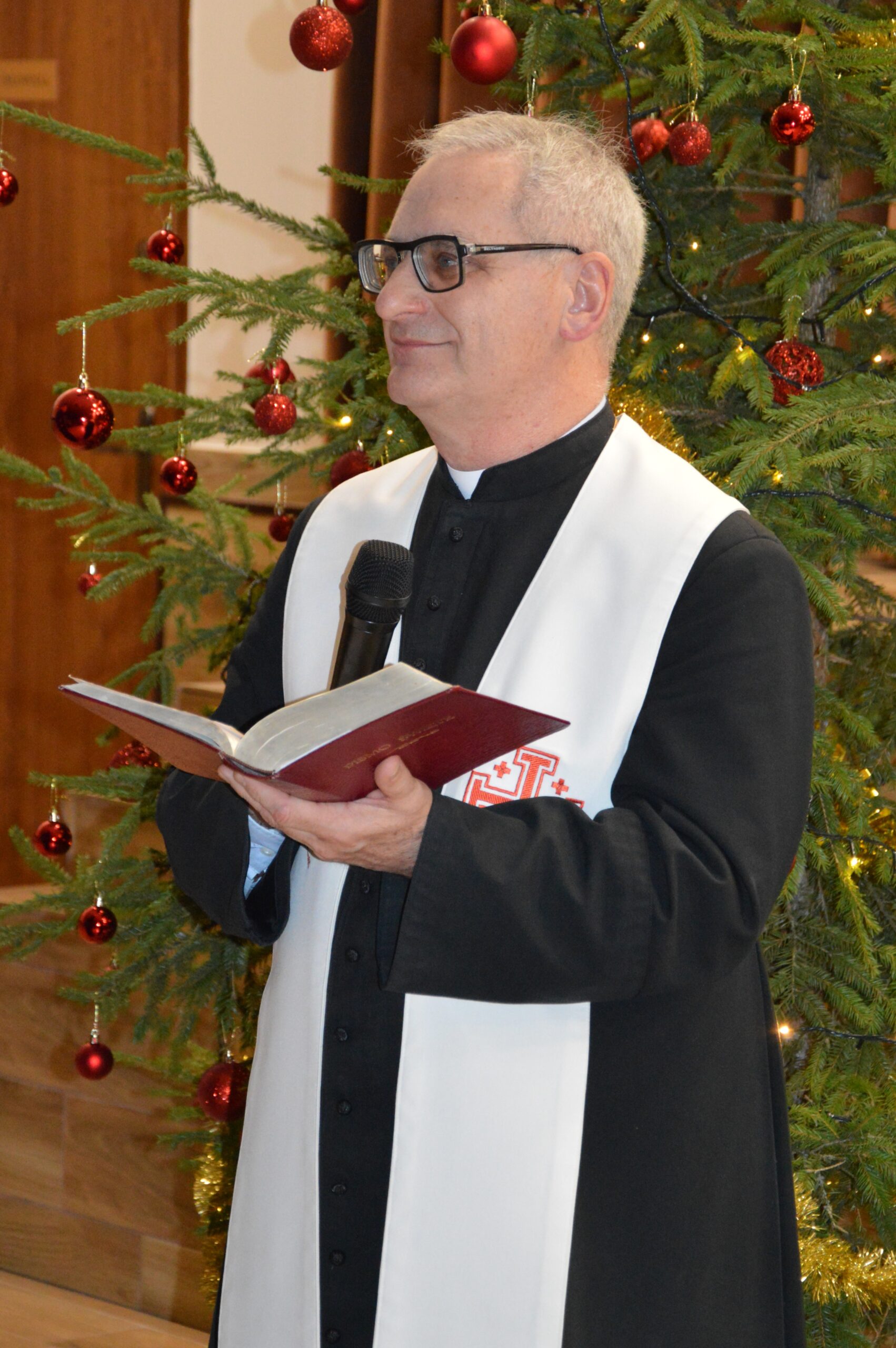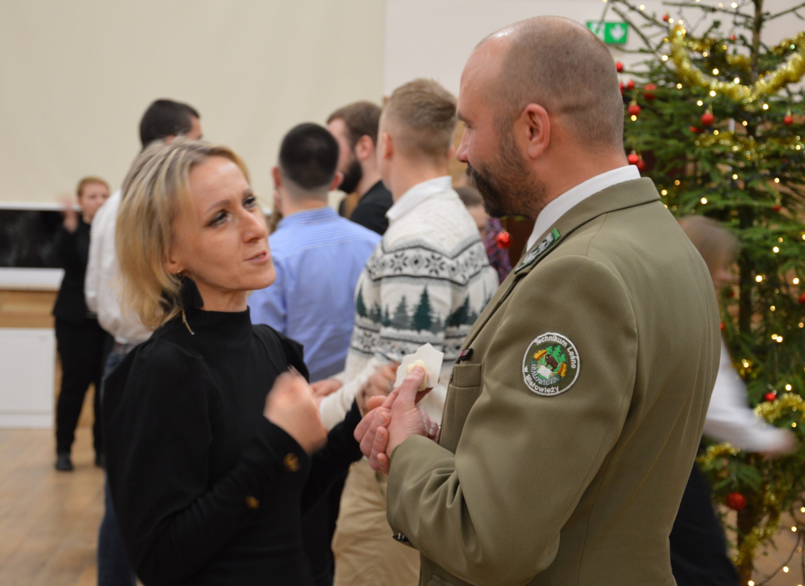 Po części artystycznej Pan Dyrektor, Mariusz Tokajuk podziękował za zaangażowanie w przygotowanie uroczystości oraz złożył życzenia wszystkim obecnym. Następnie głos zabrali księża – Bogdan Popławski oraz Tymoteusz Nazdryn, którzy odmówili modlitwy i złożyli świąteczne życzenia. Uczestnicy spotkania tradycyjnie podzielili się opłatkiem i prosforą – nie zabrakło ciepłych słów i serdecznych uścisków.