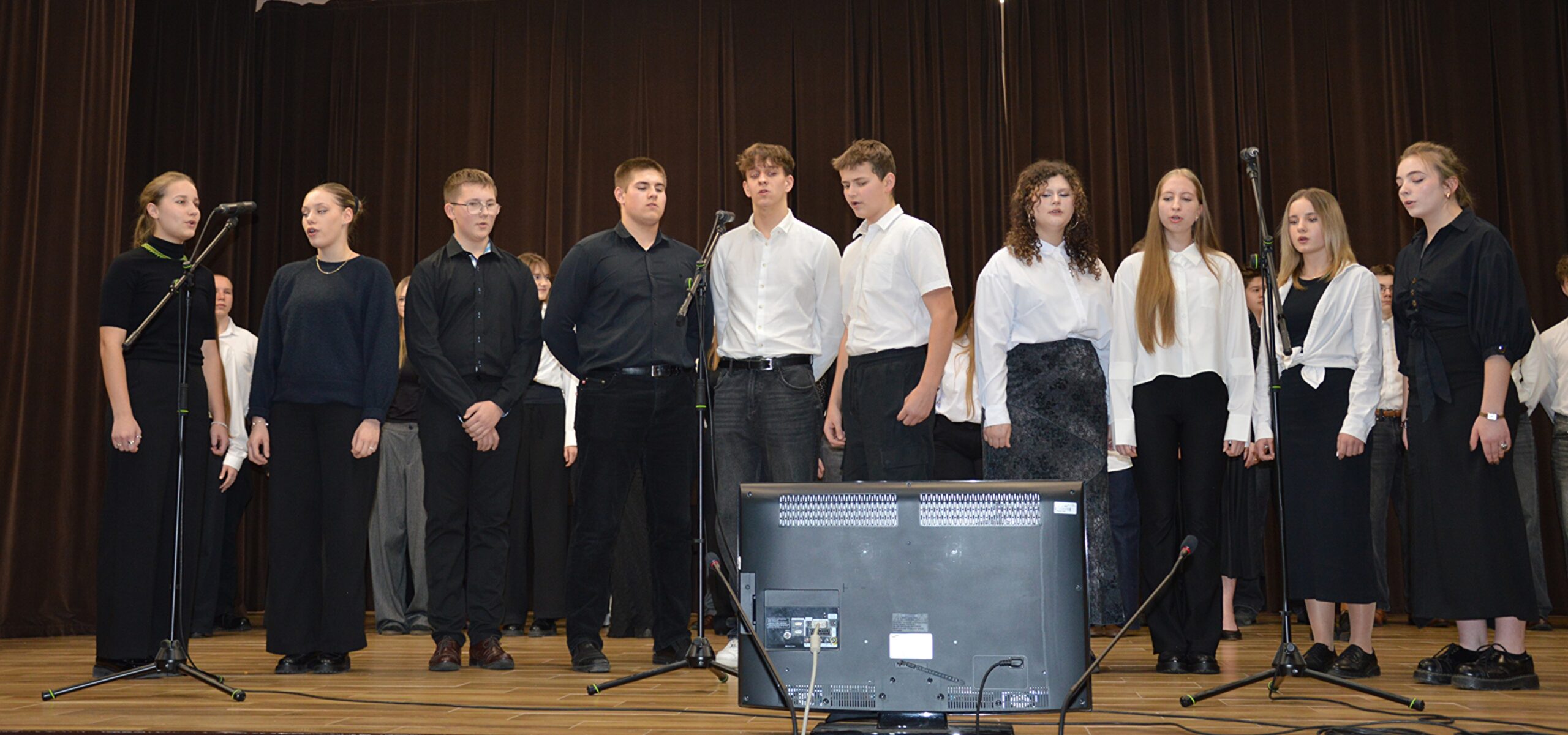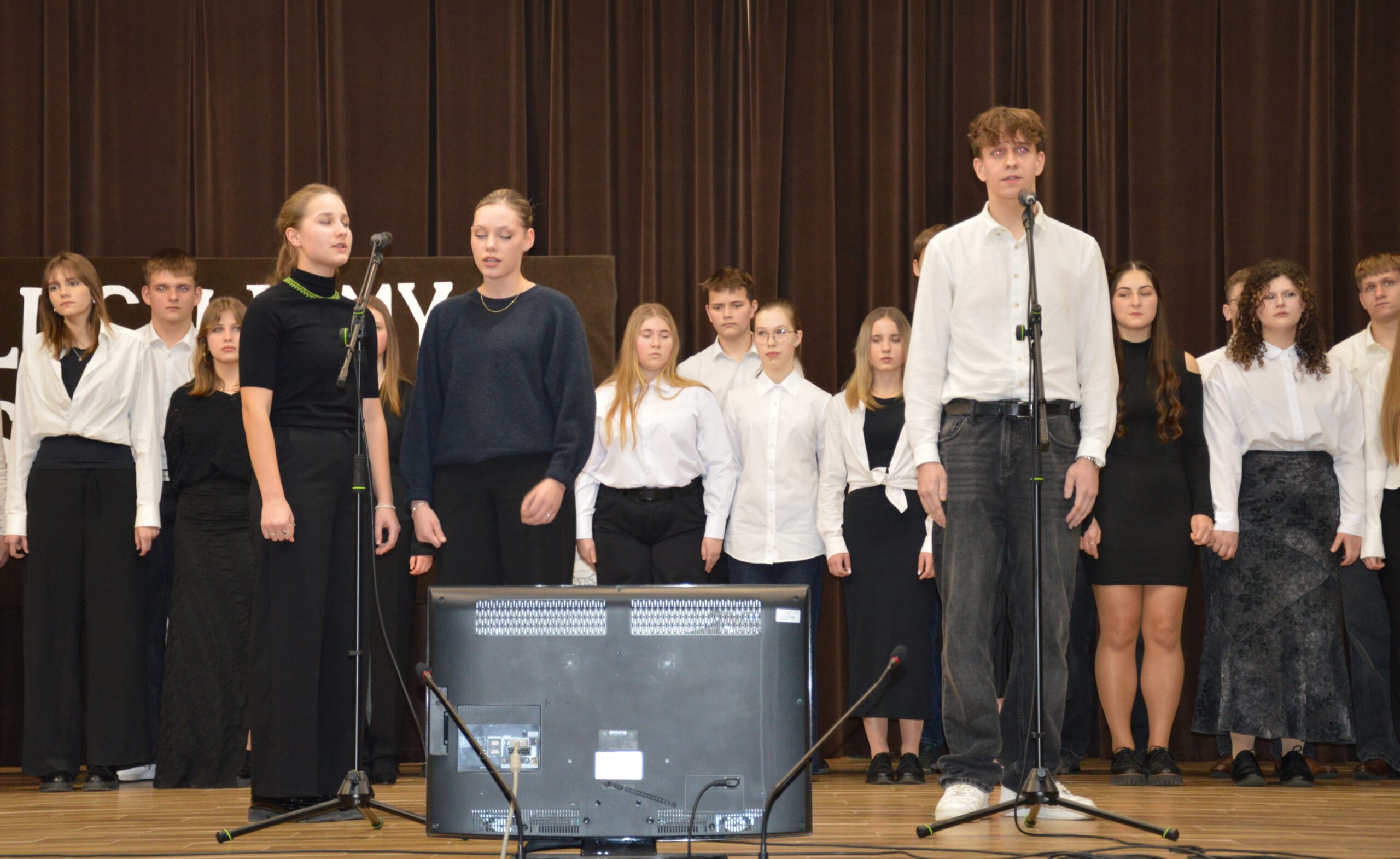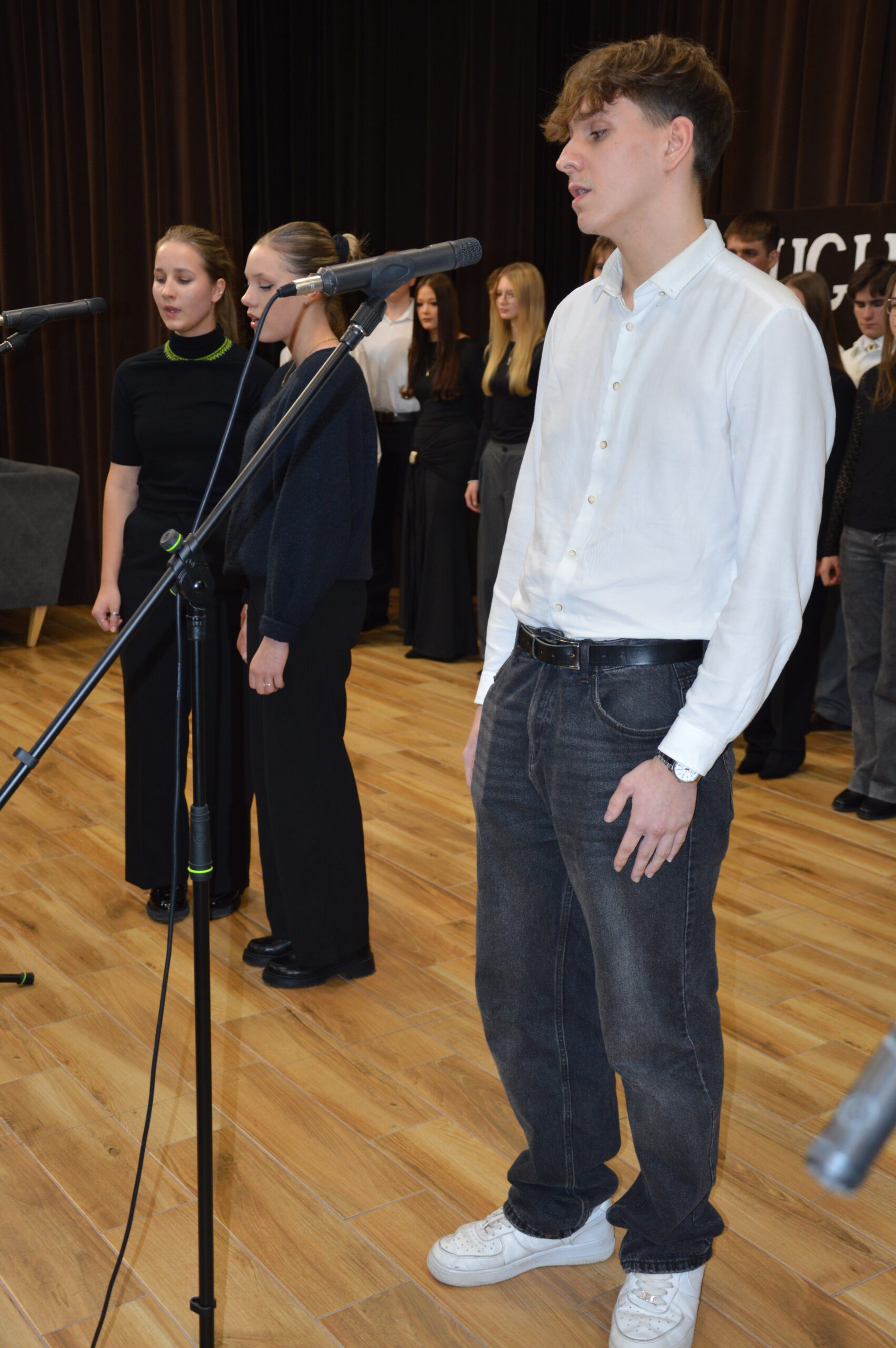 Następnie przyszedł czas na koncert. Z wielką przyjemnością wysłuchaliśmy kolęd w wykonaniu naszego szkolnego chóru, prowadzonego przez p. Adama Masajło. Przepiękny śpiew wprowadził nas w magiczny, świąteczny klimat.