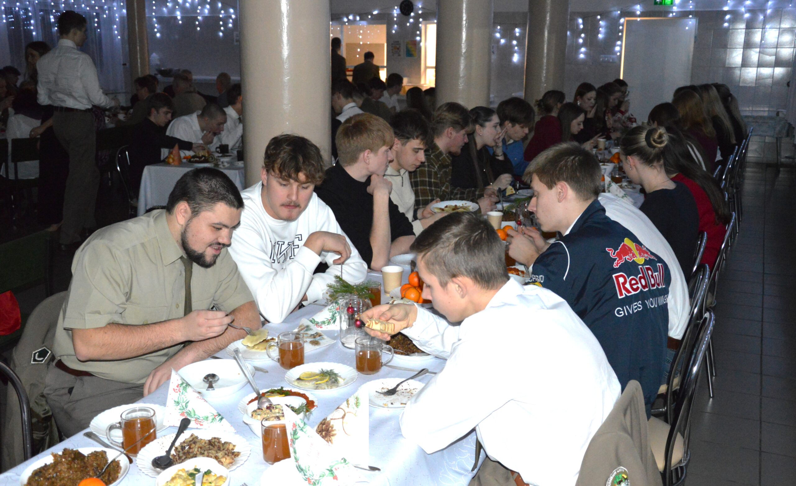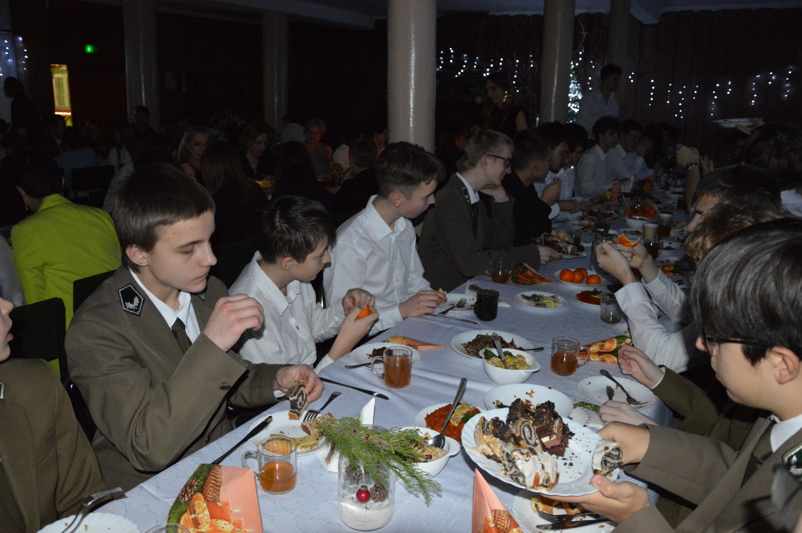 Na zakończenie wszyscy udali się do szkolnej stołówki, na wspólną kolację wigilijną, która upłynęła w miłej, niemal rodzinnej atmosferze, przy blasku ciepłego światła świec.