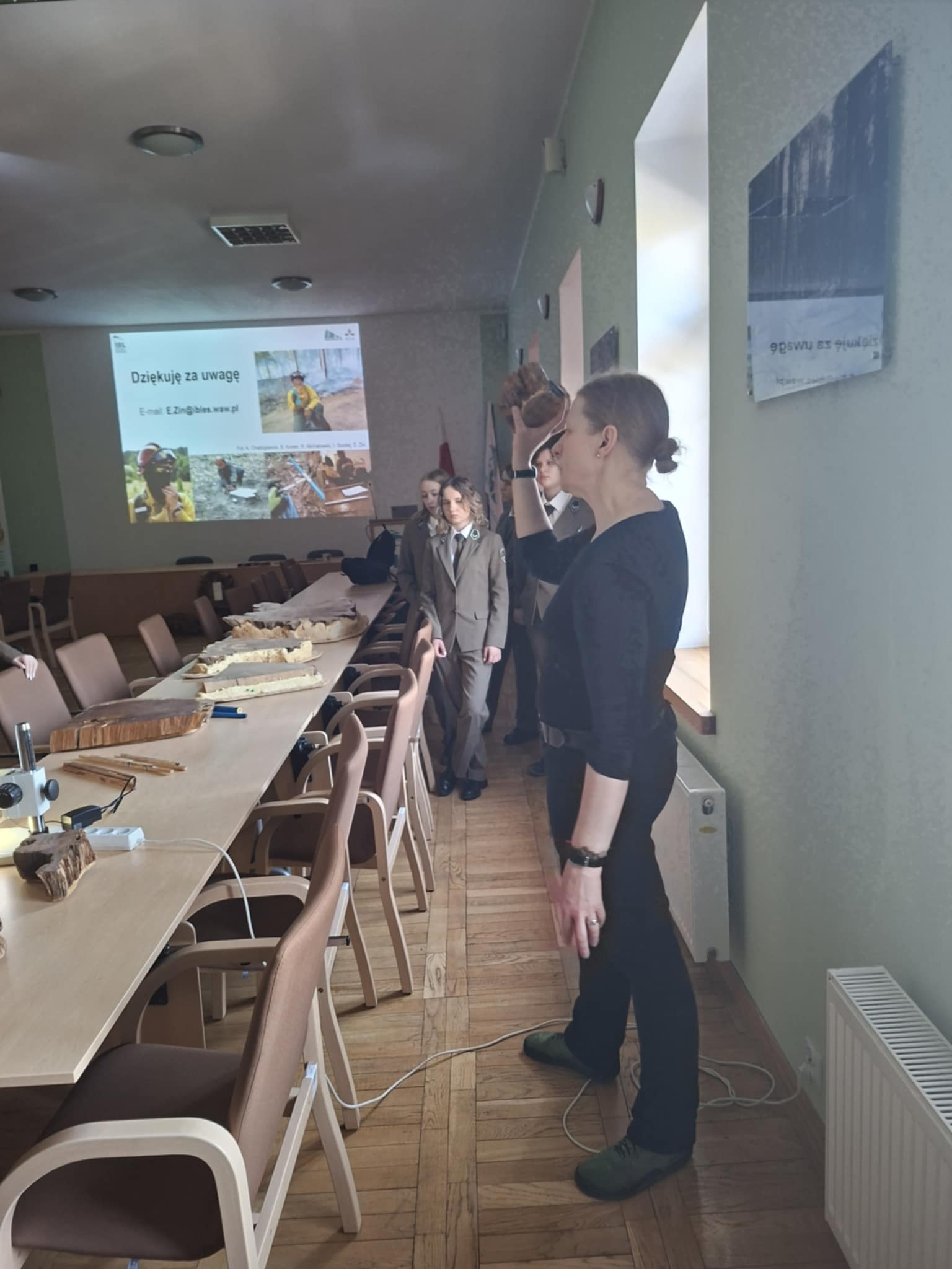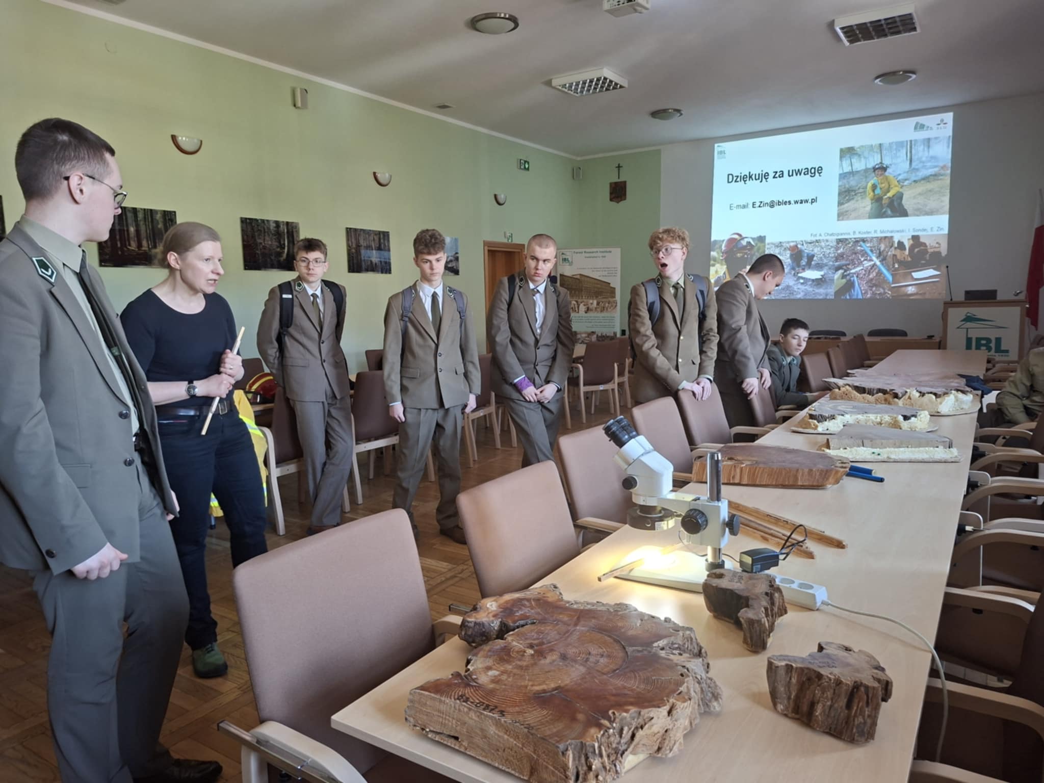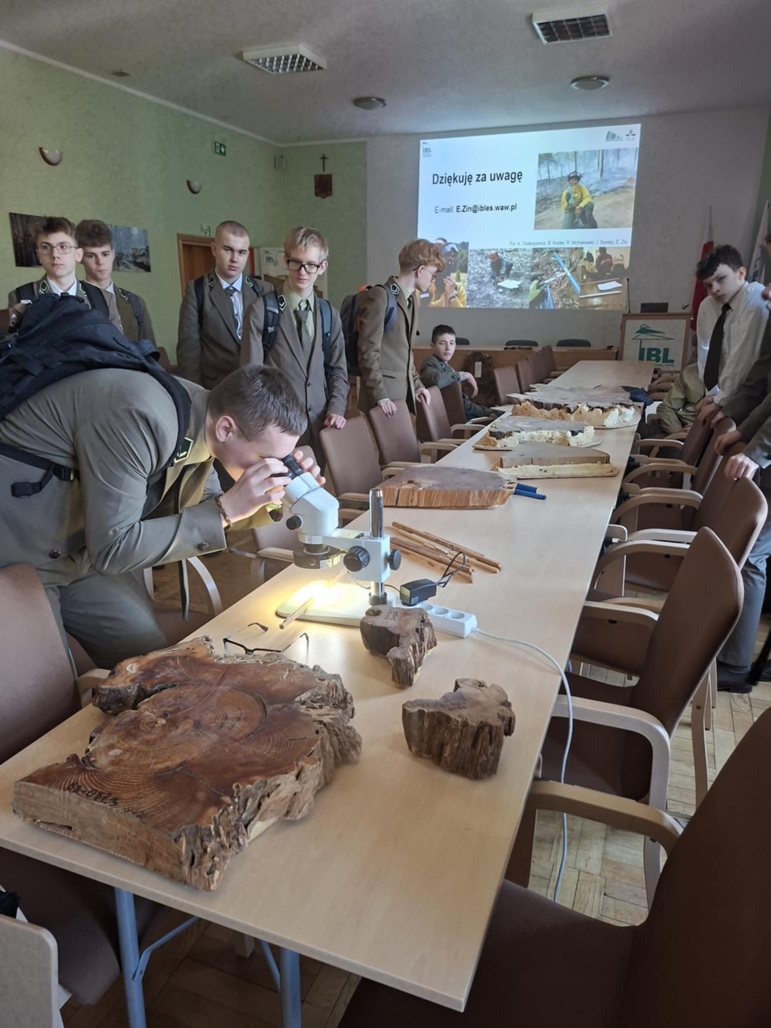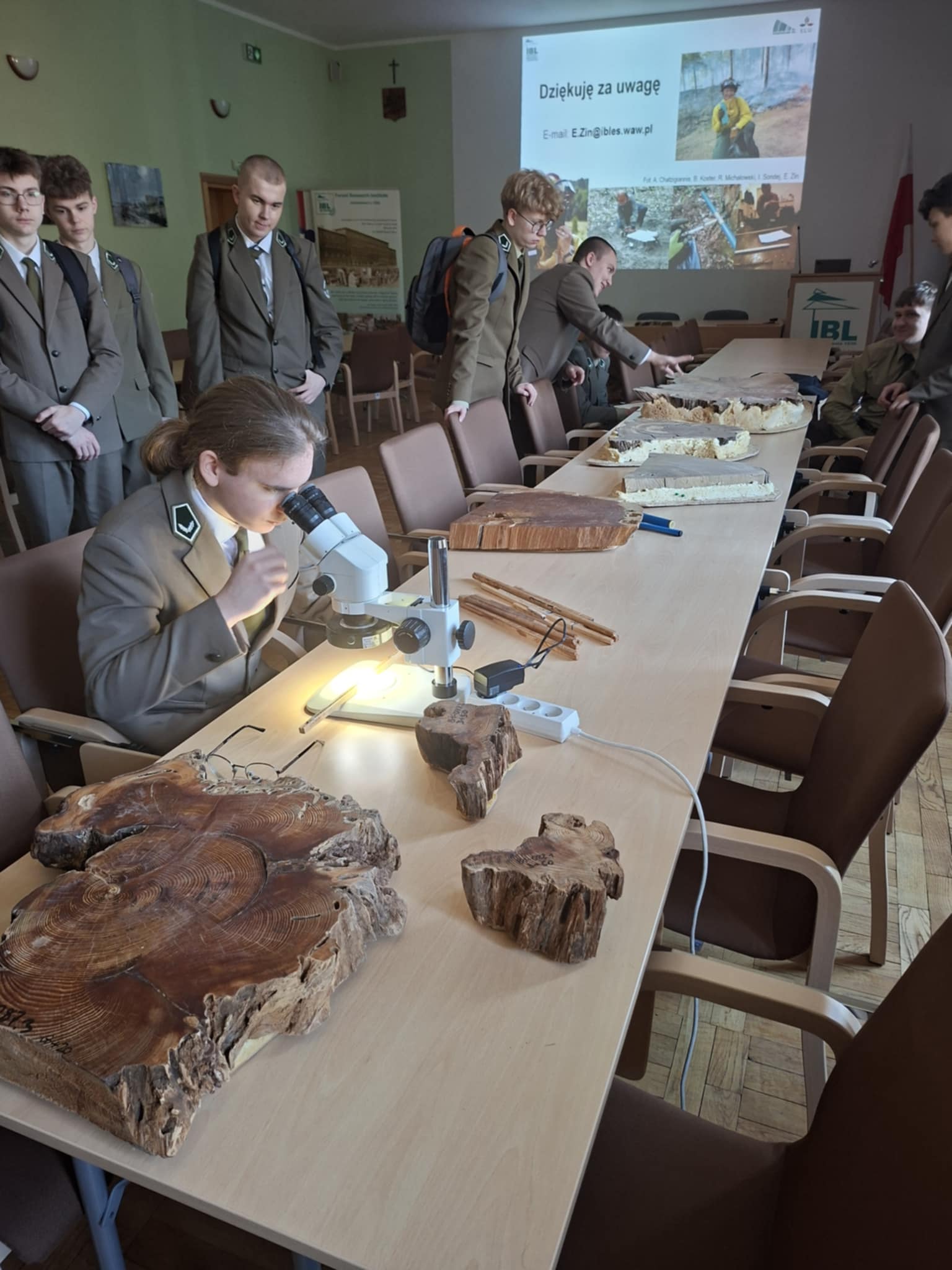 Część praktyczna okazała się fantastyczna! Uczniowie mieli okazję zwiedzić laboratorium dendrochronologiczne jak i zgromadzone zbiory naukowe, obejrzeć i spróbować „czytać drewno”, zapoznać się z prywatnym ekwipunkiem używanym podczas prac naukowych przez dr inż. Ewę Zin.