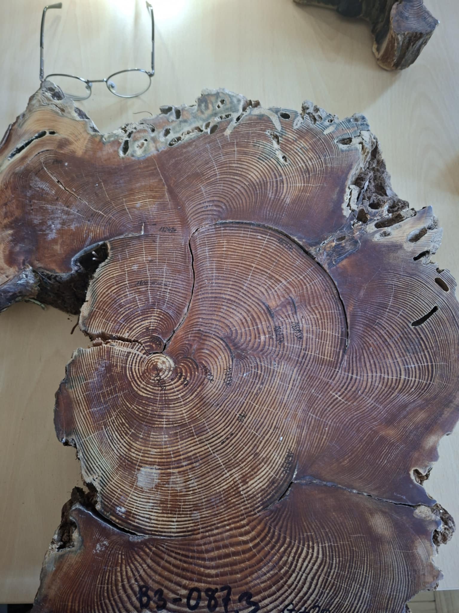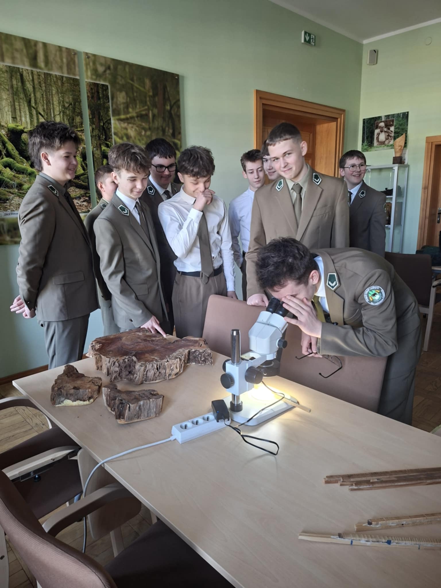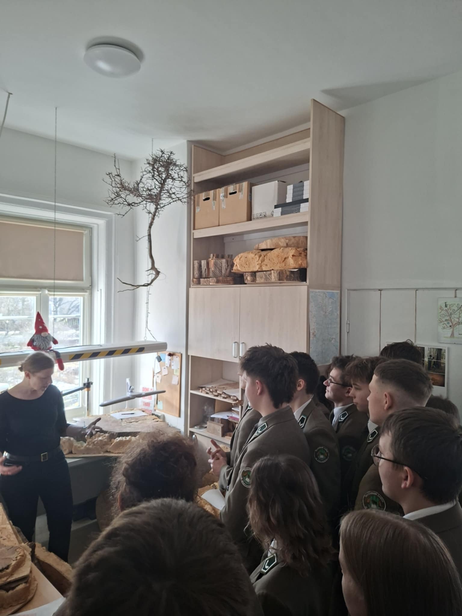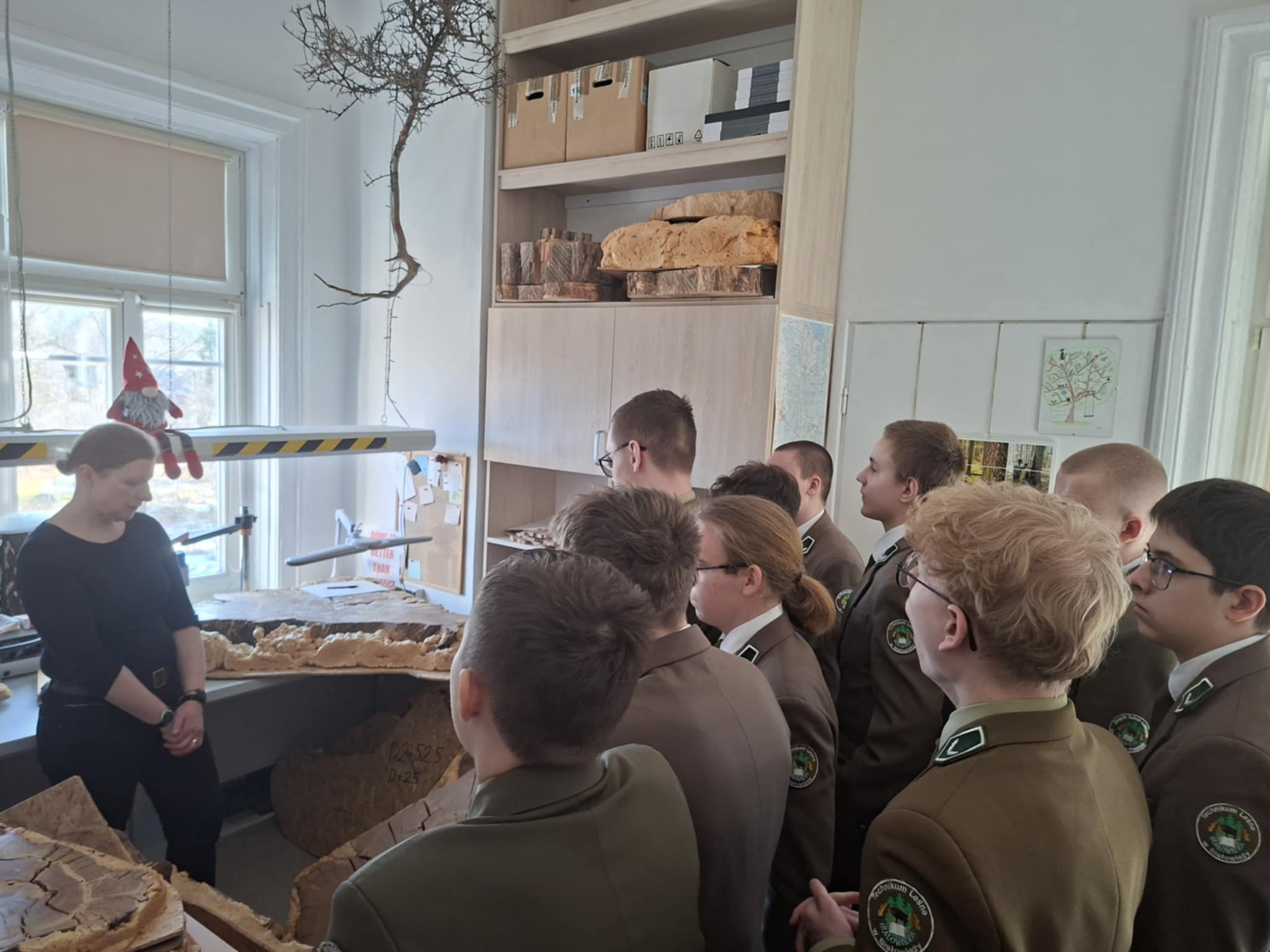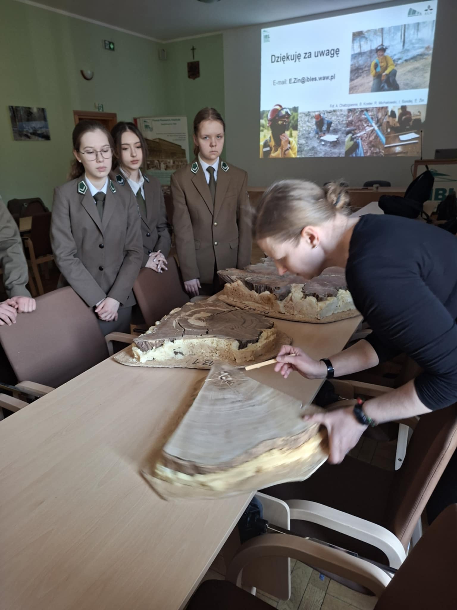 Część praktyczna okazała się fantastyczna! Uczniowie mieli okazję zwiedzić laboratorium dendrochronologiczne jak i zgromadzone zbiory naukowe, obejrzeć i spróbować „czytać drewno”, zapoznać się z prywatnym ekwipunkiem używanym podczas prac naukowych przez dr inż. Ewę Zin.