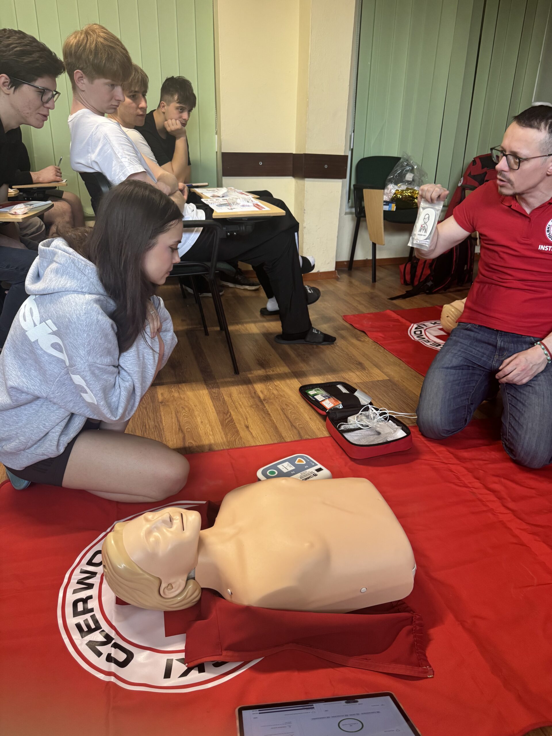 Serdecznie dziękujemy Panu Łukaszowi, instruktorowi pierwszej pomocy, za przeprowadzenie wartościowych i praktycznych zajęć. Dzięki jego zaangażowaniu uczestnicy mogli zdobyć cenną wiedzę oraz przećwiczyć najważniejsze umiejętności, które mogą okazać się niezwykle ważne w sytuacjach zagrożenia zdrowia lub życia.