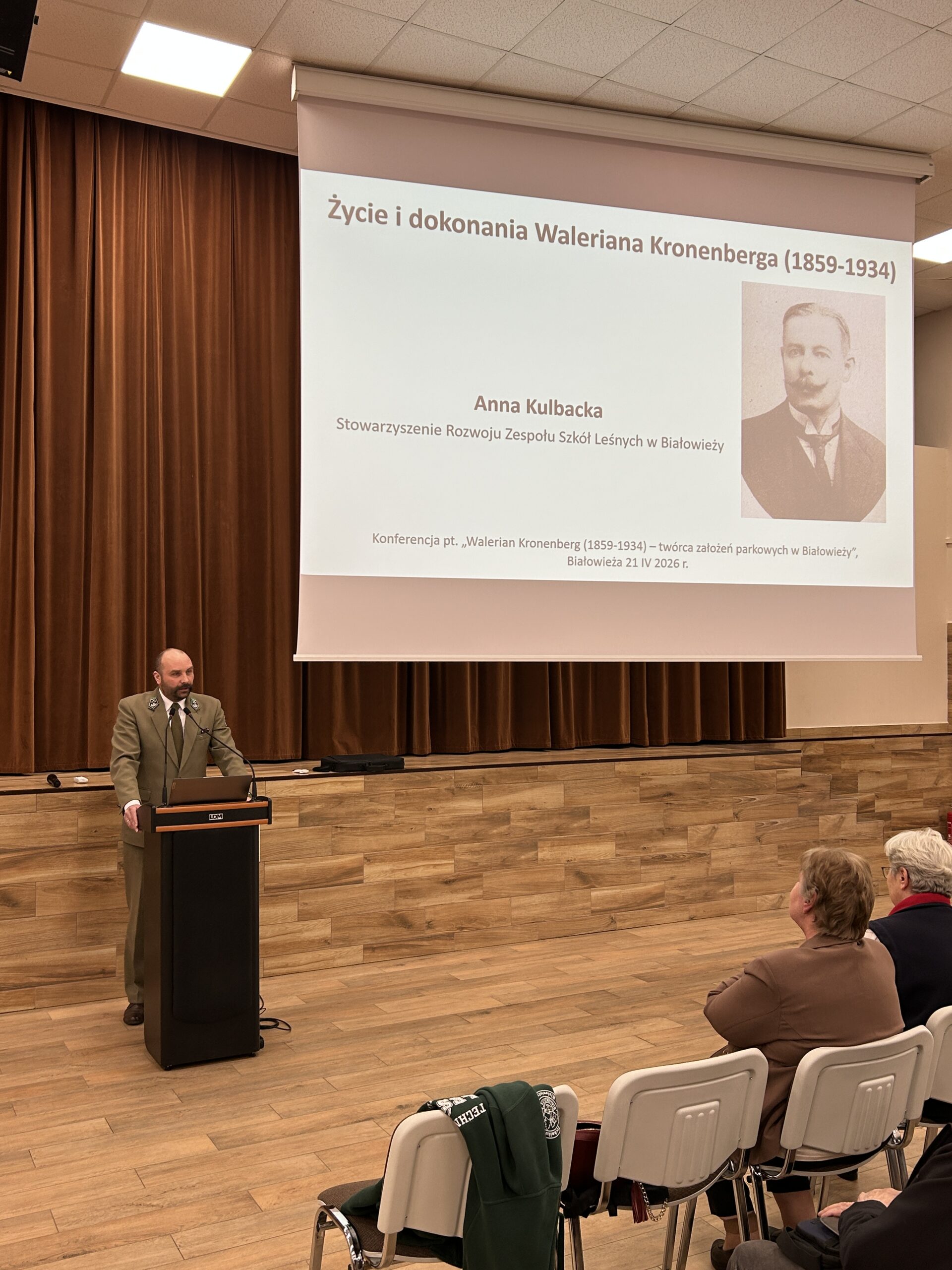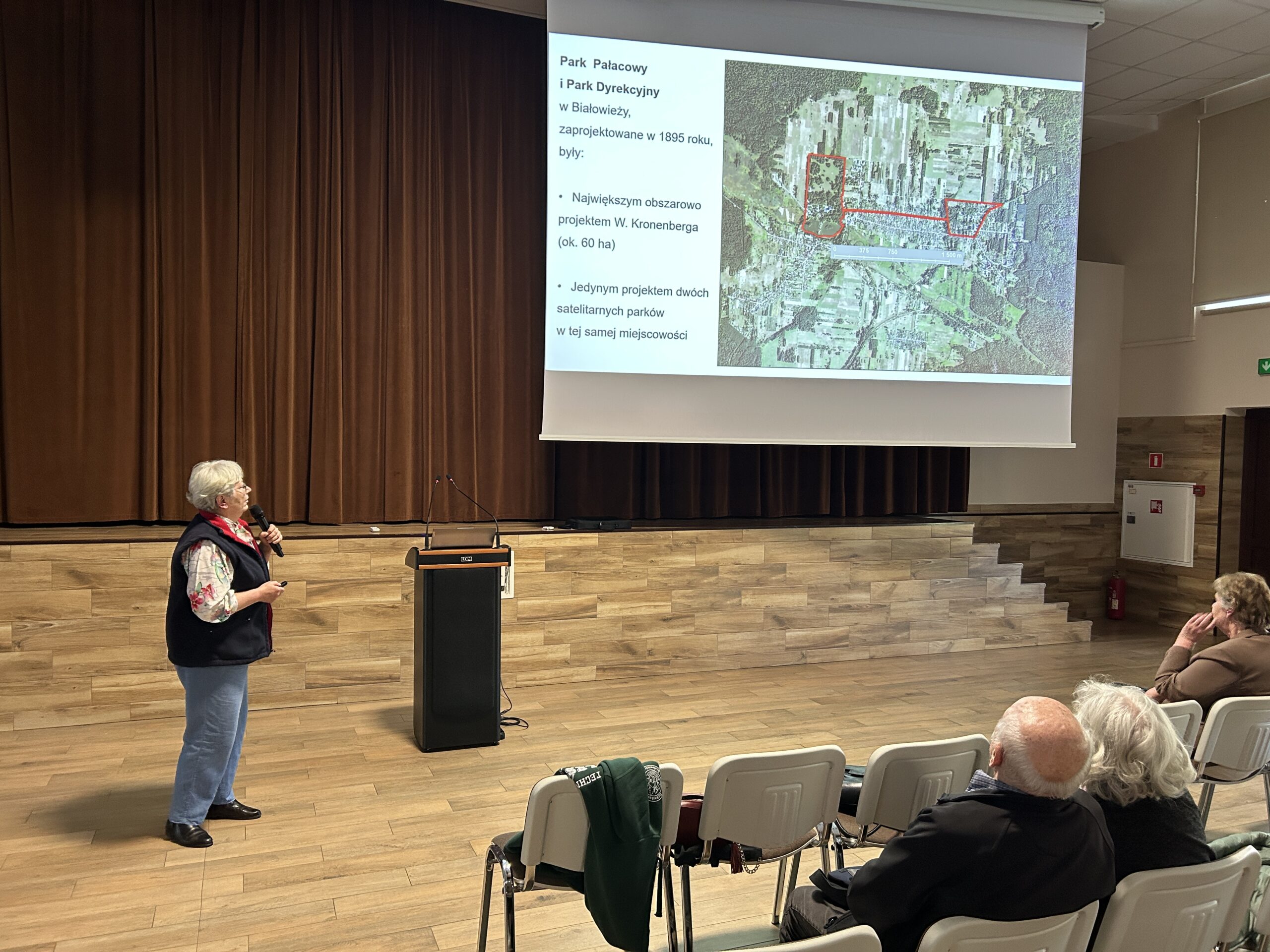 Podczas konferencji uczestnicy mieli okazję wysłuchać wystąpień dotyczących historii i znaczenia parków w Białowieży, w tym sylwetki Walerian Kronenberg oraz przemian białowieskich parków na przestrzeni lat, które przedstawiły Panie: Anna Kulbacka oraz prof. Bogumiła Jędrzejewska.