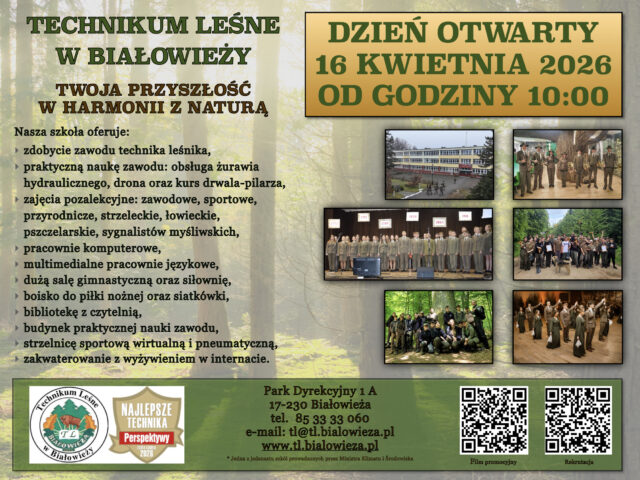 Technikum Leśne w Białowieży zaprasza wszystkich zainteresowanych na konferencję pt. „Walerian Kronenberg twórca założeń parkowych w Białowieży”. 21 kwietnia 2026 …