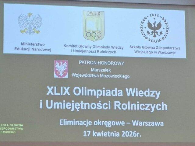Eliminacje okręgowe odbyły się 17.04.2026 roku w Warszawie – na kampusie SGGW. Do eliminacji okręgowych zakwalifikowało się łącznie 18 osób …